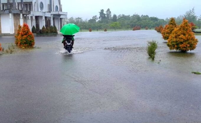 Hujan intensitas deras dengan curah hujan lebih dari 50 mm per jam diprakirakan mengguyur Kota Manado dengan suhu berkisar 24-28 Celcius.