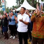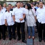Direktur Utama BNI Achmad Baiquni (tengah) melihat acara Celebrate Achievement 2016 & Embrasing Digital Financial Institution BNI bersama karyawan di kantor pusat BNI, Jakarta, Kamis (22/12/2016). Pada kesempatan ini, BNI melakukan Launching BNI New Style, BNI New Template dan e-Absensi yang menjadi simbol pertumbuhan budaya yang diharapkan akan mendukung langkah-langkah BNI sebagai Digital Financial Institution. AKTUAL/Tino Oktaviano
