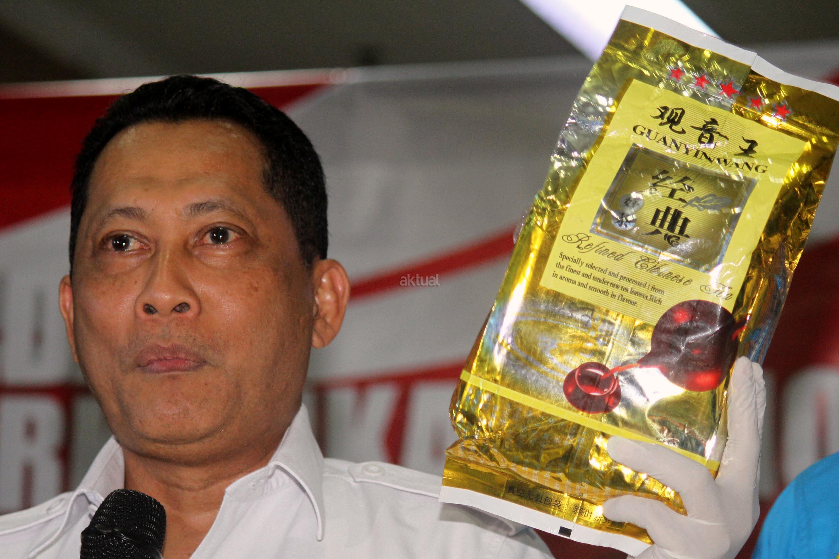 Kepala BNN Komjen Pol Budi Waseso saat menunjukan barang bukti narkotika saat menggelar jumpa pers di kantor BNN, Jakarta, Rabu, (27/9/2017).Dalam jumpa persnya BNN bersama Bea dan Cukai berhasil membongkar jaringan peredaran gelap narkotika yang beroperasi di perairan Indonesia dan tim gabungan berhasil mengamankan 137.692 gram sabu dan 42500 butir pil ekstasi di pantai Ujungcuram, Aceh Timur. AKTUAL/Munzir