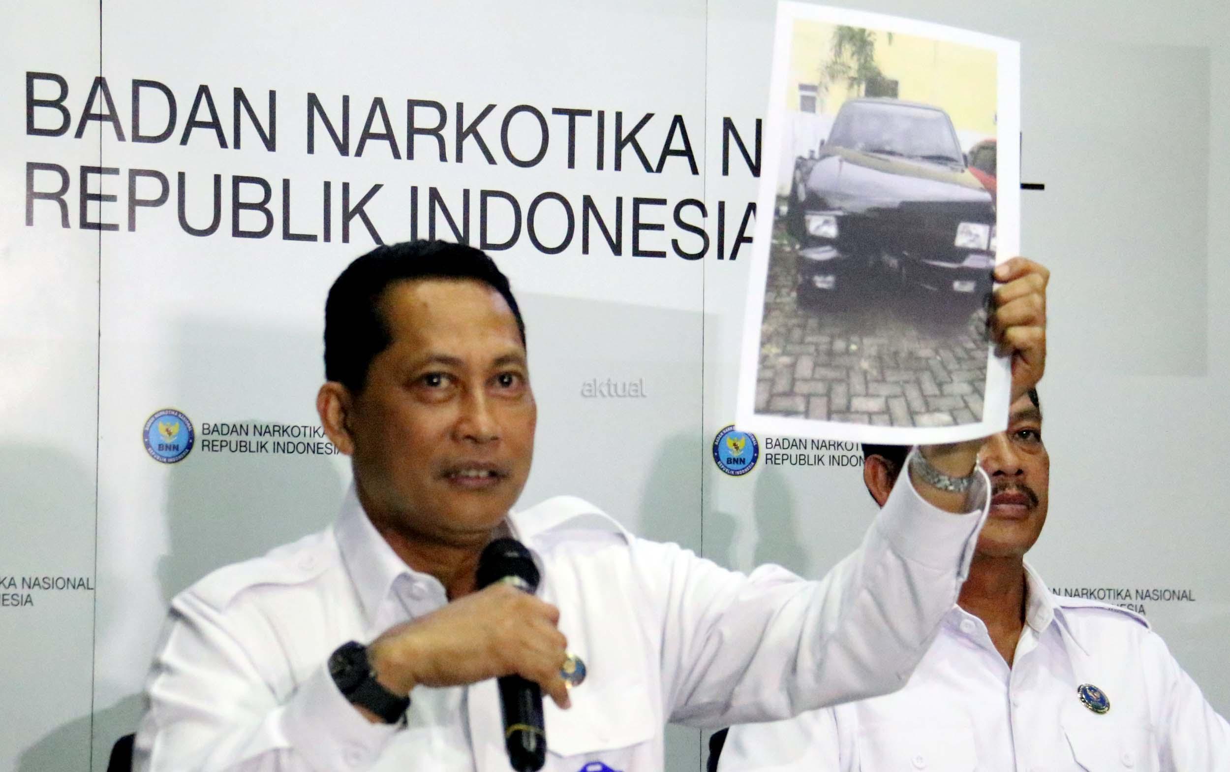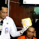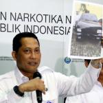 Kepala Badan Narkotika Nasional (BNN) Komjen Pol Budi Waseso (kiri) menunjukan salah satu barang bukti sabu saat merilis kasus narkotika jenis Sabu jaringan Internasional di Kantor BNN, Jakarta, Senin (27/2/2017). Badan Narkotika Nasional (BNN) menggagalkan penyeludupan sabu sebanyak 32 kg asal Malaysia di dua lokasi di Medan Sumatera Barat dengan mengamankan 2 orang pelaku berinisial ABS (29) dan BEP (37) yang berperan sebagai kurir sekaligus pengedar. AKTUAL/Munzir