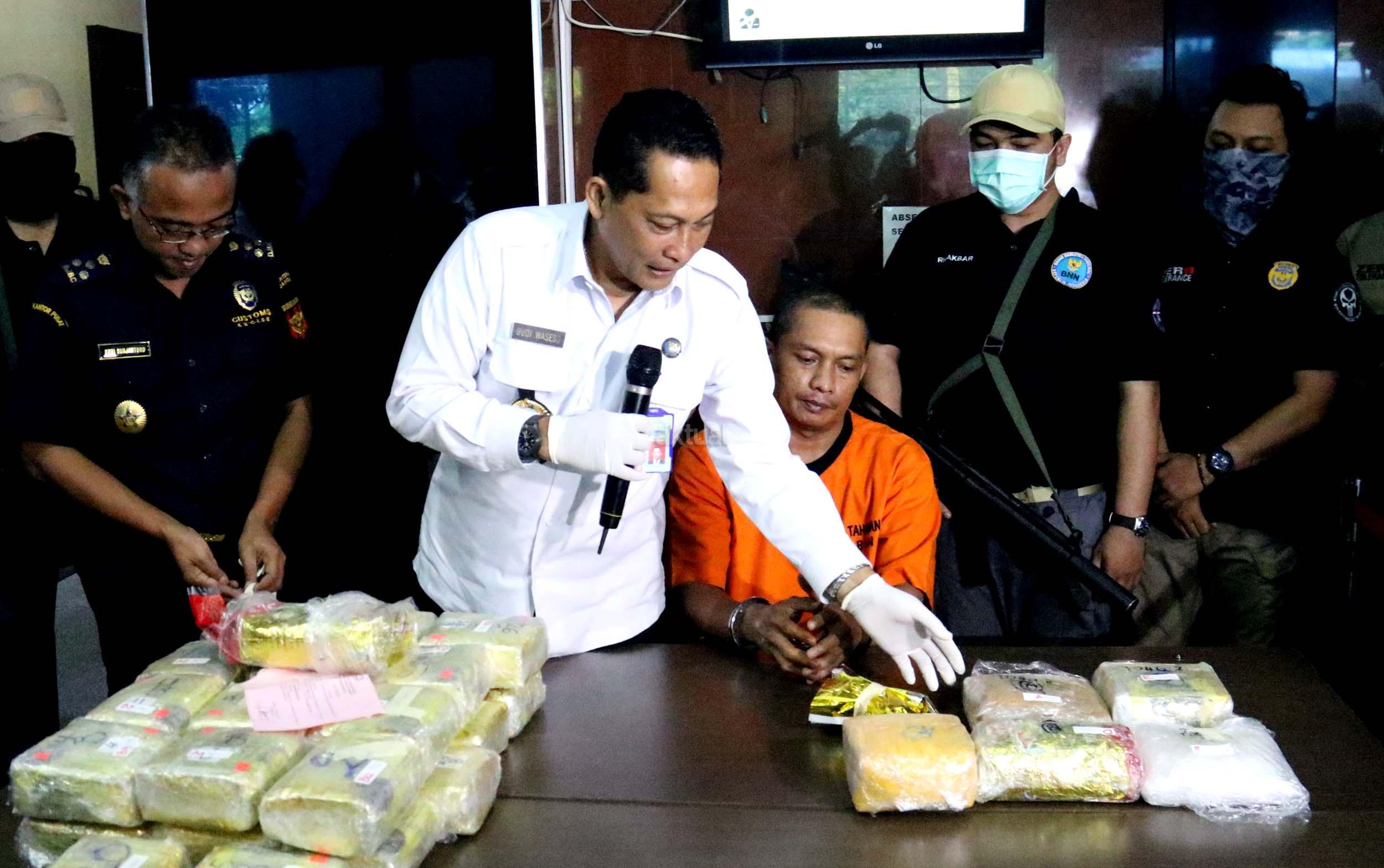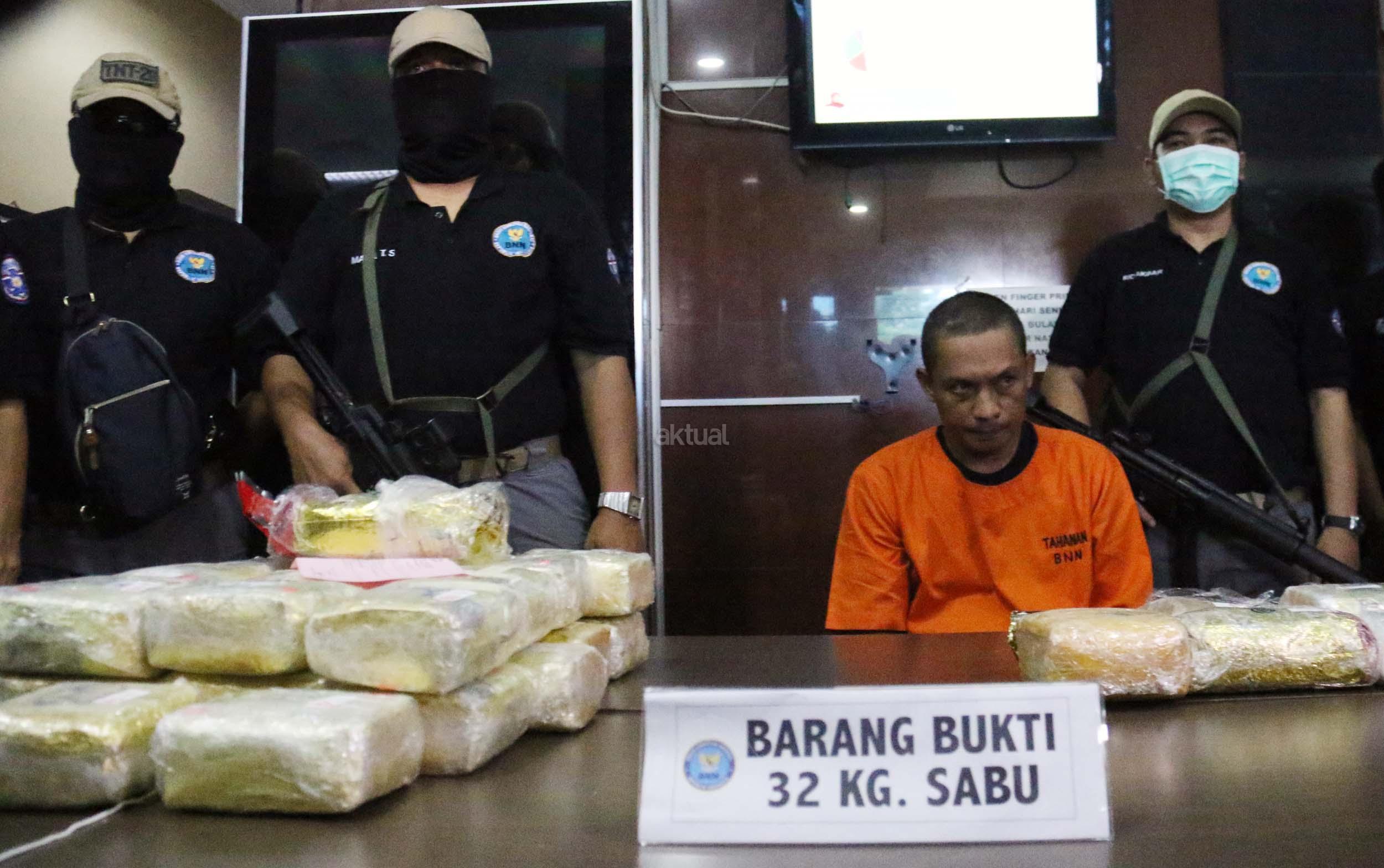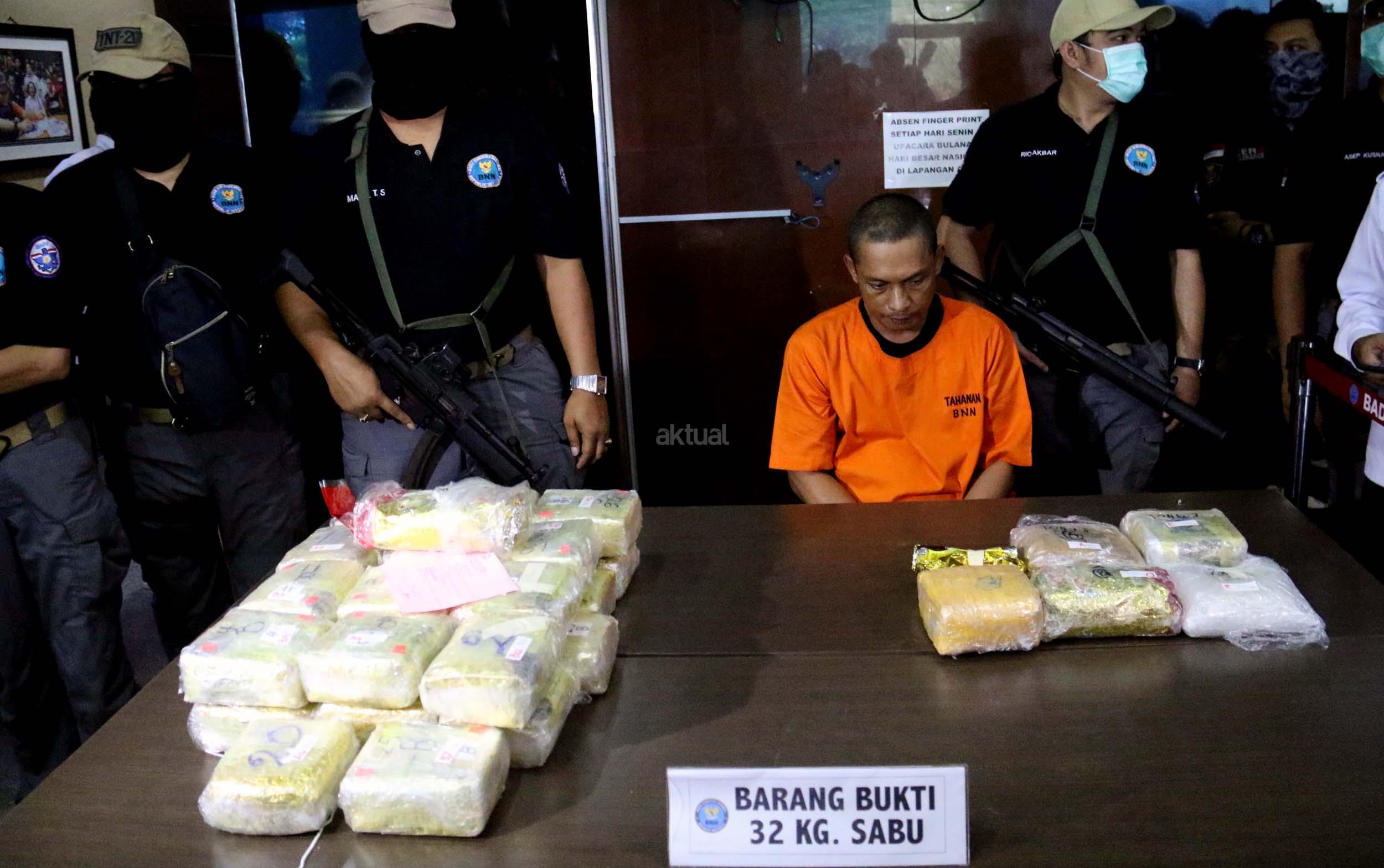 Badan Narkotika Nasional (BNN) menggagalkan penyeludupan sabu sebanyak 32 kg asal Malaysia di dua lokasi di Medan Sumatera Barat dengan mengamankan 2 orang pelaku berinisial ABS (29) dan BEP (37) yang berperan sebagai kurir sekaligus pengedar. AKTUAL/Munzir