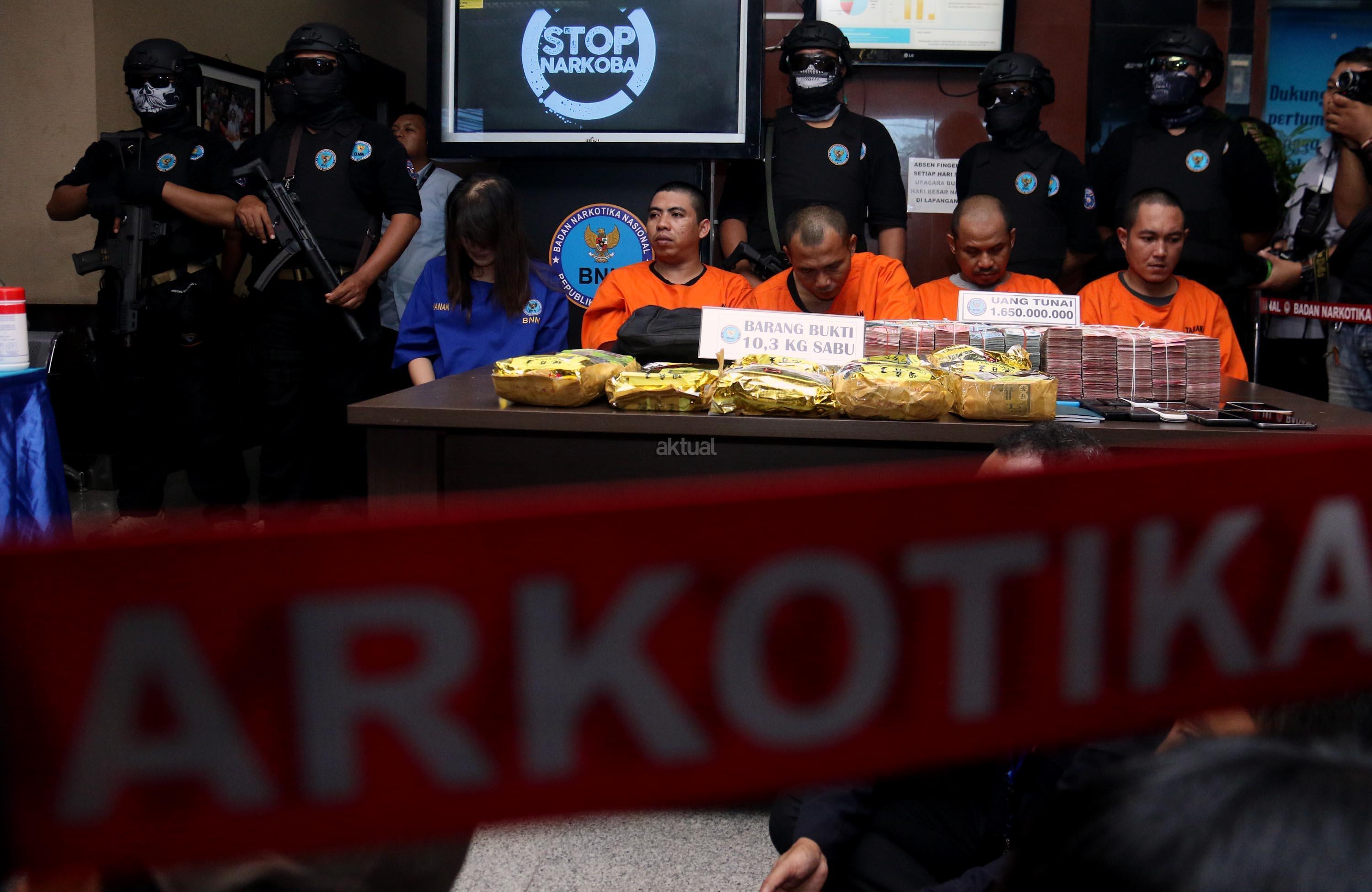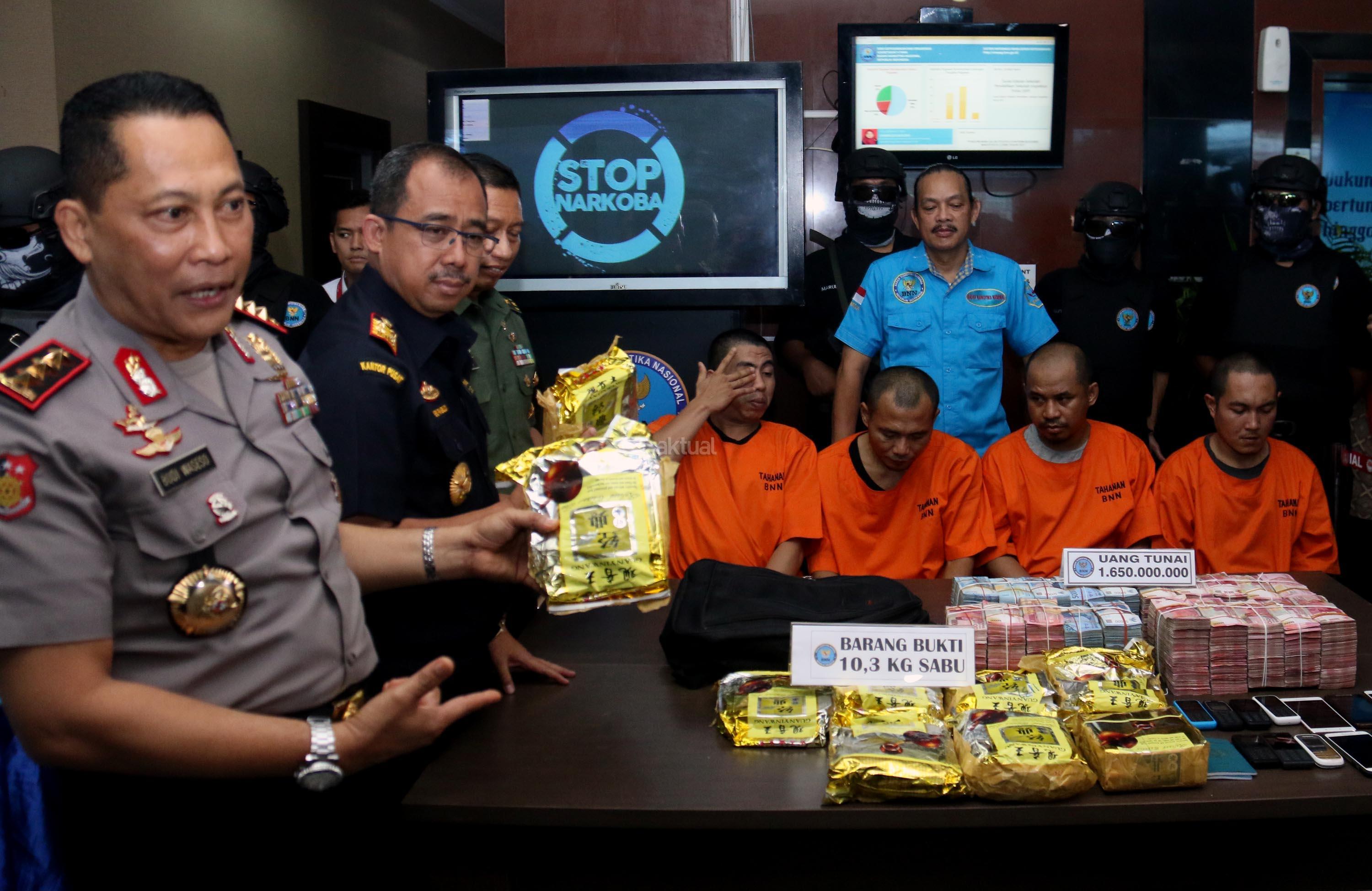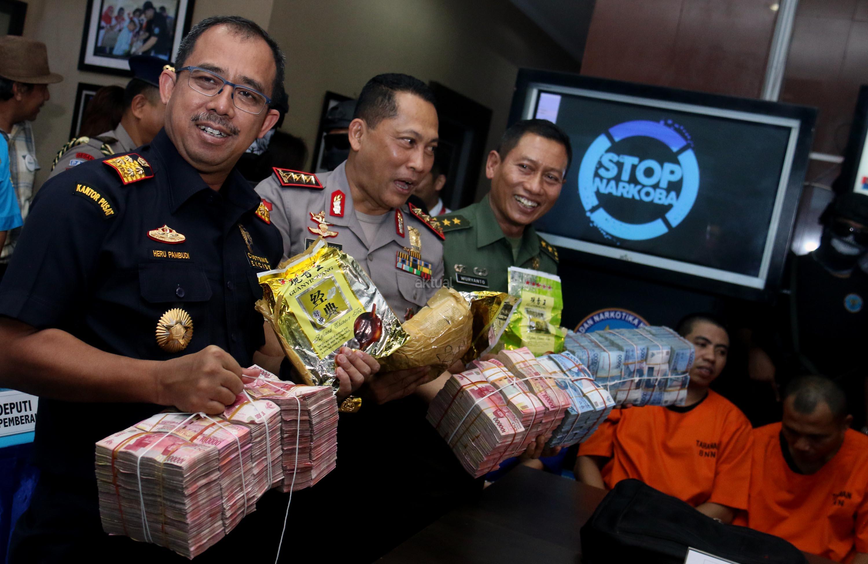Dalam jumpa persnya BNN bersama Satgas Pamtas TNI dan Bea dan Cukai berhasil menggagalkan upaya penyeludupan narkotika dari Malaysia ke Indonesia seberat 10,39 kg dan uang tunai sebanya Rp. 1,6 Miliar. AKTUAL/Munzir