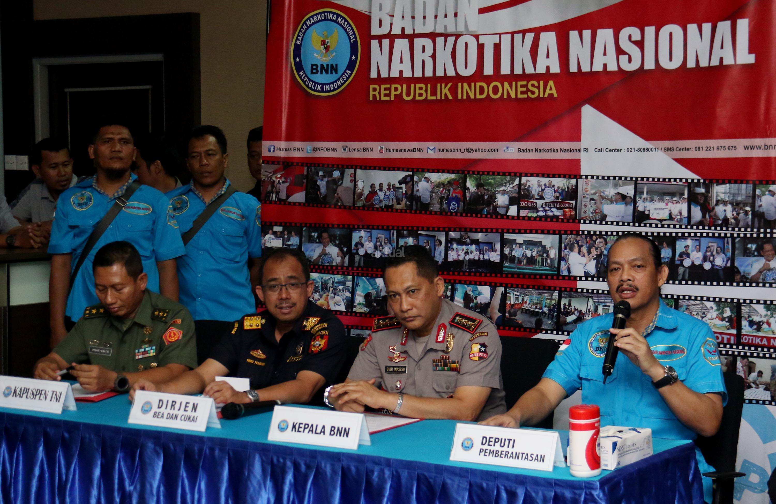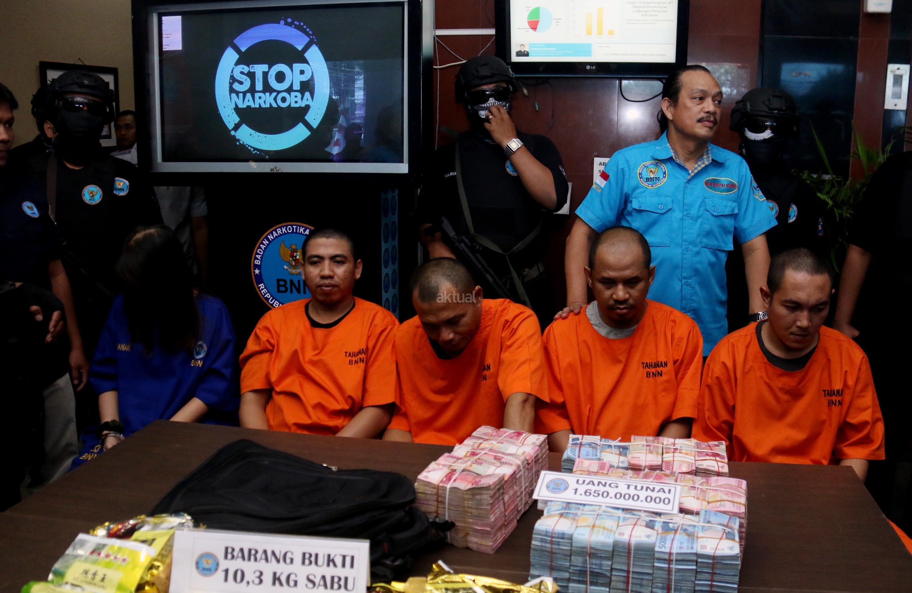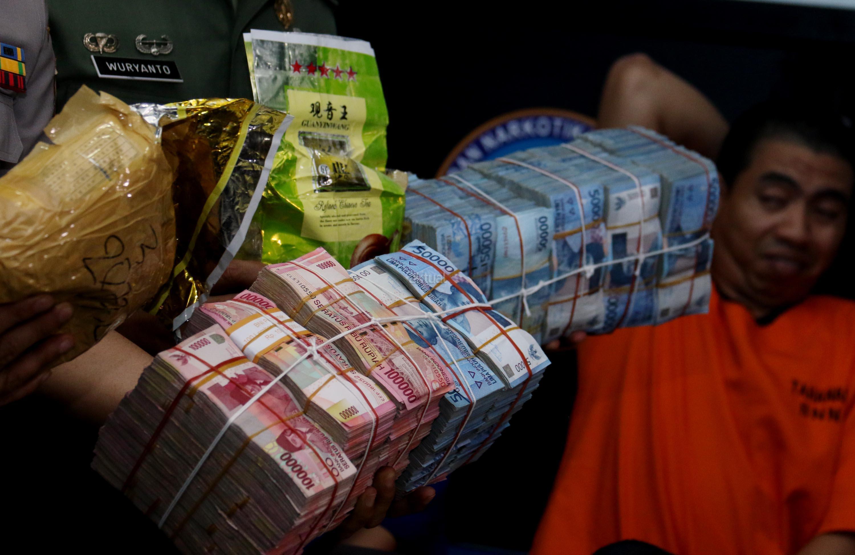 Dalam jumpa persnya BNN bersama Satgas Pamtas TNI dan Bea dan Cukai berhasil menggagalkan upaya penyeludupan narkotika dari Malaysia ke Indonesia seberat 10,39 kg dan uang tunai sebanya Rp. 1,6 Miliar. AKTUAL/Munzir