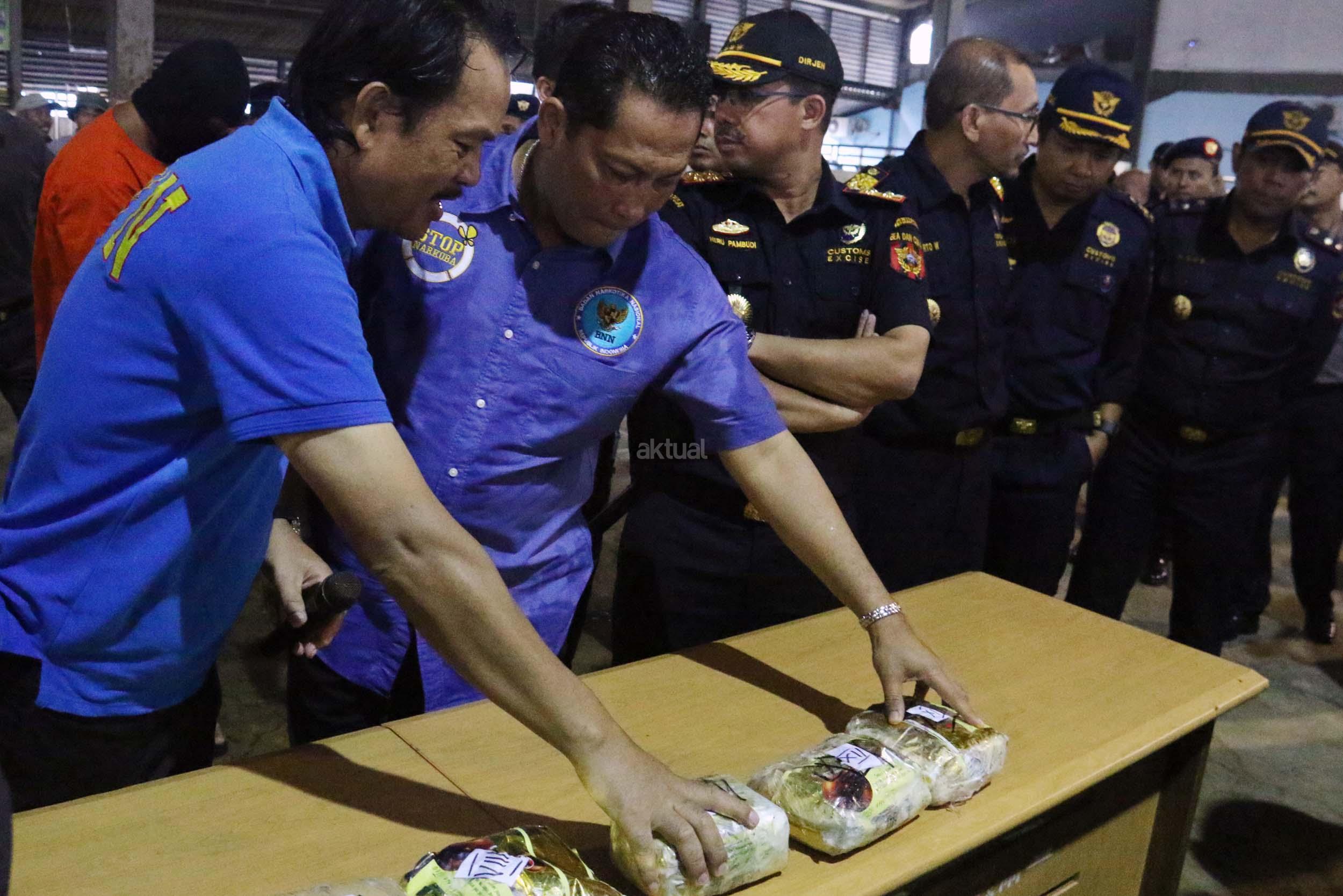Petugas gabungan BNN dan Bea Cukai berhasil mengamankan lima orang anak buah kapal yang membawa 13,56 kg methampetamine (sabu) serta satu orang warga negara Malaysia tewas saat penangkapan karena melakukan perlawanan, AKTUAL/Munzir