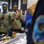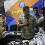 Kepala Badan Narkotika Nasional (BNN) Komjen Pol. Budi Waseso (tengah) menunjukan barang bukti hasil dari pengungkapan kasus jaringan narkotika Malaysia di Gedung BNN, Jakarta, Jumat (28/10/2016). BNN berhasil menggagalkan upaya penyeludupan narkotika jenis sabu sebanyak 38,999 gram, 98.690 butir ekstasi dan 50.000 butir H5 yang dibawa dari Malaysia menuju Medan, Sumatera Utara dari tiga orang tersangka dimana salah satunya tewas tertembak karena mencoba melakukan perlawanan.