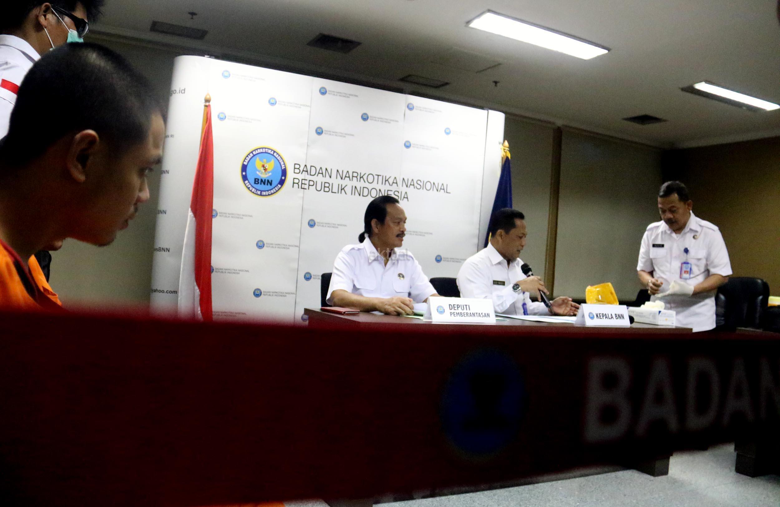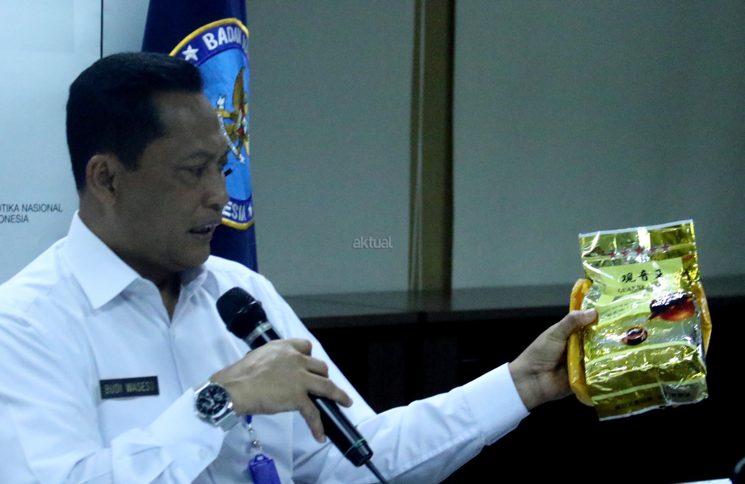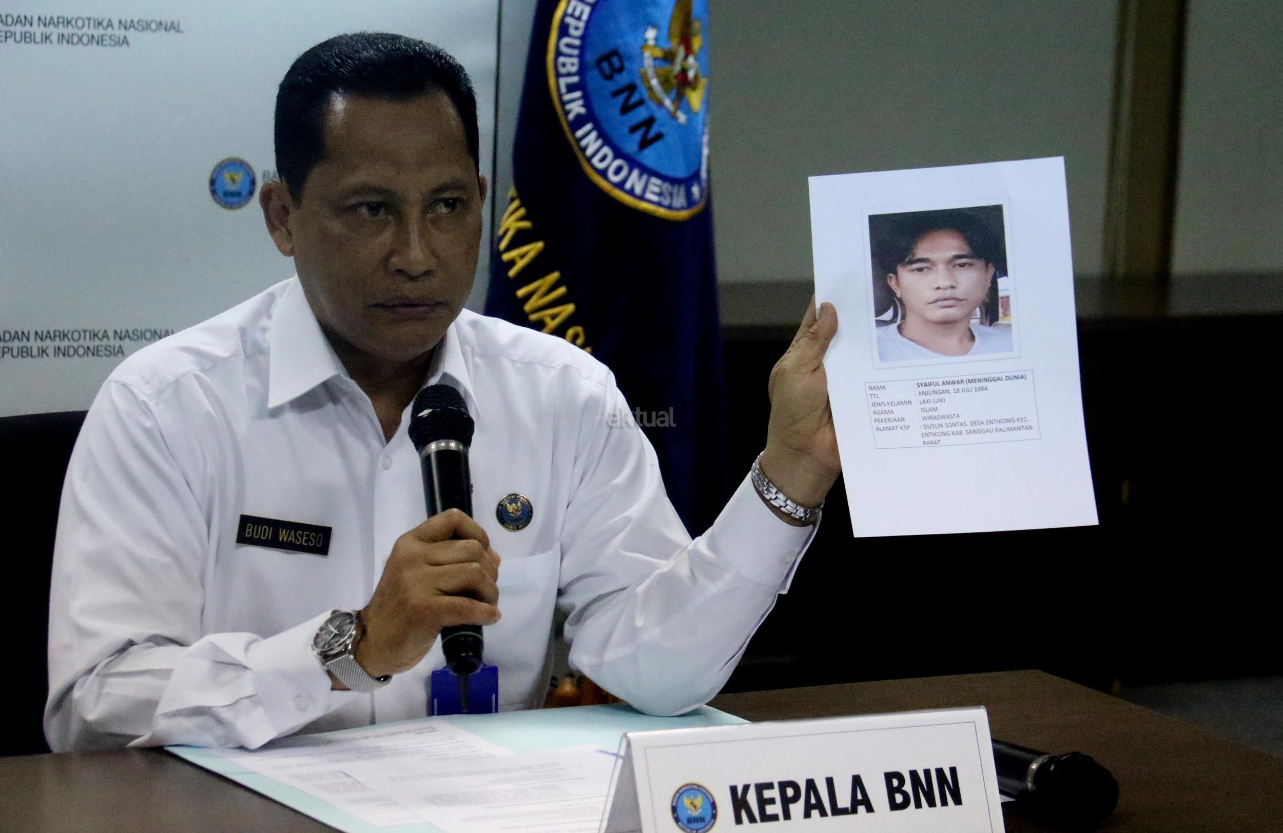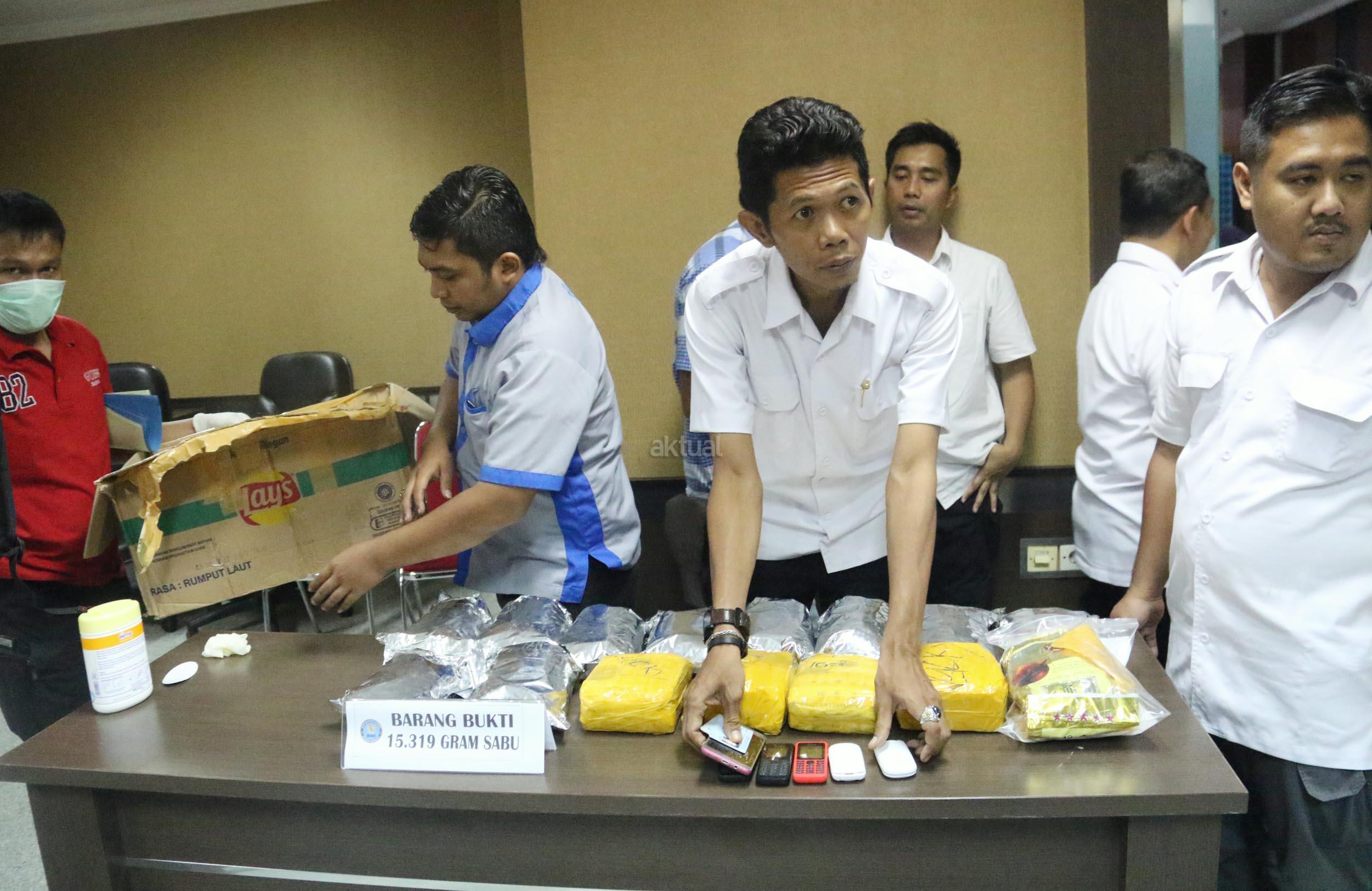 Dalam jumpa persnya Badan Narkotika Nasional (BNN) berhasil menggagalkan peredaran sabu seberat 15,13 kg dikawasan Kalimantan Barat, BNN juga berhasil mengamankan dua orang tersangka dan menembak mati dua orang pelaku peredaran sabu. AKTUAL/Munzir