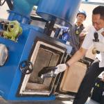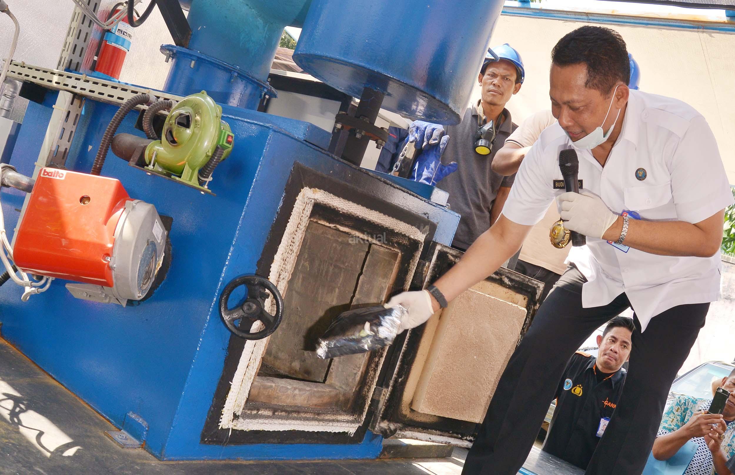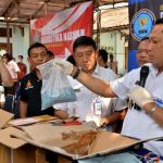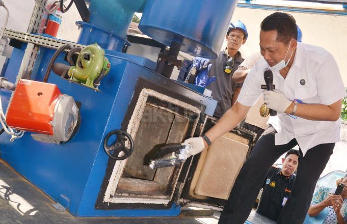 Kepala BNN, Budi Waseso memasukkan pil ekstasi ke dalam mesin pemusnah narkotika di halaman kantor BNN, Jakarta, Kamis (9/3/2017). Badan Narkotika Nasional (BNN) memusnahkan 40.573,5 gram sabu dan 44.387 butir ekstasi. Barang bukti itu berasal dari pengungkapan 4 kasus yang melibatkan jaringan internasional.