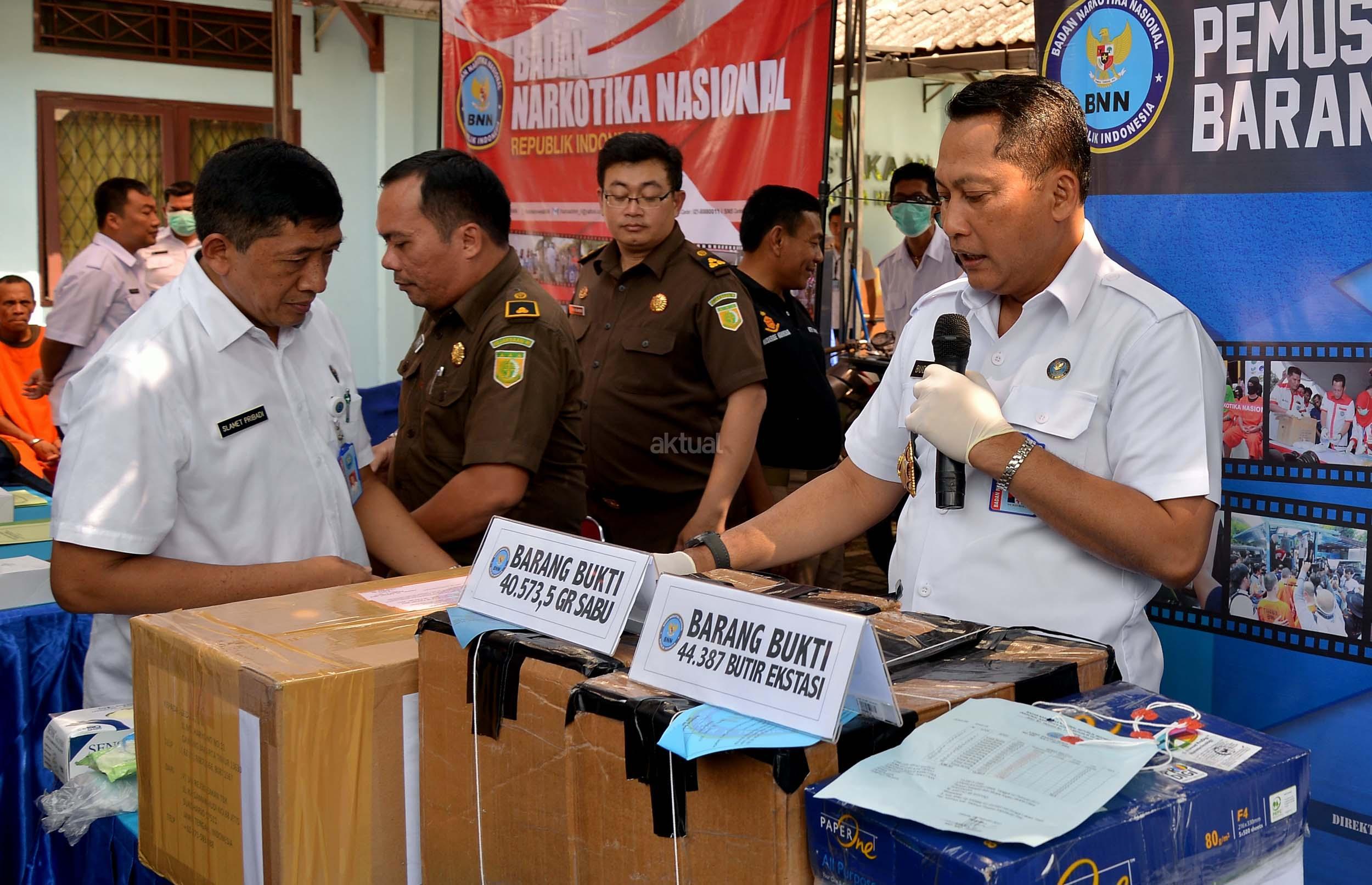 Badan Narkotika Nasional (BNN) memusnahkan 40.573,5 gram sabu dan 44.387 butir ekstasi. Barang bukti itu berasal dari pengungkapan 4 kasus yang melibatkan jaringan internasional.