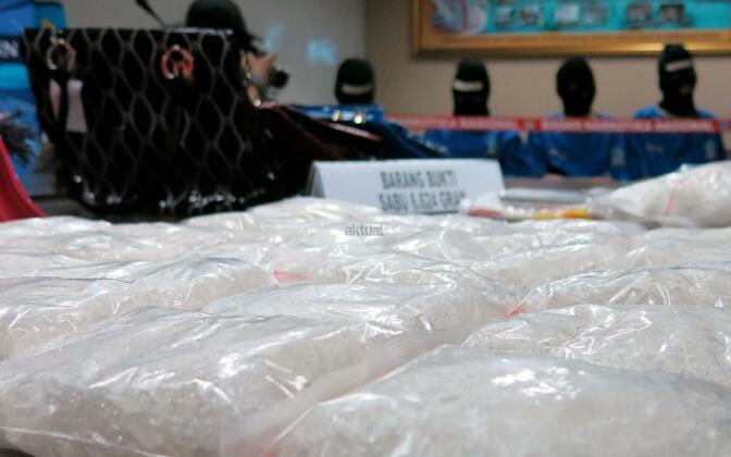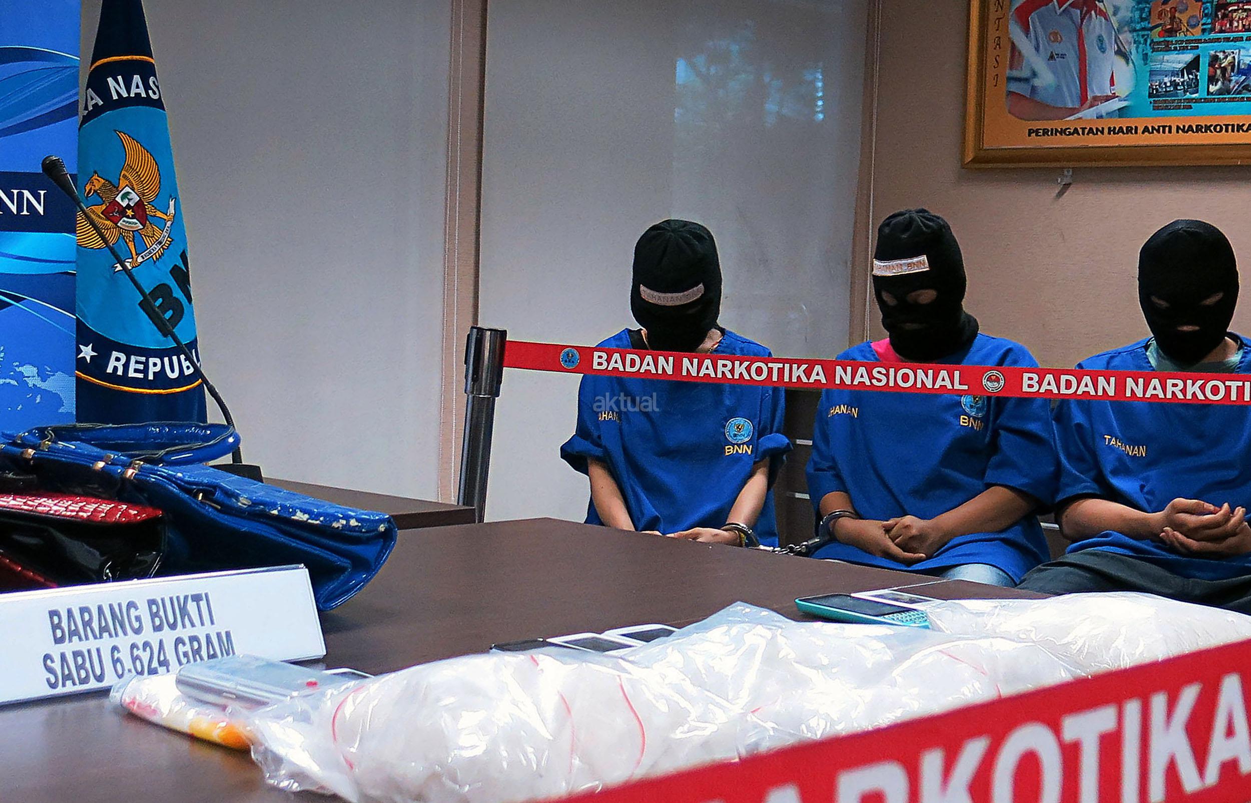 Badan Nasional Narkotika (BNN) mengamankan 6.642 gram narkotika golongan 1 jenis Sabu saat rilis di Gedung BNN, Cawang, Jakarta Timur, Jumat (7/8/2015). BNN mengamankan 4 (empat) orang tersangka dari dua lokasi yang berbeda, Depok dan Johar Baru-Jakarta Pusat yang merupakan jaringan sindikat internasional asal Nigeria.