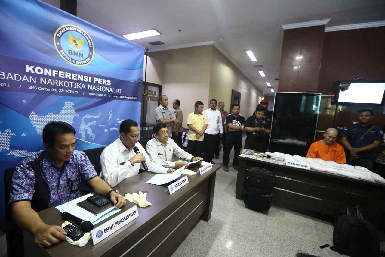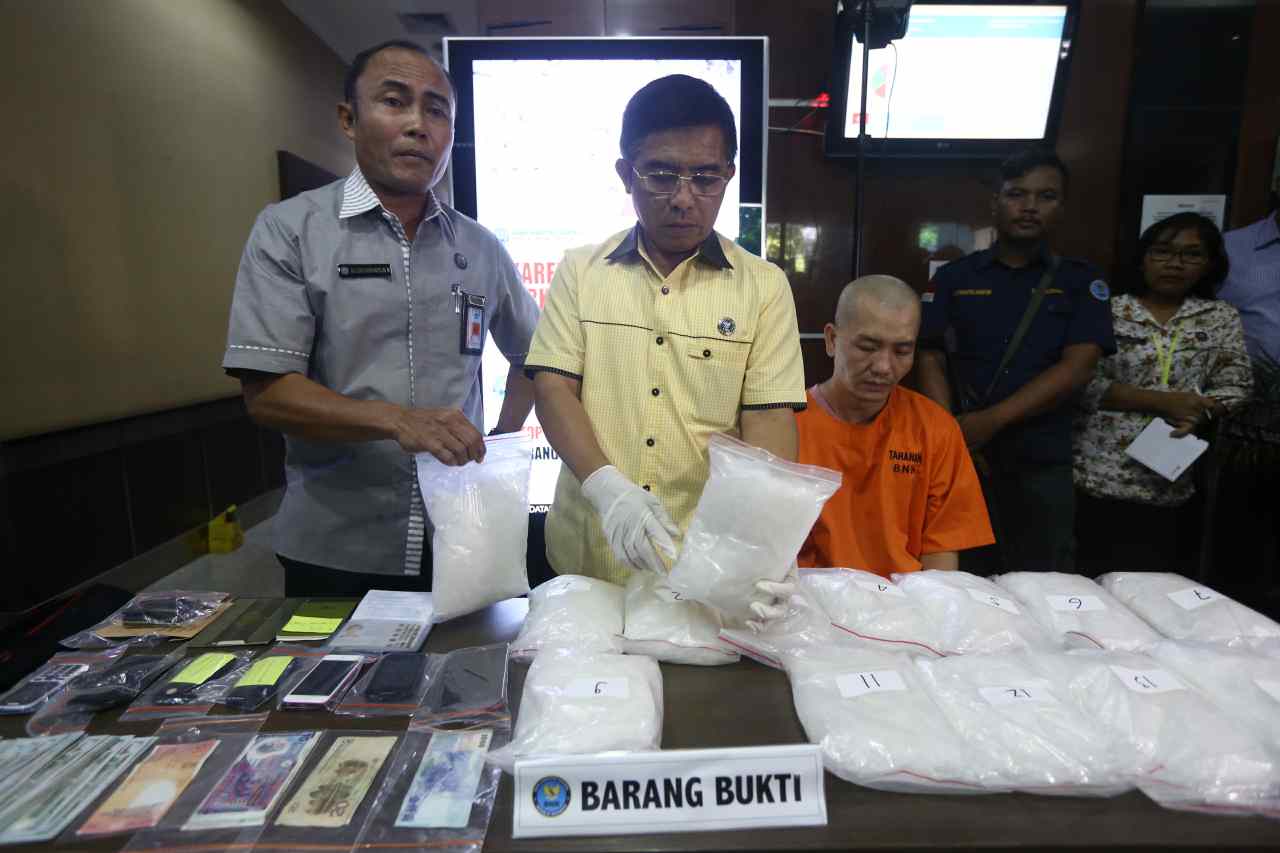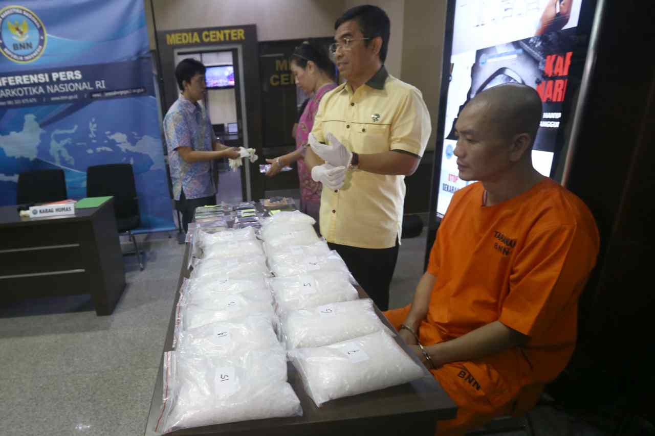 Badan Narkotika Nasional (BNN) ungkap peredaran sabu-sabu di kantor BNN, Jakarta, Selasa (2/8). BNN ungkap peredaran narkotika melibatkan warga negara asing. Warga negara asing tersebut berasal dari Taiwan. Penyidik BNN menyita 15 kilogram sabu dari tangan tersangka. Selain narkotika, BNN juga menyita harta benda tersangka berupa mobil, uang tunai dollar Amerika. AKTUAL/TINO OKTAVIANO