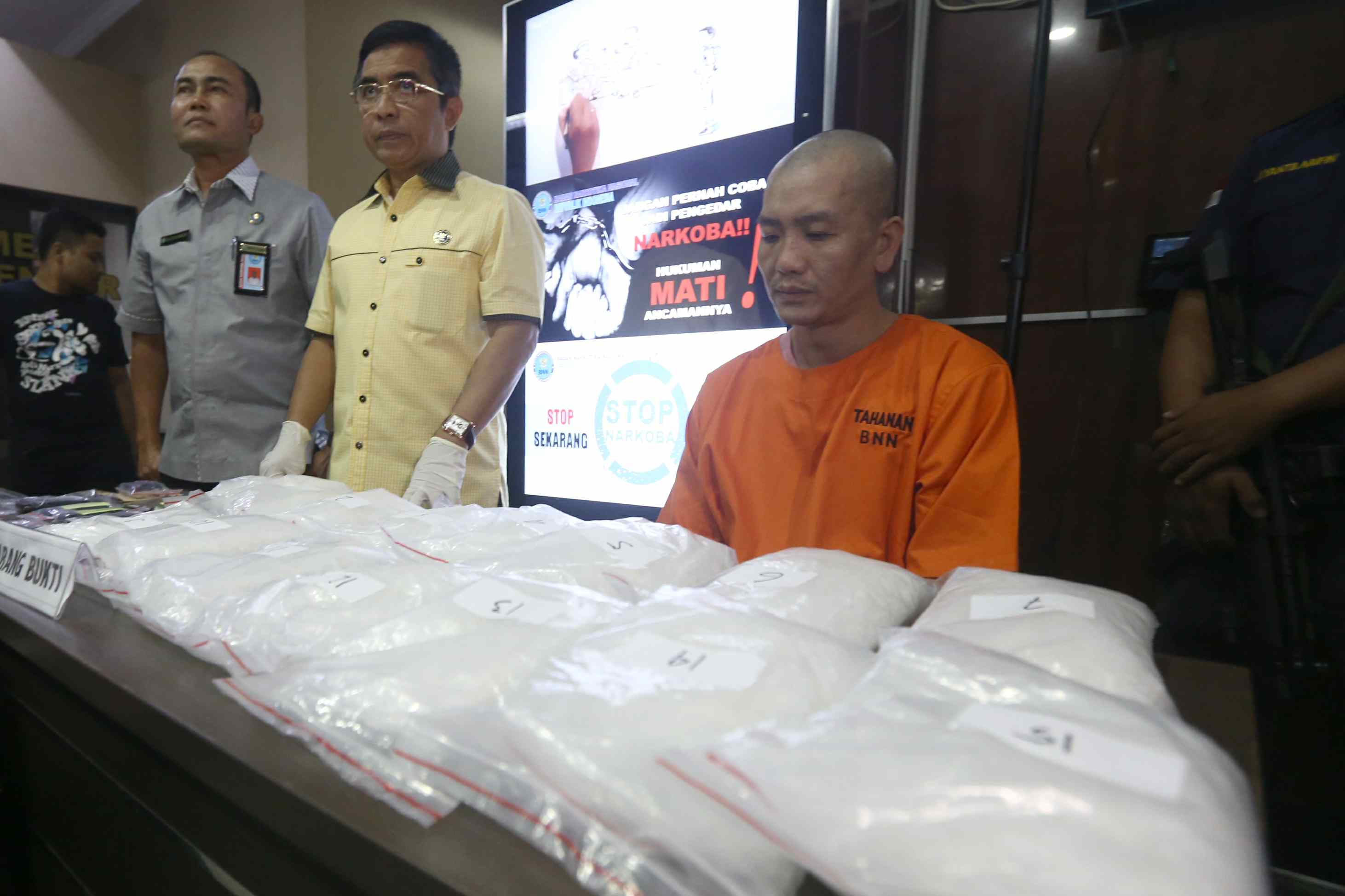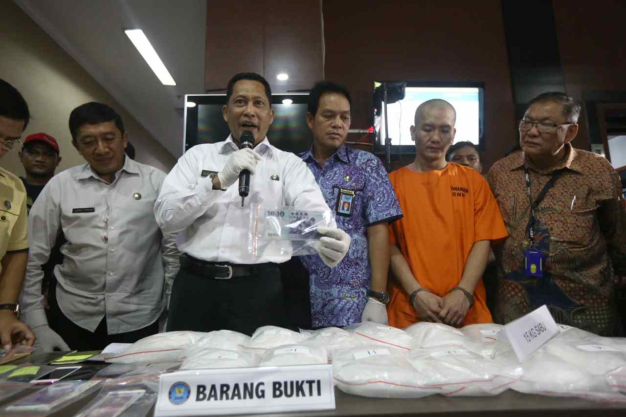 Kepala Badan Narkotika Nasional (BNN) Budi Waseso mengungkap peredaran sabu-sabu di kantor BNN, Jakarta, Selasa (2/8). BNN ungkap peredaran narkotika melibatkan warga negara asing. Warga negara asing tersebut berasal dari Taiwan. Penyidik BNN menyita 15 kilogram sabu dari tangan tersangka. Selain narkotika, BNN juga menyita harta benda tersangka berupa mobil, uang tunai dollar Amerika. AKTUAL/TINO OKTAVIANO