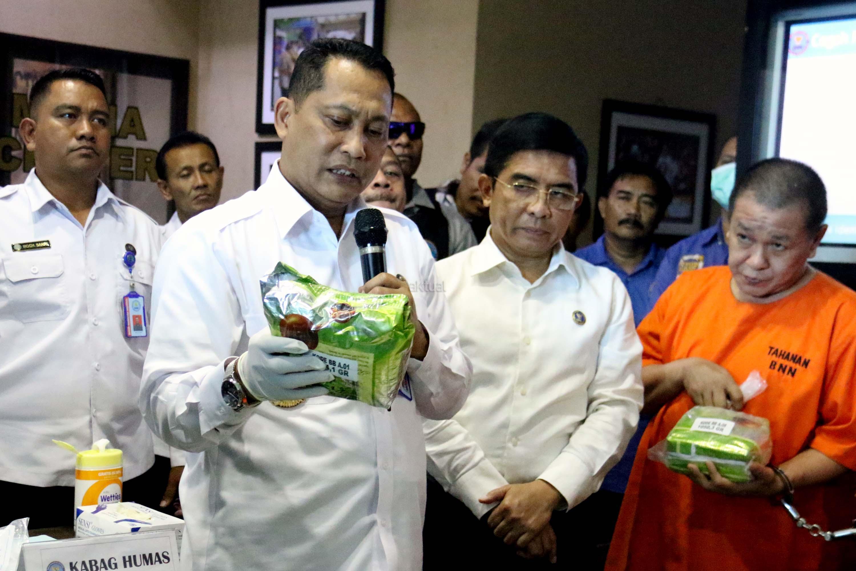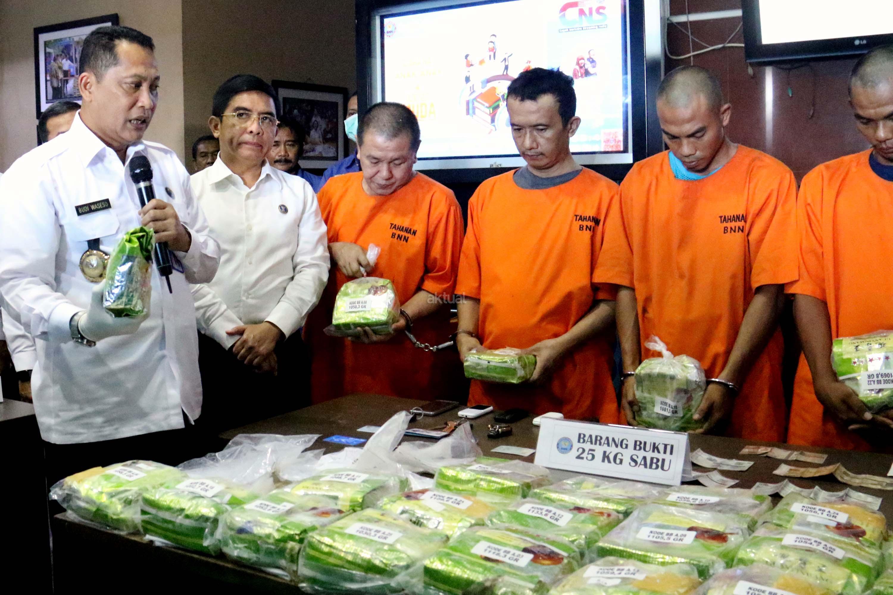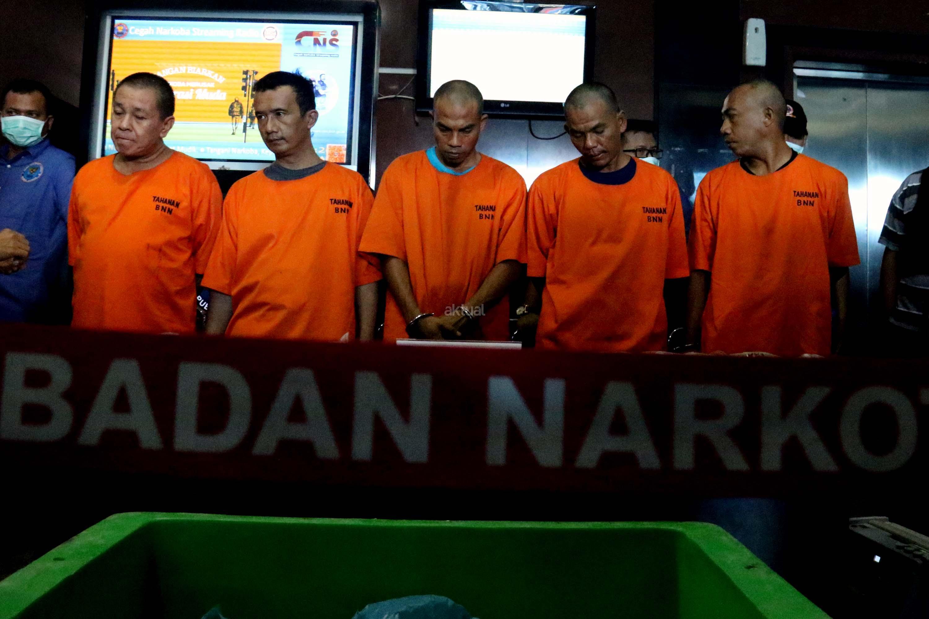Badan Narkotika Nasional berhasil mengungkap jaringan sindikat narkotika internasional Malaysia – Aceh dan Medan dengan barang bukti sabu seberat 25 kg yang dikemas dalam bungkus plastik teh tiongkok yang dimasukan dalam kotak pendingin ikan laut dan berhasil membekuk 5 orang tersangka pada tanggal 14 Mei 2017 lalu. AKTUAL/Munzir