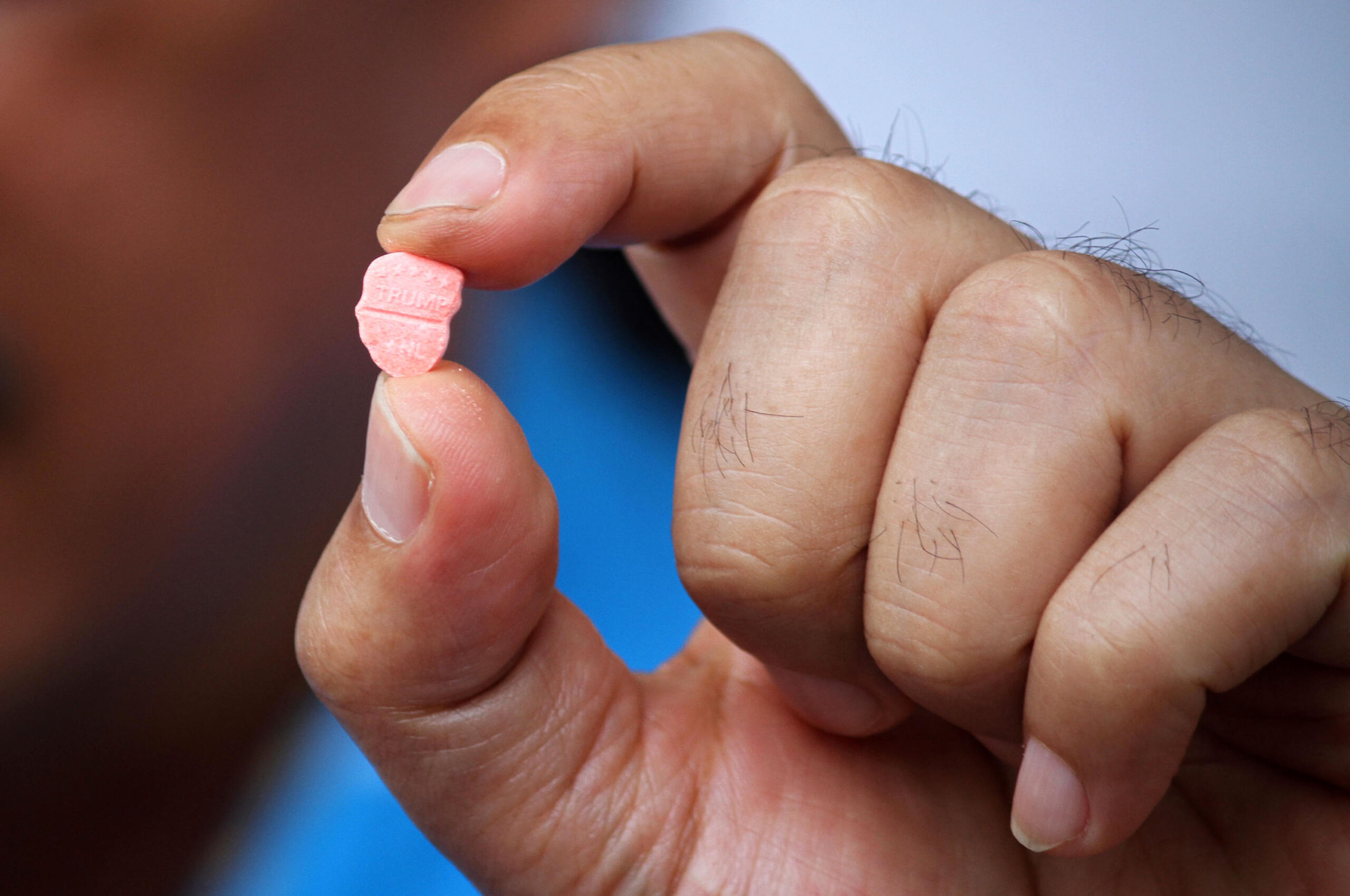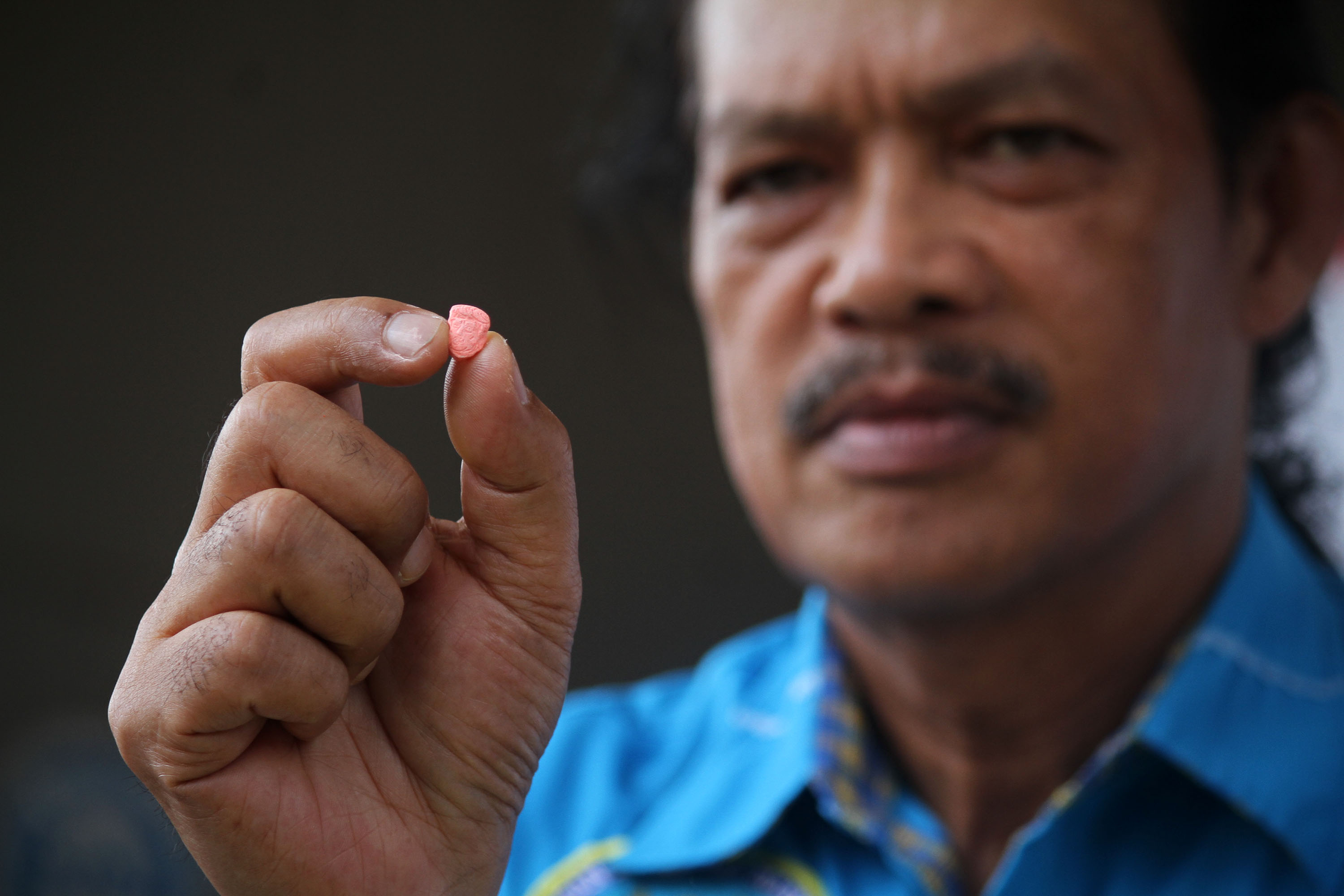 Deputi Pemberantasan BNN Irjen Pol Amran Depari menunjukkan barang bukti ekstasi bergambar Presiden AS Donald Trump saat pengungkapan perkara peredaran narkotika di Gedung BNN, Cawang, Jakarta, Jumat (28/9/2018). BNN berhasil mengungkap tiga kasus tindak pidana narkotika dengan menyeret 13 tersangka berikut barang bukti 42,6 kg sabu, 98,7 Kg ganja, serta 2.985 butir ekstasi di tiga lokasi yakni Medan, Tangerang, dan Lubuk Pakam. AKTUAL/Tino Oktaviano