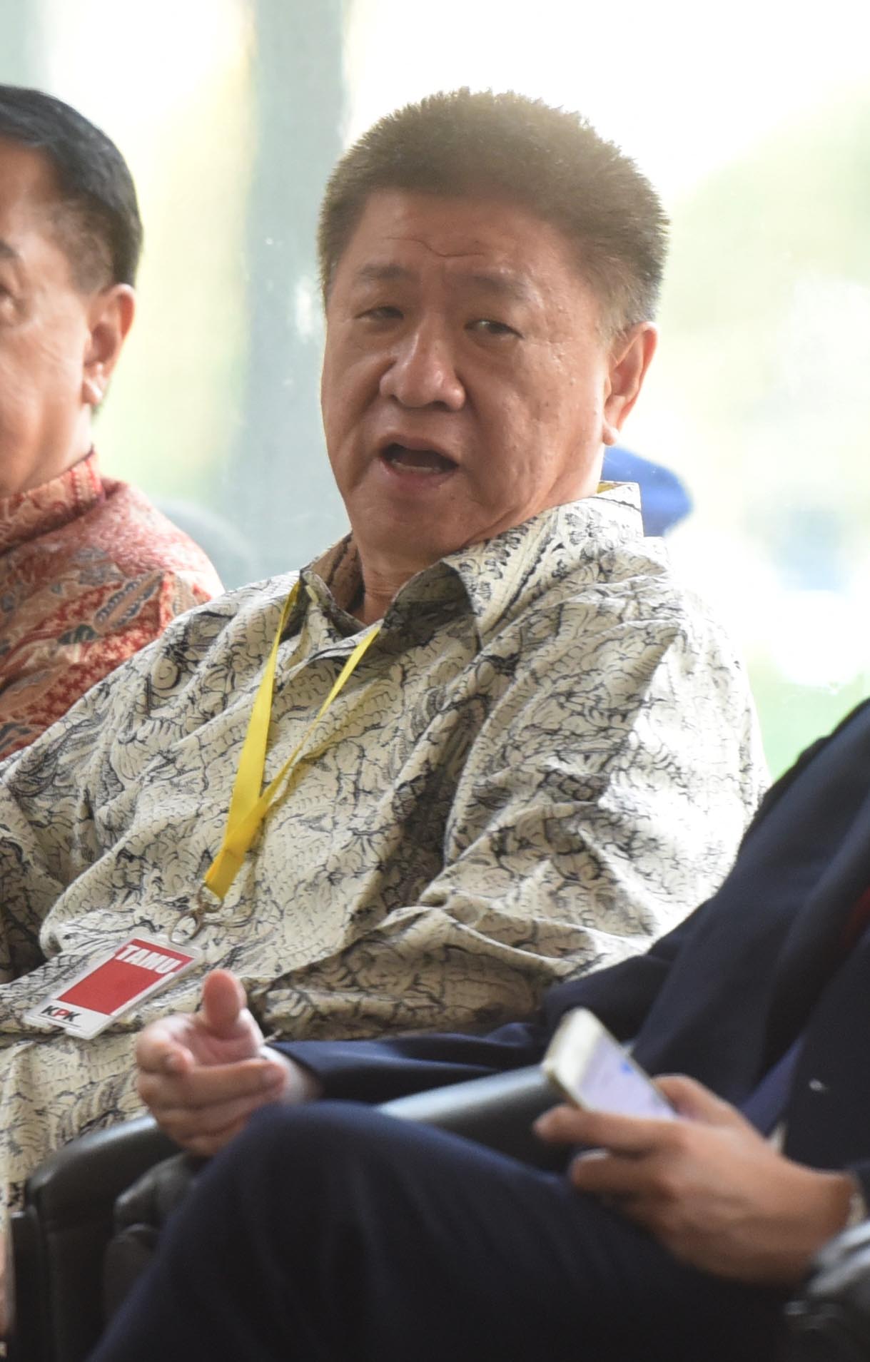 Chairman Agung Sedayu Group Sugianto Kusuma alias Aguan menunggu untuk diperiksa di Gedung KPK, Jakarta, Selasa (17/4). Aguan diperiksa sebagai saksi terkait kasus pembahasan Raperda tentang rencana zonasi wilayah pesisir dan pulau-pulau kecil provinsi DKI Jakarta tahun 2015-2035 dan raperda tentang rencana tata ruang kawasan strategis Pantai Utara Jakarta. ANTARA FOTO/Akbar Nugroho Gumay/pd/16