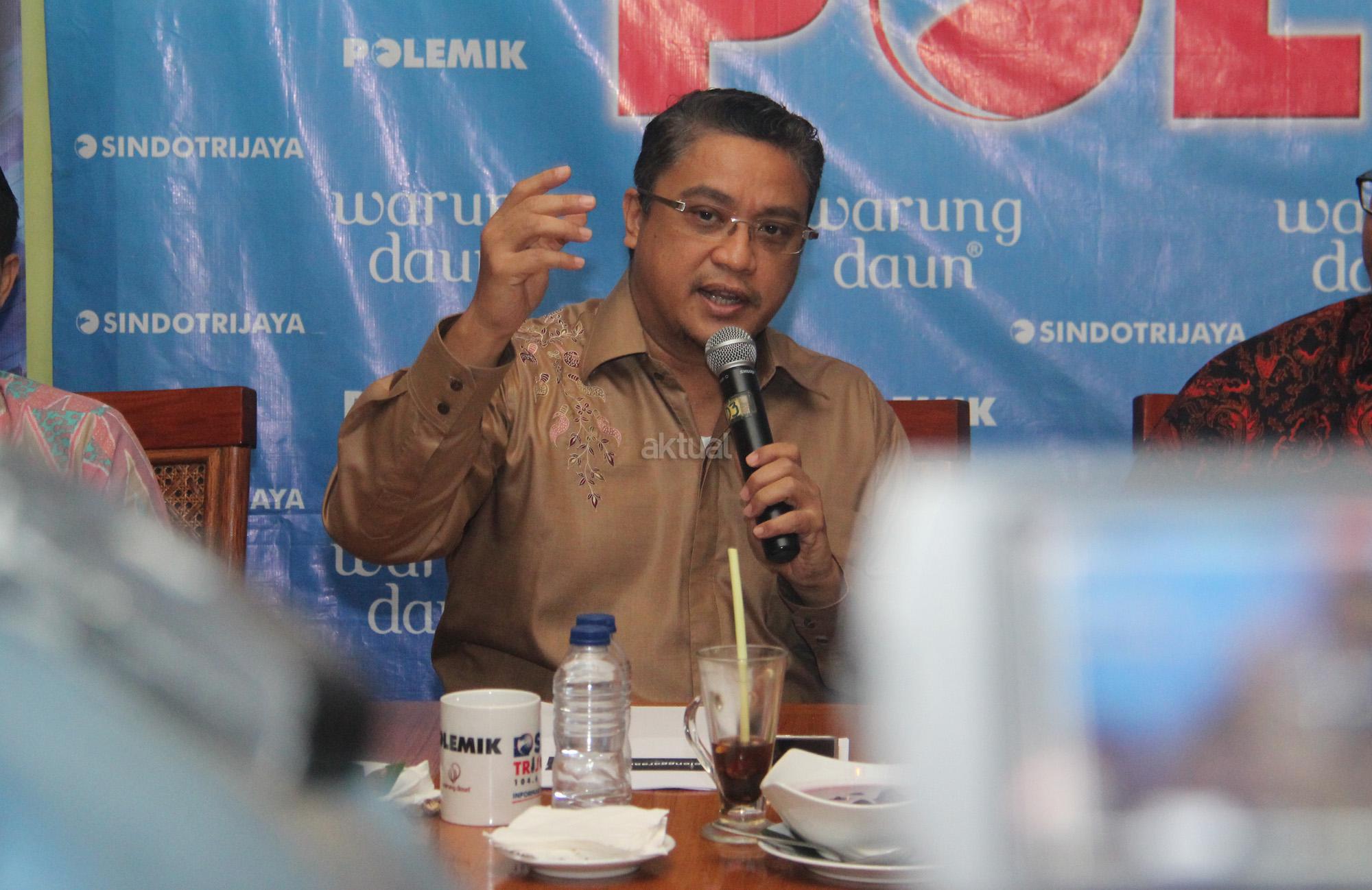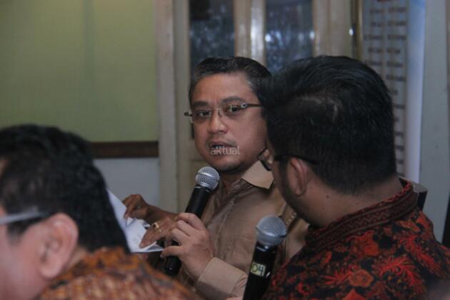 Kepala Group Komunikasi Publik BPJS Kesehatan, M Ikhsan saat menjadi narasumber dalam acara diskusi di Jakarta, Sabtu (19/3/2016). Diskusi ini membahas tema "BPJS Antara Sehat dan Sengsara". FOTO: AKTUAL/JUNAIDI MAHBUB
