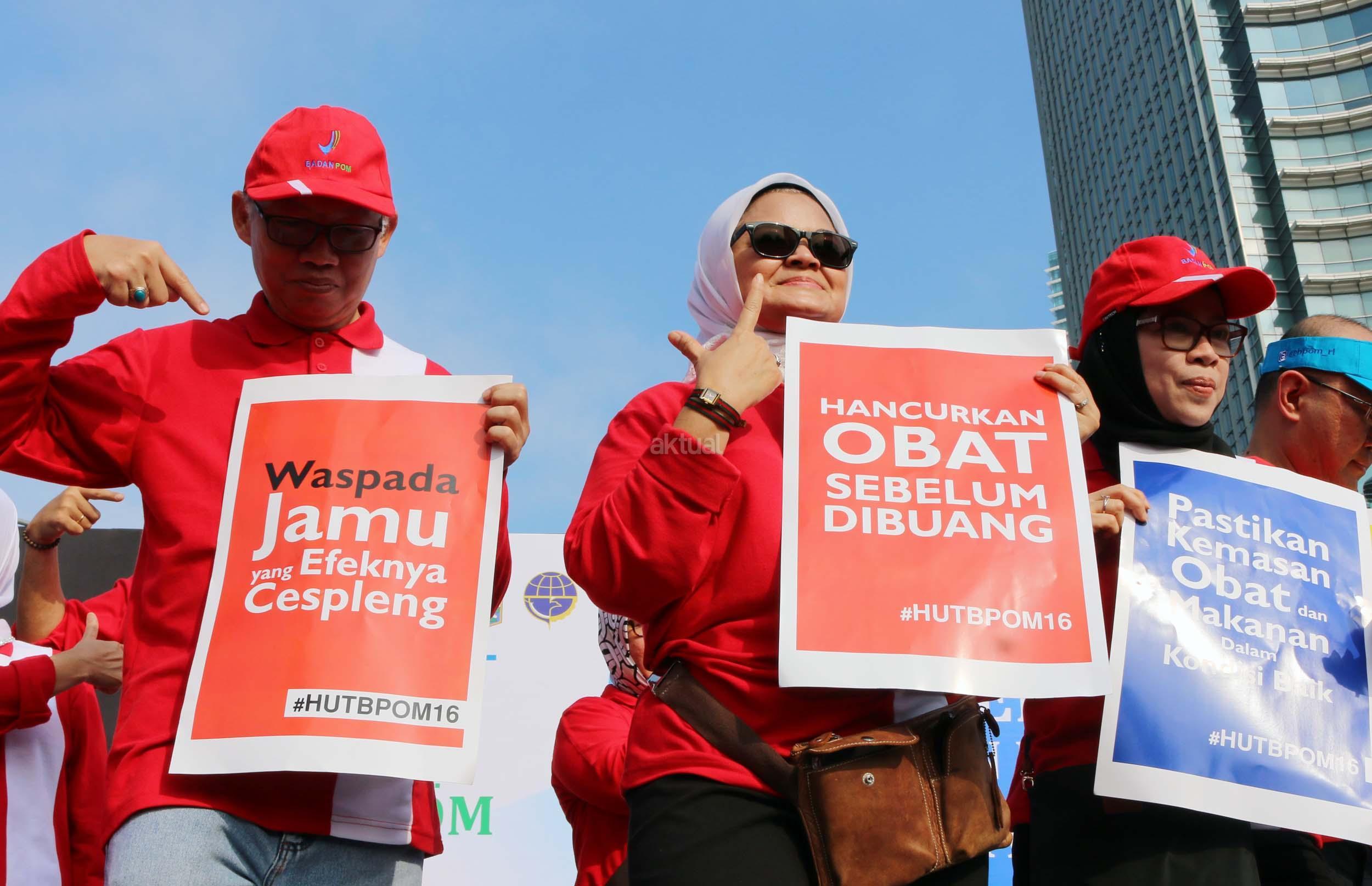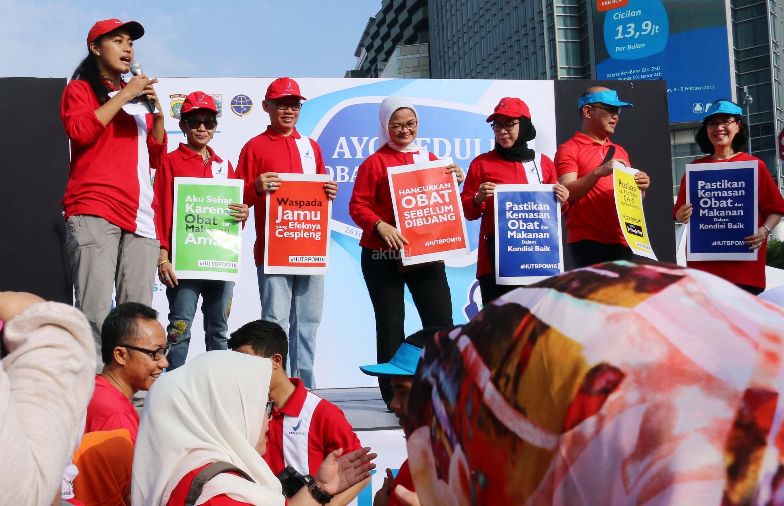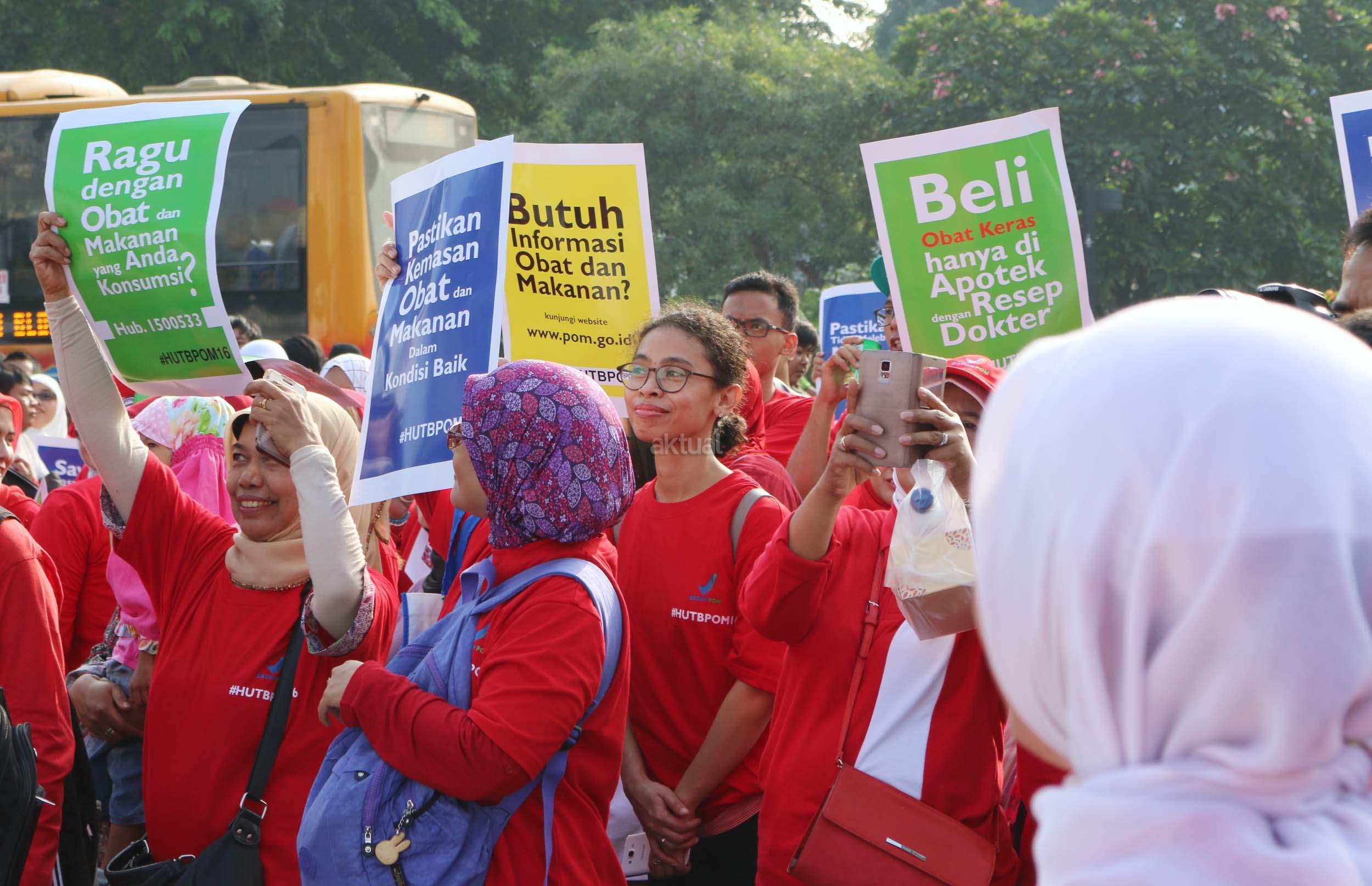 Badan Pengawas Obat dan Makanan (BPOM) melakukan aksi sosial di area car free day di Bundaran HI, Jakarta, Minggu (26/2/2017). Dalam aksi ini, BPOM mengingatkan pentingnya masyarakat untuk peduli obat dan pangan aman. AKTUAL/Munzir