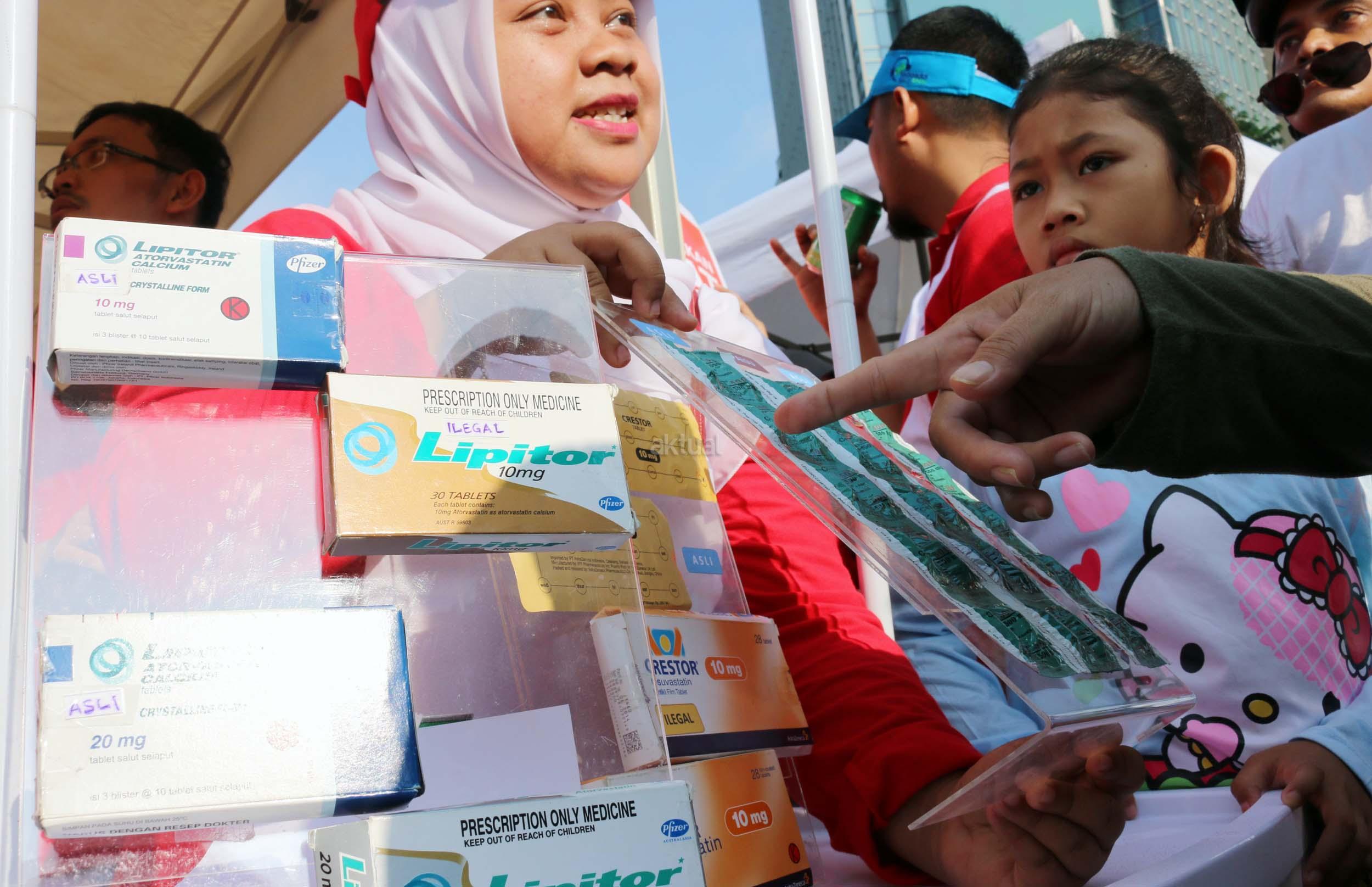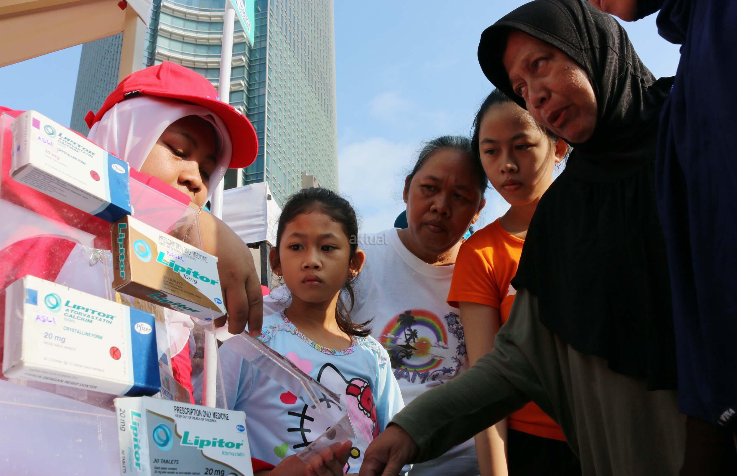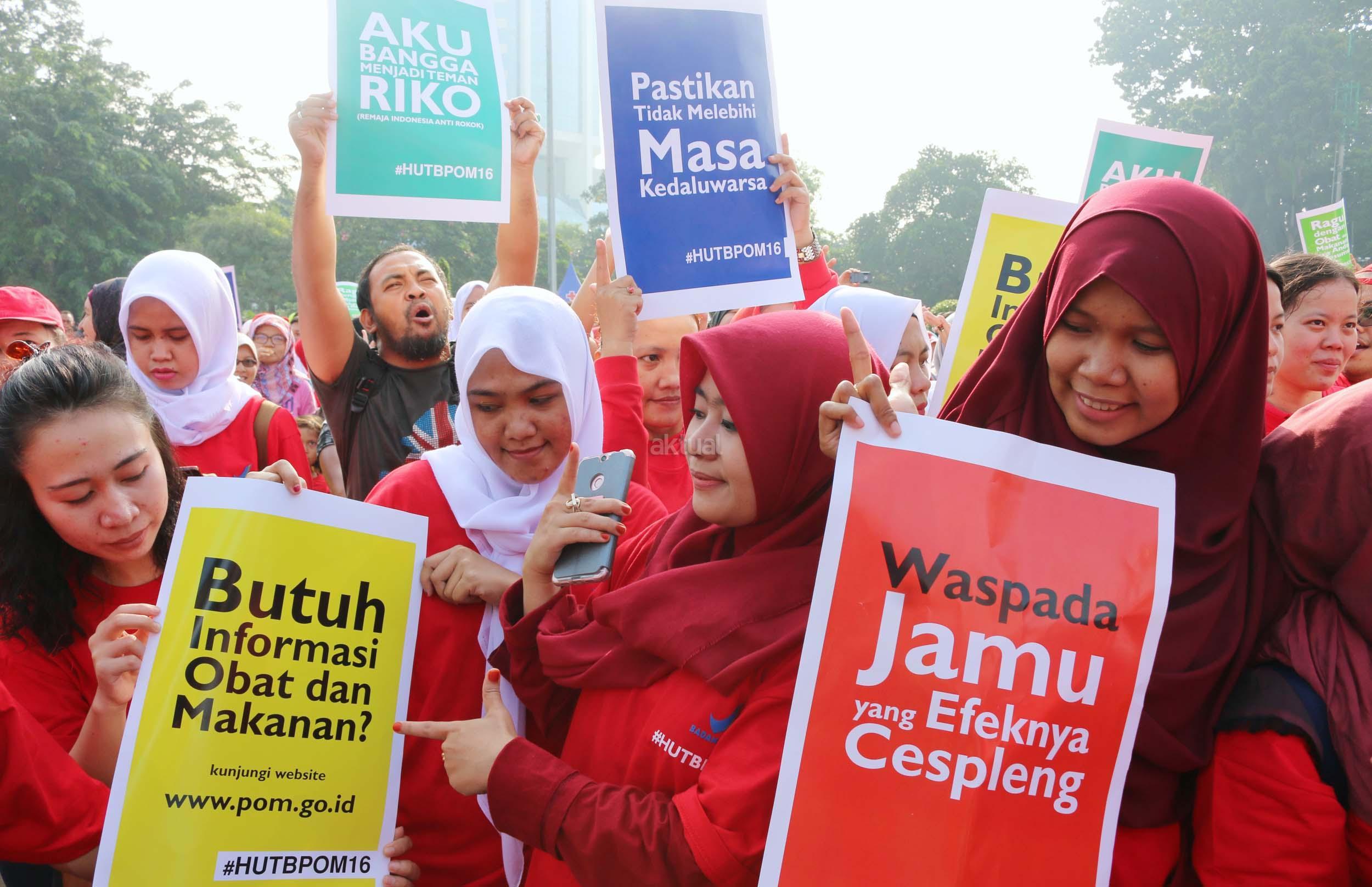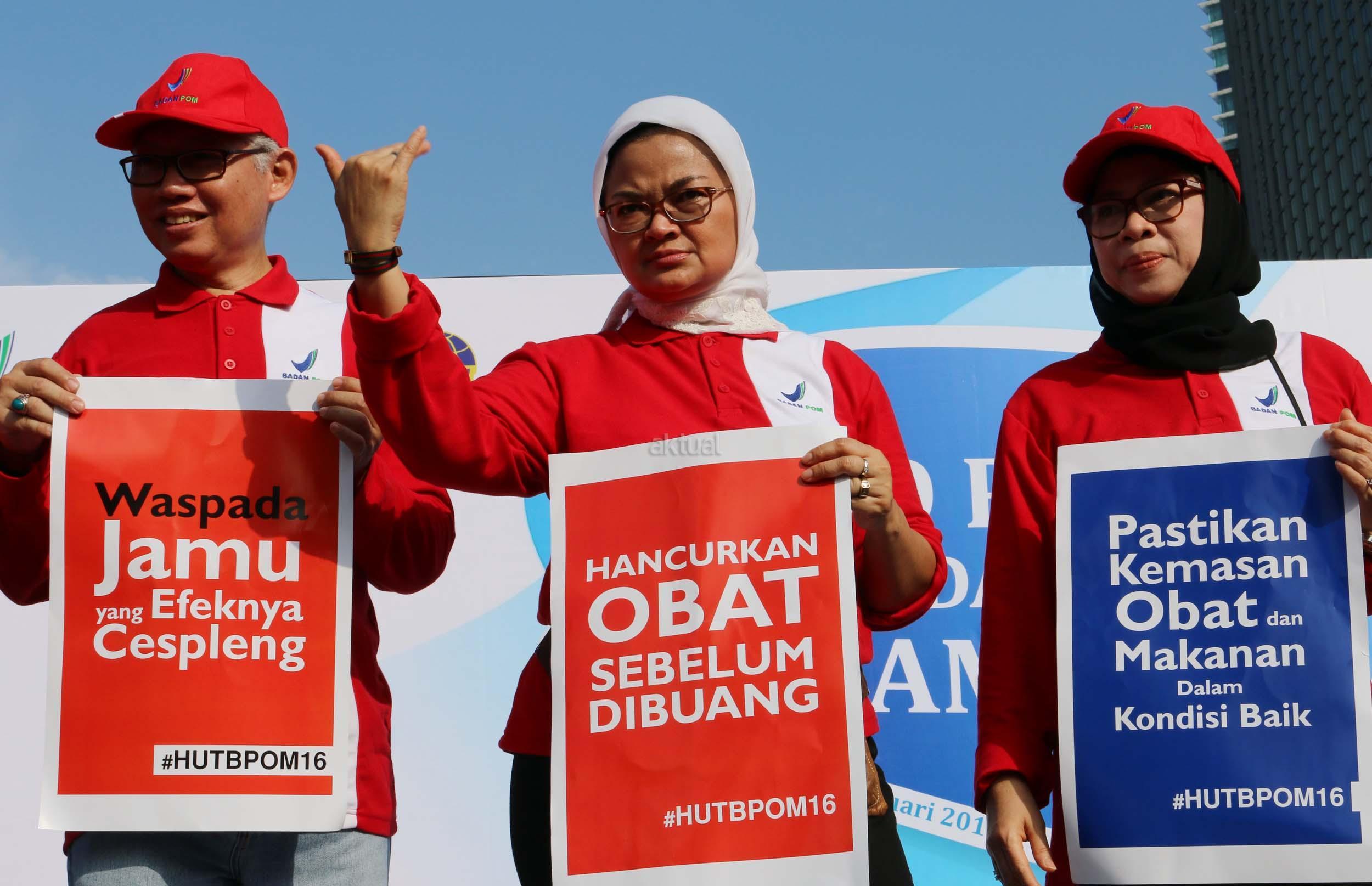 Badan Pengawas Obat dan Makanan (BPOM) melakukan aksi sosial di area car free day di Bundaran HI, Jakarta, Minggu (26/2/2017). Dalam aksi ini, BPOM mengingatkan pentingnya masyarakat untuk peduli obat dan pangan aman. AKTUAL/Munzir