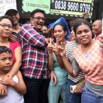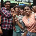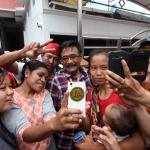 Calon Wakil Gubernur DKI Jakarta Djarot Saiful Hidayat (tengah) melakukan selfie dengan warga saat melakukan blusukan di Kembangan Utara, Jakarta, Rabu (9/11). Meski sempat mendapat penolakan dari sekelompok orang, namun Djarot tetap melakukan blusukan untuk menyerap aspirasi warga. AKTUAL/Tino Oktaviano