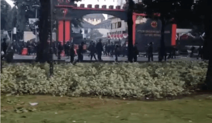 Dikutip dari Antara sekira pukul 07.00 WIB, para anggota itu berjejer di sepanjang jalan meskipun sudah tidak terlibat kisruh dengan massa aksi.