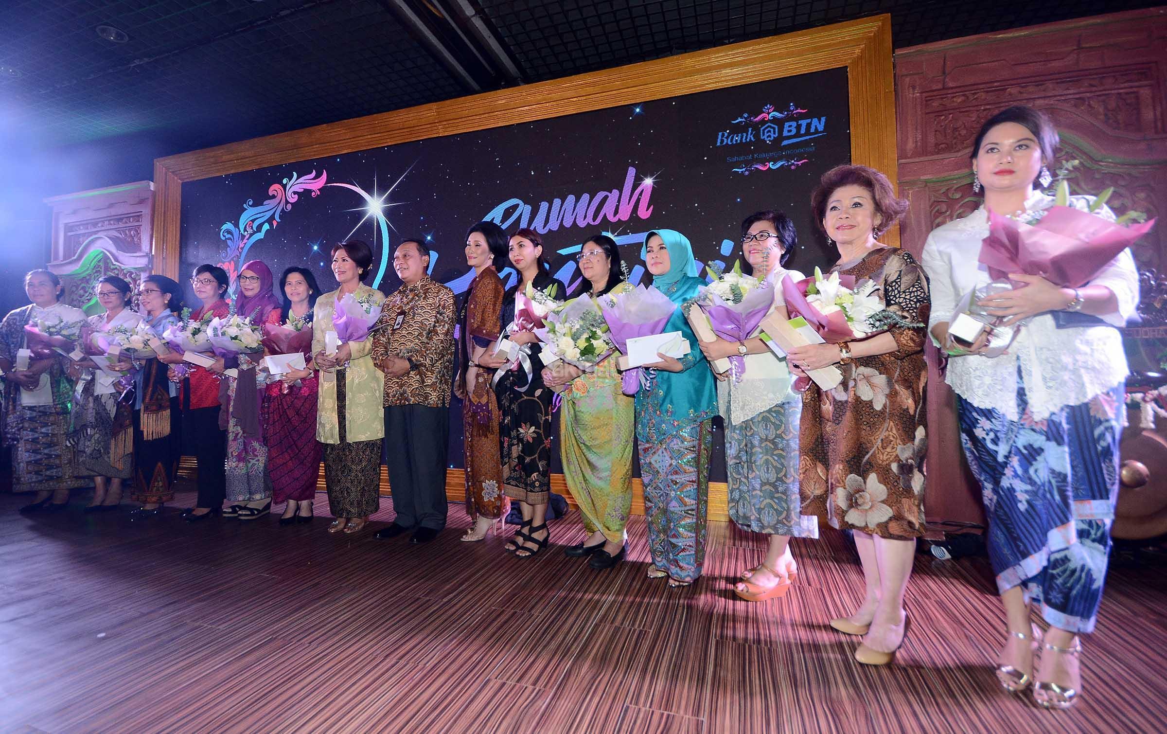 Direktur Utama PT Bank Tabungan Negara (persero) Tbk, Maryono (tengah) berfoto bersama dengan para penerima penghargaan disela pembukaan acara penghargaan Rumah Kartini BTN di Jakarta, Selasa (25/4). Melalui acara ini, Bank BTN, memberikan penghargaan bagi para perempuan yang terpilih karena memberi inspirasi dalam karya dan jasanya, baik di keluarga maupun di lingkungan kerjanya. Adapun terdapat 7 kategori penghargaan yang diberikan Bank BTN dalam Rumah Kartini BTN yaitu, Kartini bank BTN, Kartini Terinspiratif kategori mitra pendukung perumahan, Kartini terinspiratif untuk penegak integritas, Kategori Organisasi perumahan, Kategori agen properti, kategori developer, dan Nasabah Bank BTN Terinspiratif. AKTUAL/Eko S Hilman