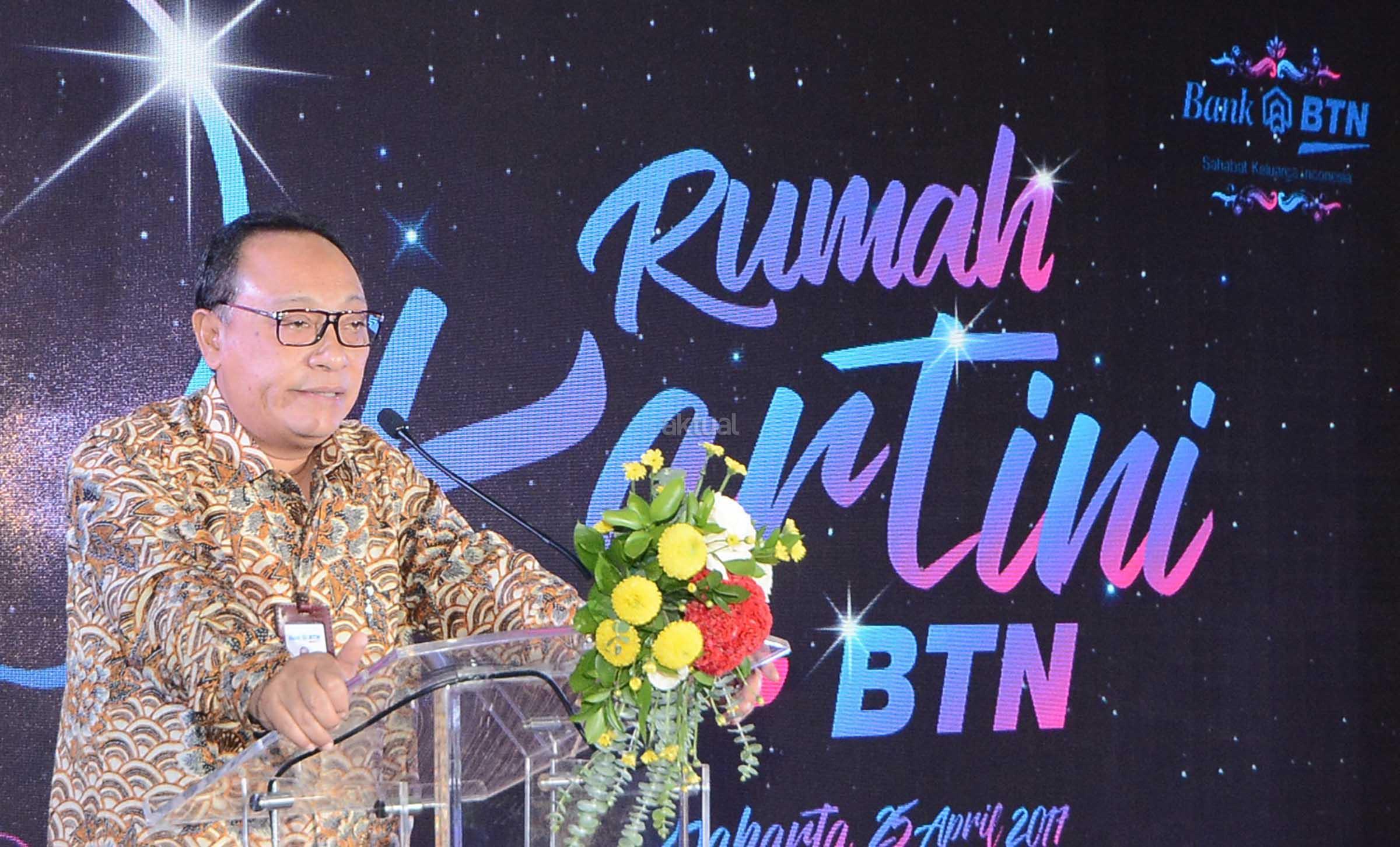 Direktur Utama PT Bank Tabungan Negara (persero) Tbk Maryono (kiri) memberikan sambutan saat pembukaan acara penghargaan Rumah Kartini BTN di Jakarta, Selasa (25/4). Melalui acara ini, Bank BTN memberikan penghargaan bagi para perempuan yang terpilih karena memberi inspirasi dalam karya dan jasanya, baik di keluarga maupun di lingkungan kerjanya. Adapun terdapat 7 kategori penghargaan yang diberikan Bank BTN dalam Rumah Kartini BTN yaitu, Kartini bank BTN, Kartini Terinspiratif kategori mitra pendukung perumahan, Kartini terinspiratif untuk penegak integritas, Kategori Organisasi perumahan, Kategori agen properti, kategori developer dan Nasabah Bank BTN Terinspiratif. AKTUAL/Eko S Hilman