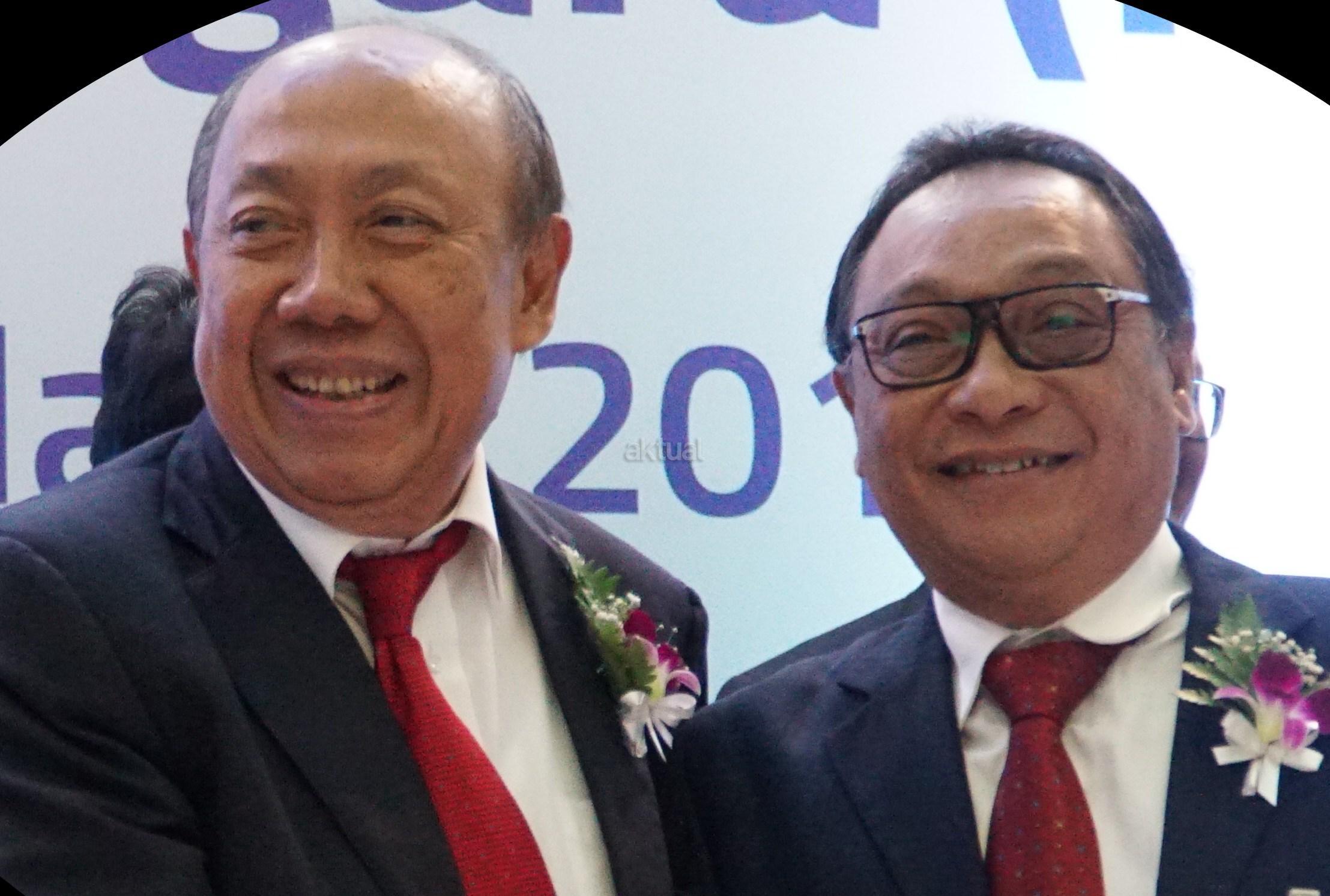 Direktur Utama PT Bank Tabungan Negara (Persero) Tbk Maryono (kanan) berjabat tangan dengan Komisaris Utama, I Wayan Agus Mertayasa usai Rapat Umum Pemegang Saham Tahunan (RUPST) untuk tahun buku 2017 di Jakarta, Jumat (23/3). RUPST memutuskan untuk pembagian dividen kepada pemegang saham sebanyak 20% dari laba bersih tahun 2017 atau sebesar Rp 605.49 miliar dari total laba sebesar Rp 3,027 triliun. Sementara 80% sisanya sebagai laba ditahan akan digunakan perseroan untuk ekspansi kredit dan pengembangan usaha. Bank BTN optimis dalam memasuki bisnis tahun 2018 dengan target tercapai sesuai dengan rencana bisnis perseroan. AKTUAL/Eko S Hilman