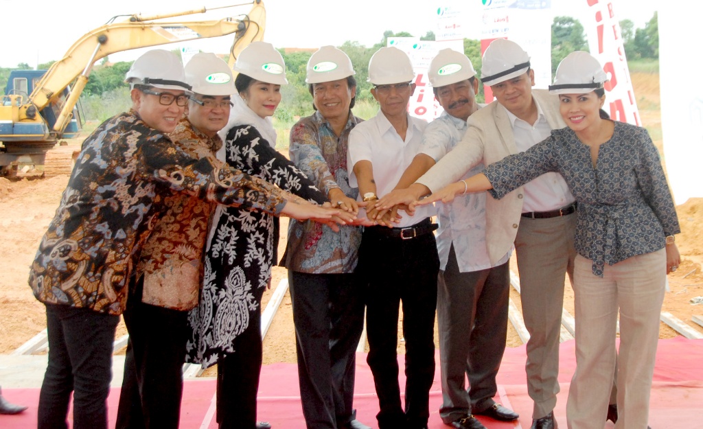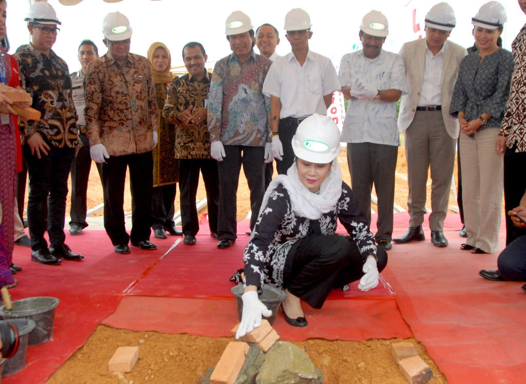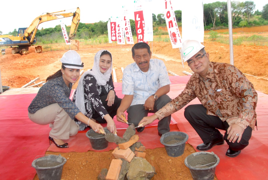 Direktur Consumer Banking BTN Handayani bersama Direktur BPJS Ketenagakerjaan Amran Nasution (kanan), Direktur Utama Lion Group Edward Sirait (kedua kanan) dan Direktur Utama Sarana Global Utama Yuyu Yuhanah (kiri) melakukan pelatakan batu pertama pembangunan perumahan pekerja Lion Residence, di Batam, Kamis (12/10). Di lahan sekitar 3,7 Hektar yang berlokasi di Kelurahan Batu Besar Kecamatan Nongsa batam itu akan disiapkan sekitar 1.200 unit rumah yang diperintukkan bagi pegawai Lion Air Group. Pada tahap awal proyek ini akan dibangun 320 unit rumah subsidi dan 210 unit rumah non subsidi dengan dukungan pembiayaan dari Bank BTN dengan skim syariah kerjasama BPJS Tenaga Kerja. Melalui kerjasama ini BTN optimis akan dapat mendongkrak perolehan kredit pembiayaan perumahan berbasis syariah di wilayah Batam. AKTUAL/Humas BTN