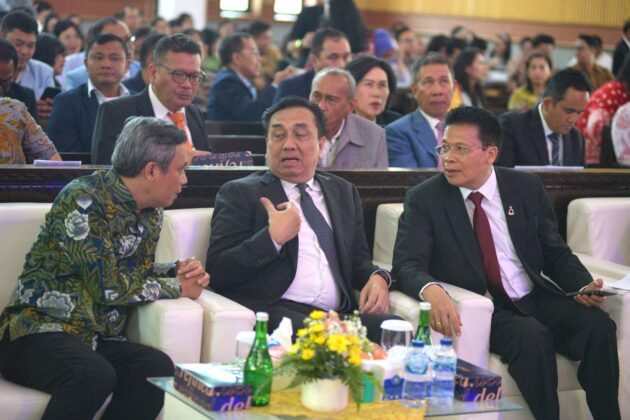 Direktur Utama BTN Nixon LP Napitupulu bersama Ketua Yayasan Universitas HKBP Nomensen, Dr. Effendi Muara Sakti Simbolon memperlihatkan naskah MOU disaksikan Ompui Ephorus HKBP, Pdt. Dr. Victor Tinambunan, MST, Direktur Network & Retail Funding BTN Rully Setiawan, Direktur Commercial Banking BTN Hermita dan SEVP Digital Business BTN Thomas Wahyudi usai menandatangani Nota Kesepahaman (MOU) antara BTN dengan Huria Kristen Bataka Protestan (HKBP) dan Yayasan Universitas HKBP Nomensen di Medan, Sumater Utara, Selasa (26/8). Penandatangan MOU dilakukan dalam rangka kerja sama penyediaan layanan perbankan bagi 6,5 juta jemaat HKBP. Dengan kerja sama tersebut memungkinkan BTN untuk menyediakan produk dan solusi komprehensif untuk HKBP dari sisi pendanaan hingga pembiayaan. BTN akan menyediakan produk Tabungan Khusus untuk jemaat HKBP sehingga menjadi bentuk nyata sinergi antara ibadah, tabungan, dan dukungan pada gereja. Dukungan terhadap HKBP sebagai organisasi yaitu melalui solusi pengelolaan dana gereja melalui Bale Korpora, yaitu platform digital korporasi BTN dengan Single Sign-On. Nixon mengatakan, Bale Korpora dapat membantu gereja untuk melakukan transfer dana, pembayaran atau pembelian, payroll, hingga manajemen likuiditas, sehingga gereja dapat mengelola keuangannya secara transparan, efisien, dan profesional. Aktual/DOK BTN