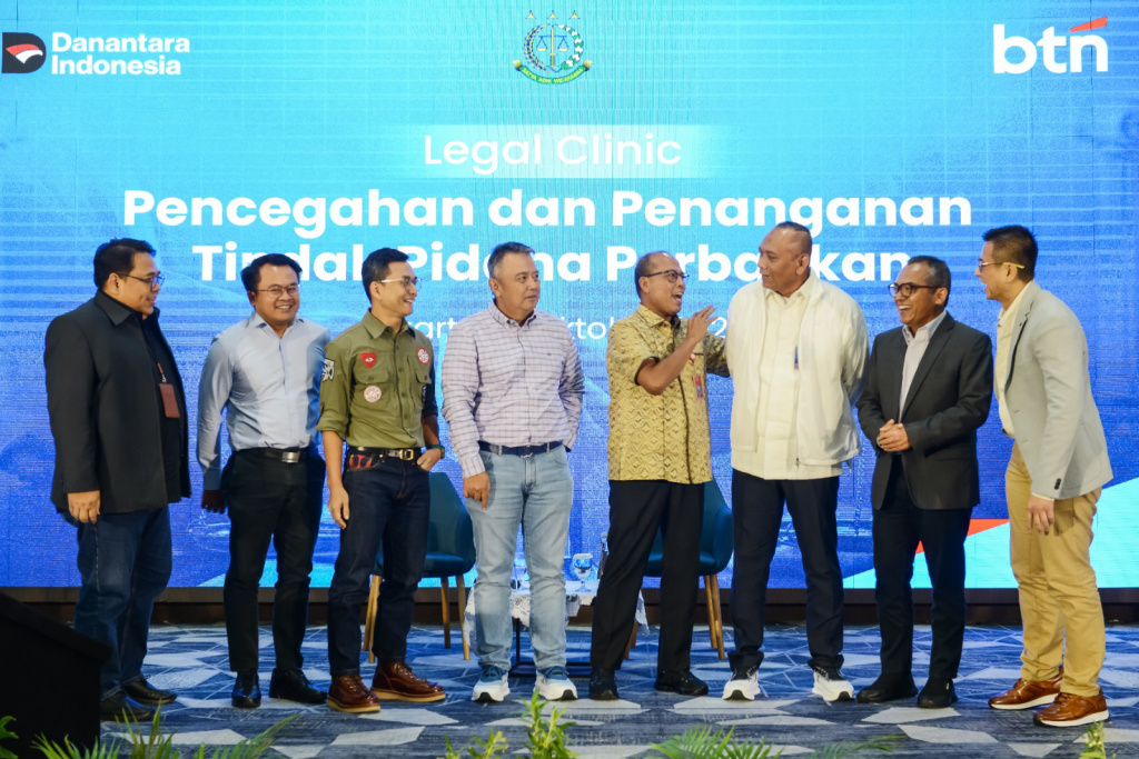 Komisaris Independen BTN Pietra Machreza Paloh, Wakil Direktur Utama PT Bank Tabungan Negara (Persero) Tbk Oni Febriarto Rahardjo, Direktur D pada Jaksa Agung Muda Tindak Pidana Umum Kejaksaan Agung RI, Sugeng Riyanta serta Direktur Human Capital & Compliance BTN, Eko Waluyo foto bersama saat acara Legal Clinic bertajuk “Pencegahan dan Penanganan Tindak Pidana Perbankan” di Menara BTN, Jakarta, Jumat (17/10).