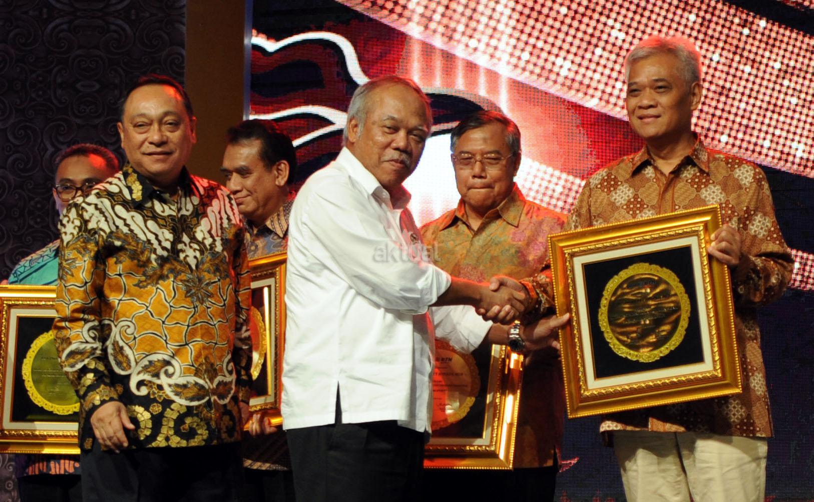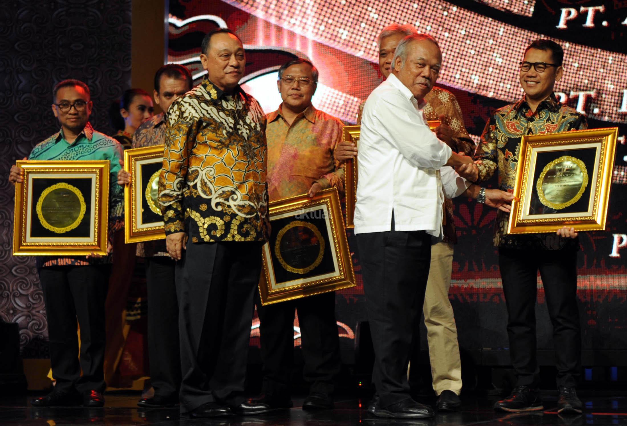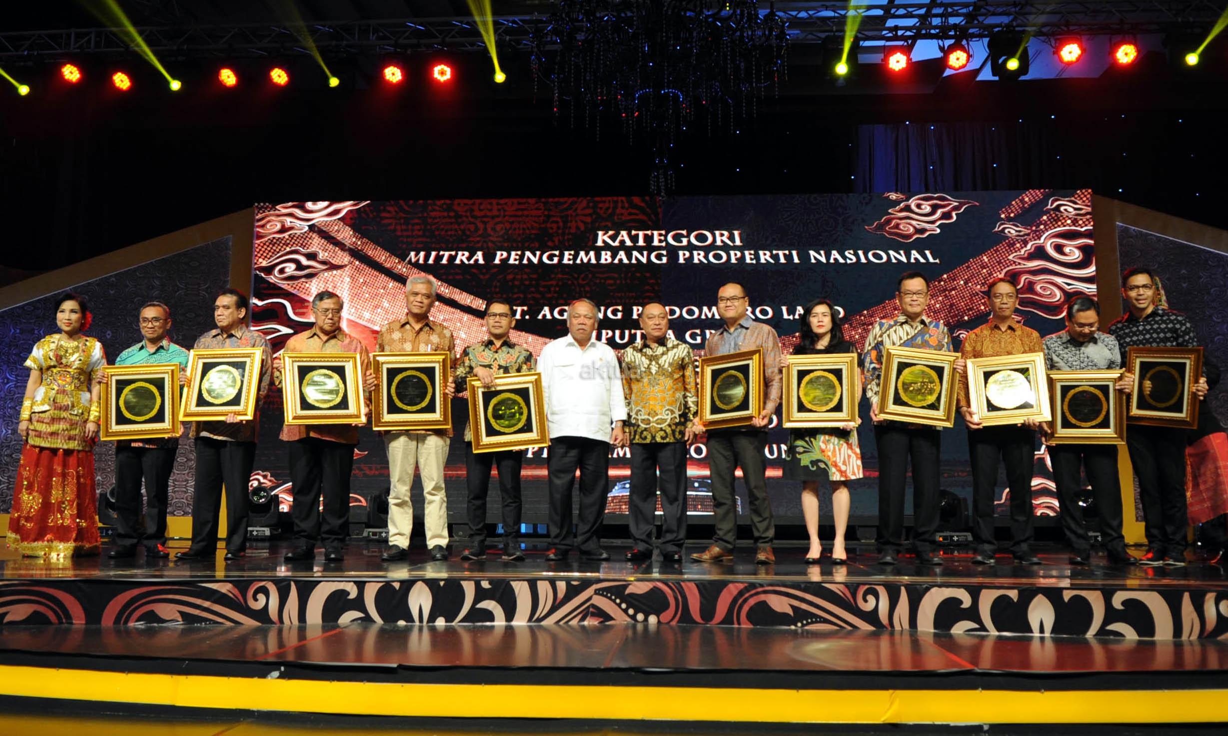 Direktur Utama PT Bank Tabungan Negara (Persero) Tbk Maryono bersama Menteri Pekerjaan Umum dan Perumahan Rakyat Basuki Hadimuljono menyerahkan piagam penghargaan kepada para pemenang kategori Mitra Pengembang BUMN Properti Nasional dan Kemitraan Utama Nasional di ajang BTN Property Award 2018 di Jakarta, Rabu (15/8/2018) malam. BTN Property Award 2018 merupakan ajang apresiasi bagi para pelaku bisnis properti di Indonesia dan mitra kerja sehingga dapat terus bersinergi bersama Bank BTN terutama dalam rangka mendukung Program Satu Juta Rumah. AKTUAL/Eko S Hilman
