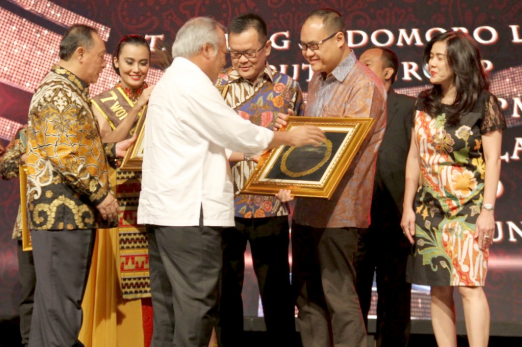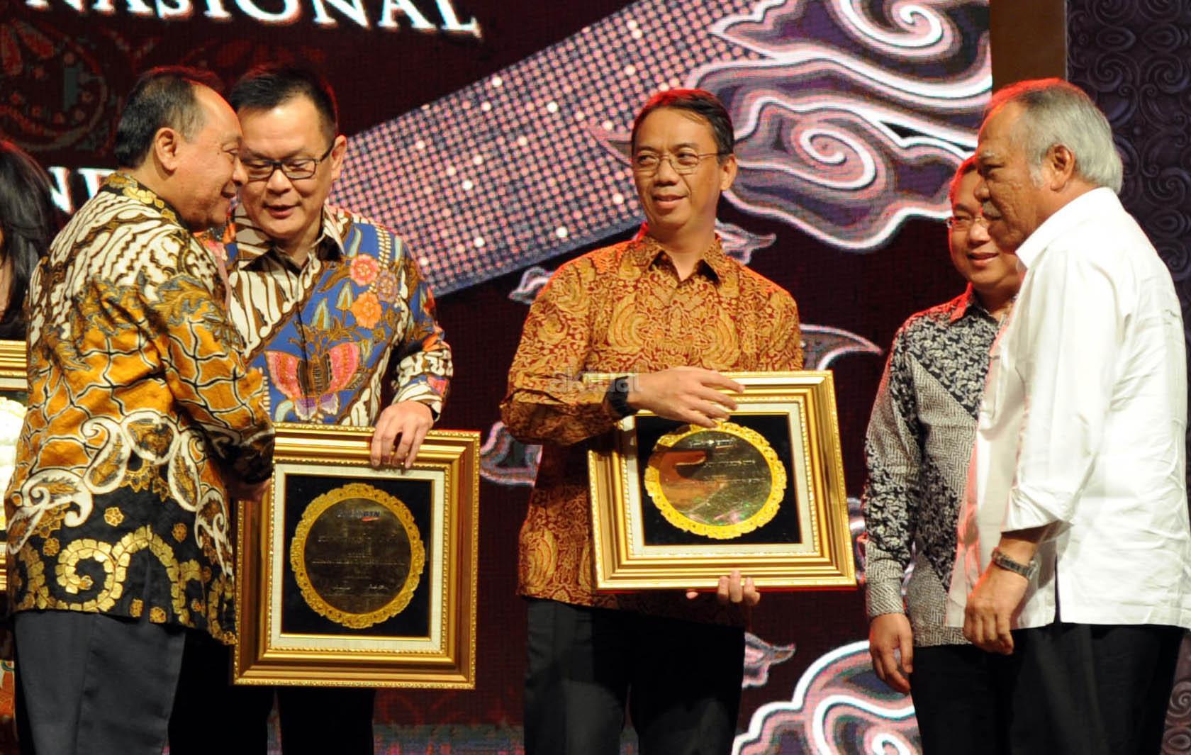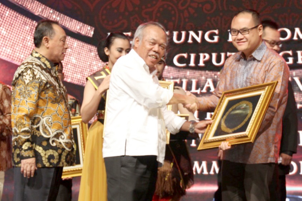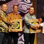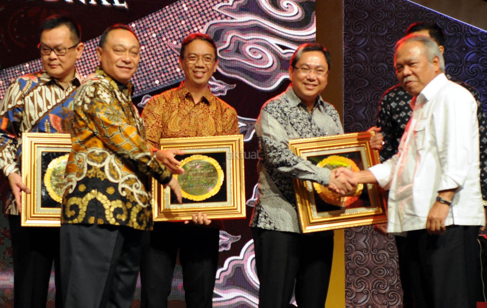 Direktur Utama PT Bank Tabungan Negara (Persero) Tbk Maryono bersama Menteri Pekerjaan Umum dan Perumahan Rakyat Basuki Hadimuljono menyerahkan piagam penghargaan kepada para pemenang kategori Mitra Pengembang BUMN Properti Nasional dan Kemitraan Utama Nasional di ajang BTN Property Award 2018 di Jakarta, Rabu (15/8/2018) malam. BTN Property Award 2018 merupakan ajang apresiasi bagi para pelaku bisnis properti di Indonesia dan mitra kerja sehingga dapat terus bersinergi bersama Bank BTN terutama dalam rangka mendukung Program Satu Juta Rumah. AKTUAL/Eko S Hilman