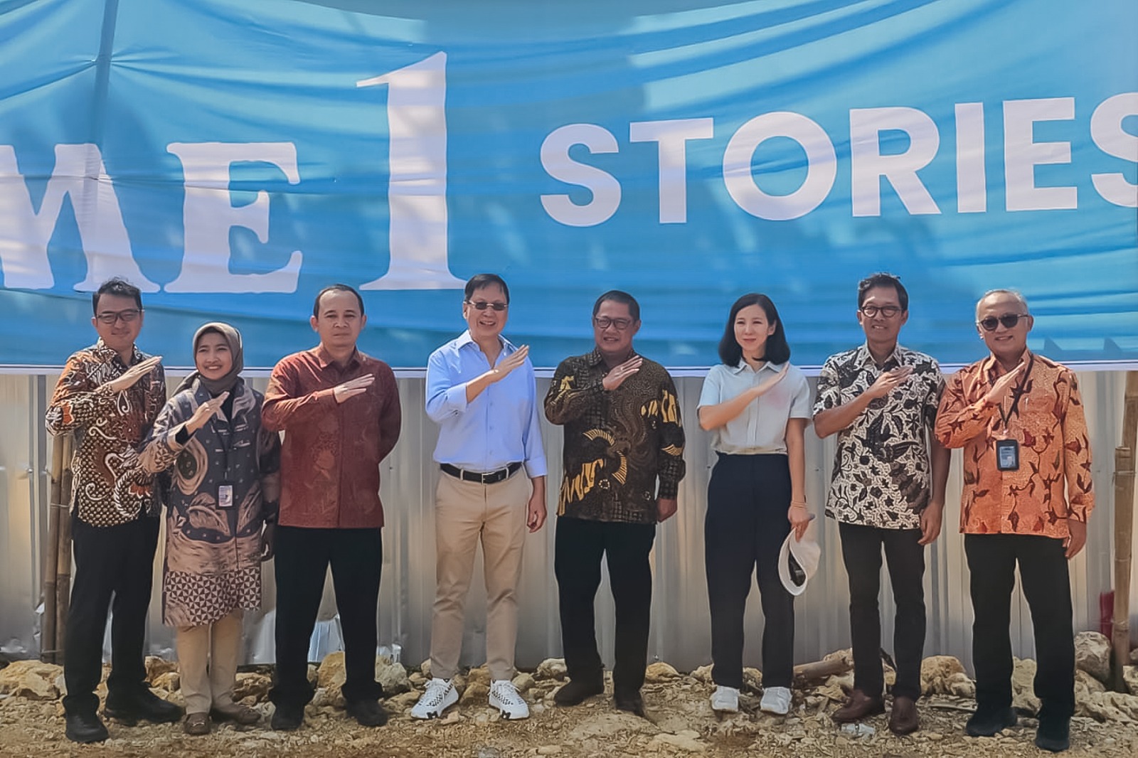 Direktur Utama Bank Syariah Nasional (BSN) Alex Sofyan Noor, ESVP BSN Maqin U. Norhadi dan Branch Manager BTN Syariah Pasar Minggu Harsanty meninjau pelaksanaan akad massal pembiayaan 80 unit rumah bagi masyarakat di perumahan Home 1, Cikeas, Bogor, Rabu (22/10).