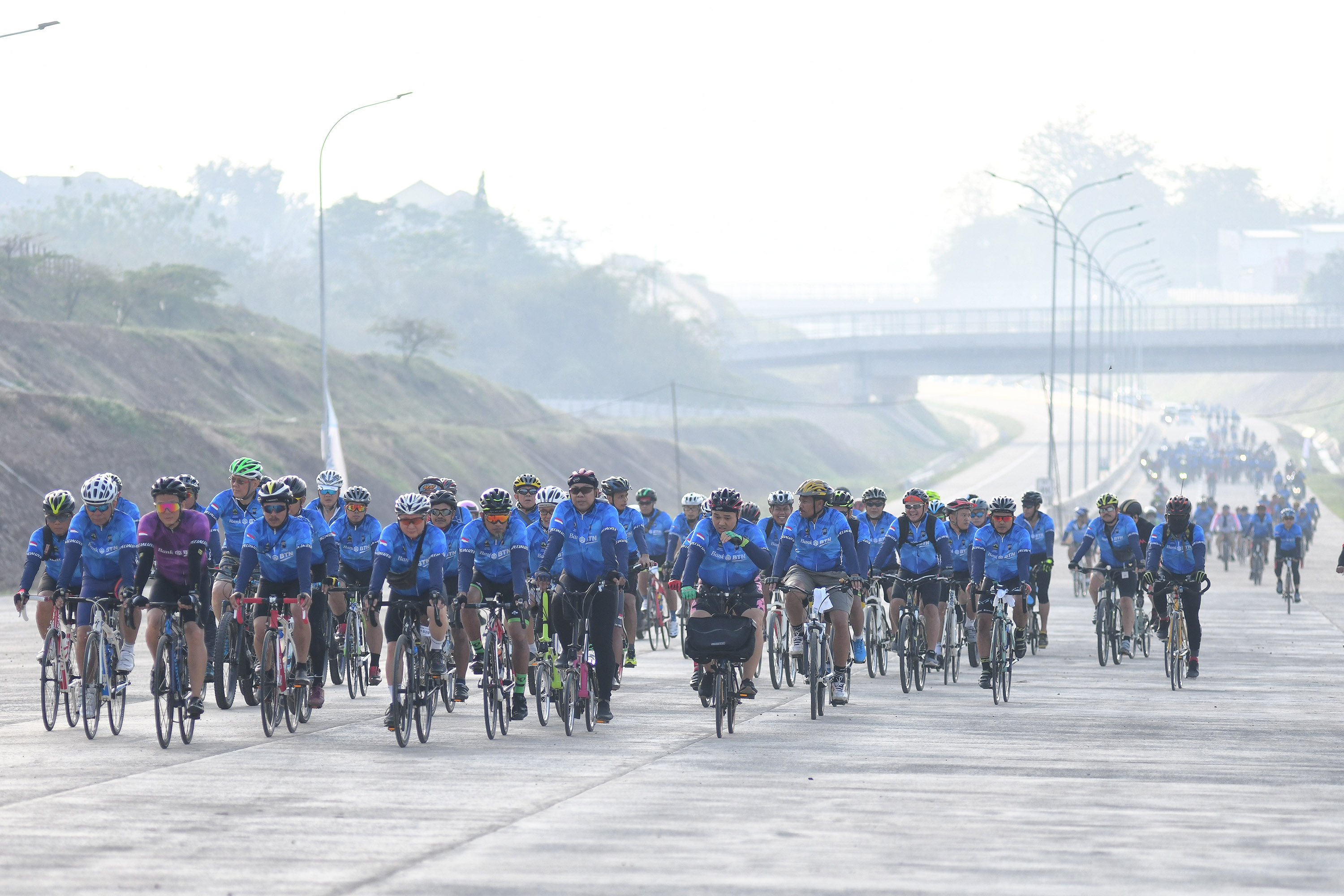 2.000 pesepeda yang ikut serta dalam memeriahkan BTN Tour de Borobudur 2018 di halaman Balai Kota Semarang, Sabtu (3/11). Beberapa pesepeda dari Jerman, Jepang, Australia, Belanda, dan Prancis tampak turut mengayuh sepedanya yang akan mengambil rute sejauh 200 KM dari kota Semarang dan dijadwalkan berakhir di candi Borobudur pada Minggu 4/11. BTN Tour de Borobudur 2018 juga diwarnai kegiatan sosial penanaman 10.000 pohon trembesi di sepanjang jalan tol Bawean yang menghubungkan Kabupaten Batang dan Kabupaten Kendal sepanjang 75 KM. AKTUAL/POOL