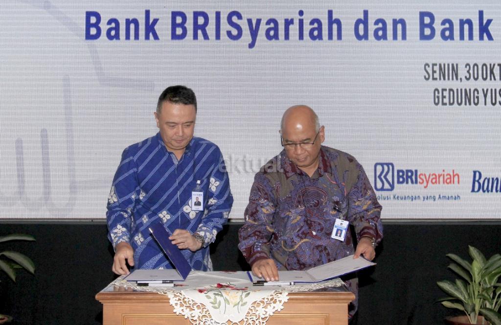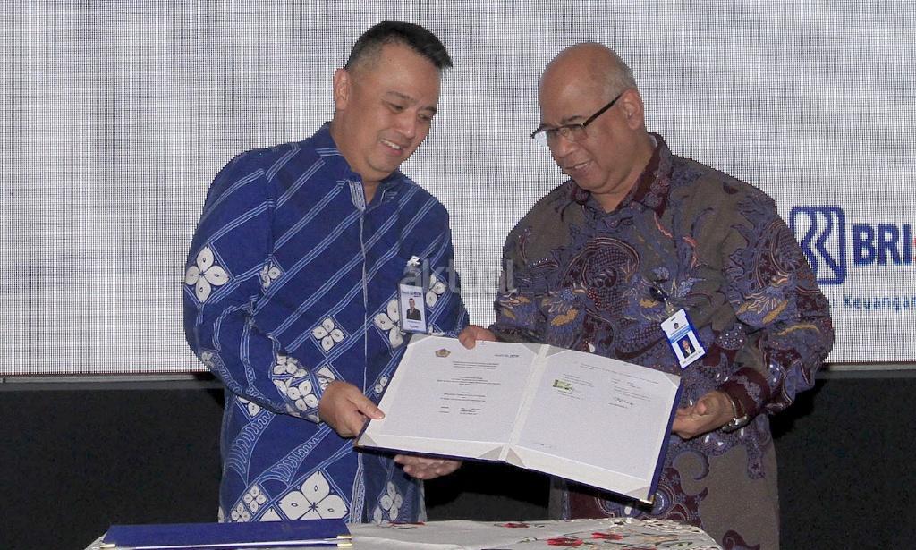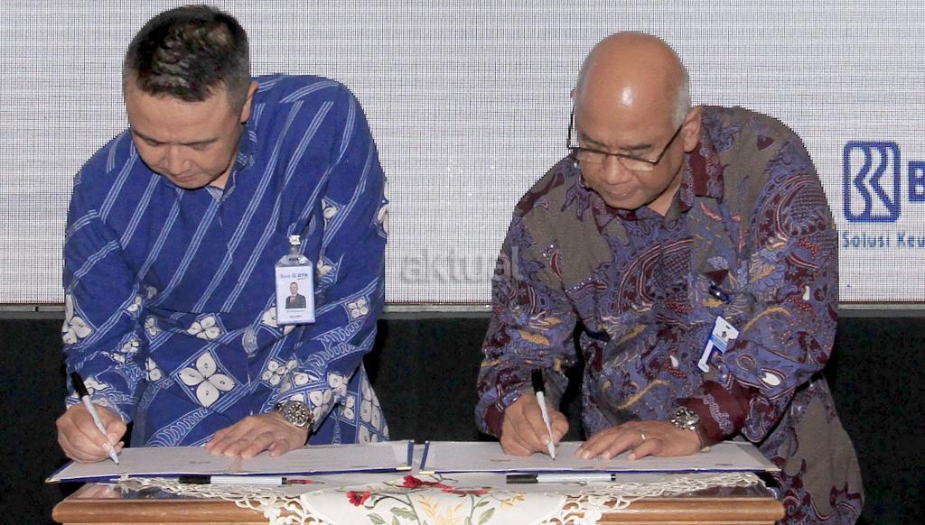 Managing Director Commercial Banking PT Bank Tabungan Negara (Persero) Tbk Oni Febriarto R (kiri) dan Direktur Direktorat Pengelolaan Kas Negara Dirjen Perbendaharaan Kementerian Keuangan Rudy Widodo saat menandatangani Perjanjian Kerja Sama di Jakarta, Senin (30/10). Melalui kerja sama tersebut, Bank BTN bersama bank-bank umum lainnya berpartisipasi dalam uji coba transfer data rekening milik satuan kerja lingkup kementerian negara atau lembaga. Adapun, kerja sama tersebut merupakan bagian untuk mewujudkan era transparansi dan keterbukaan informasi keuangan untuk tujuan perpajakan. AKTUAL/Eko S Hilman