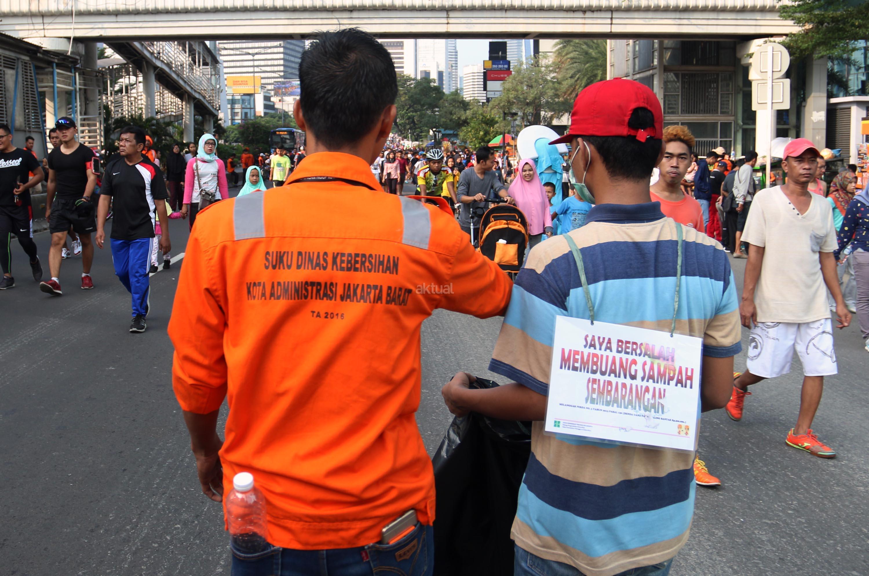 Buang Sampah Sembarangan, Pengunjung Ini Dihukum Bersih-bersih di CFD