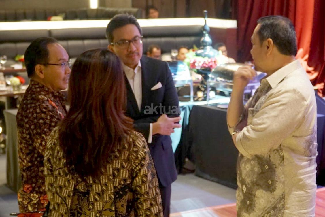 Presiden Direktur CIMB Niaga Tigor M. Siahaan (tengah) berbincang dengan beberapa pimpinan media usai acara penyerahan donasi Dana Kebajikan CIMB Niaga Syariah sebesar Rp200 juta kepada Direktur Utama PPPA Daarul Qur’an M. Anwar Sani (kedua kanan) di sela Buka Puasa Bersama Pimpinan Media di Jakarta, Selasa (22/5/2018). Donasi akan disalurkan untuk pembangunan Masjid Kampung Qur’an Oe Ue, Nusa Tenggara Timur. AKTUAL/Eko S Hilman