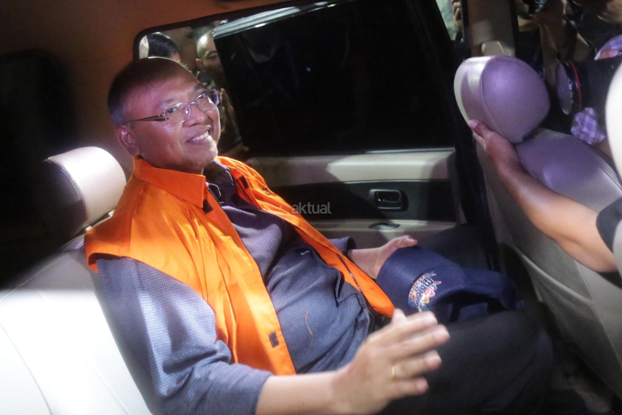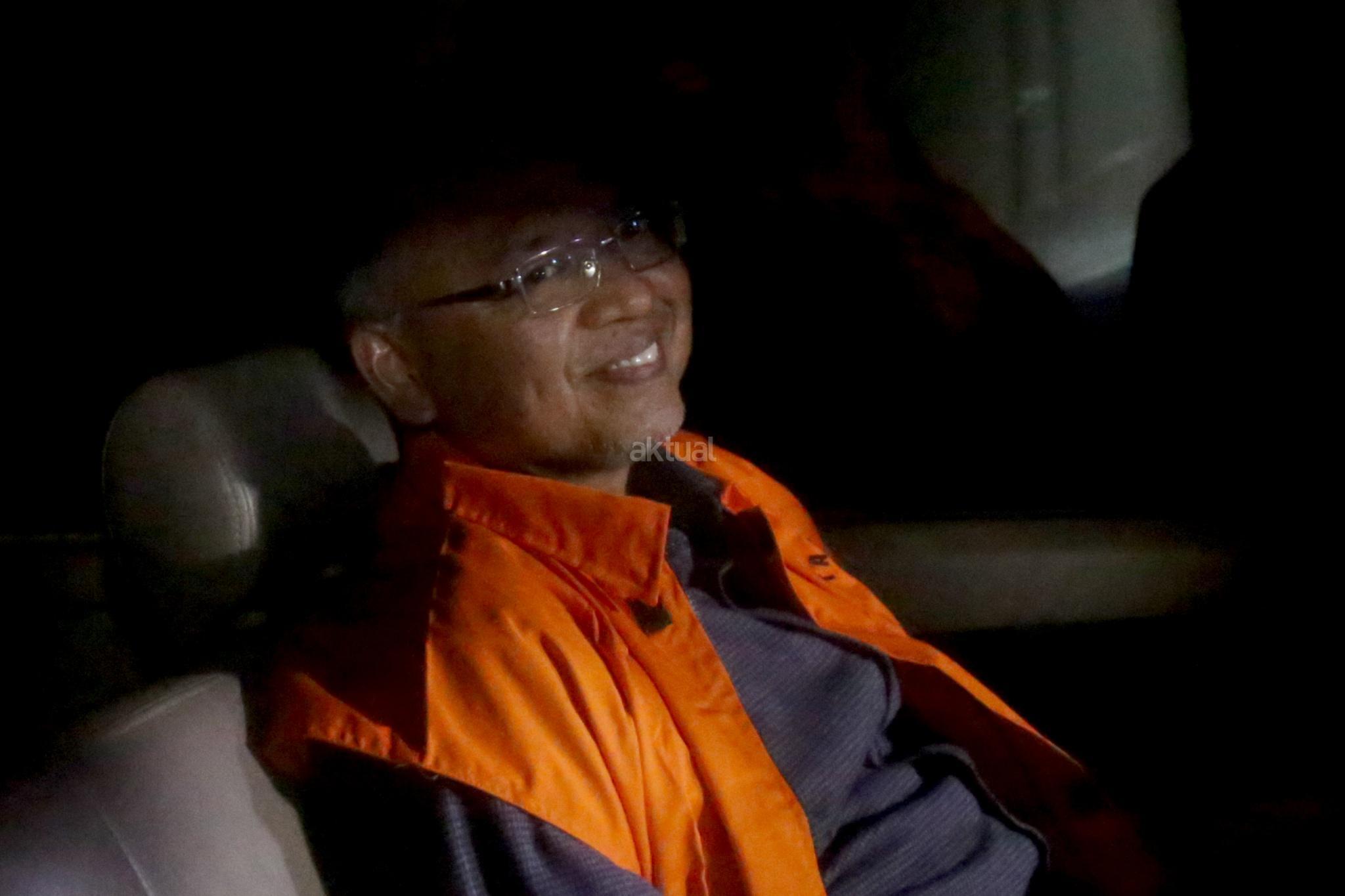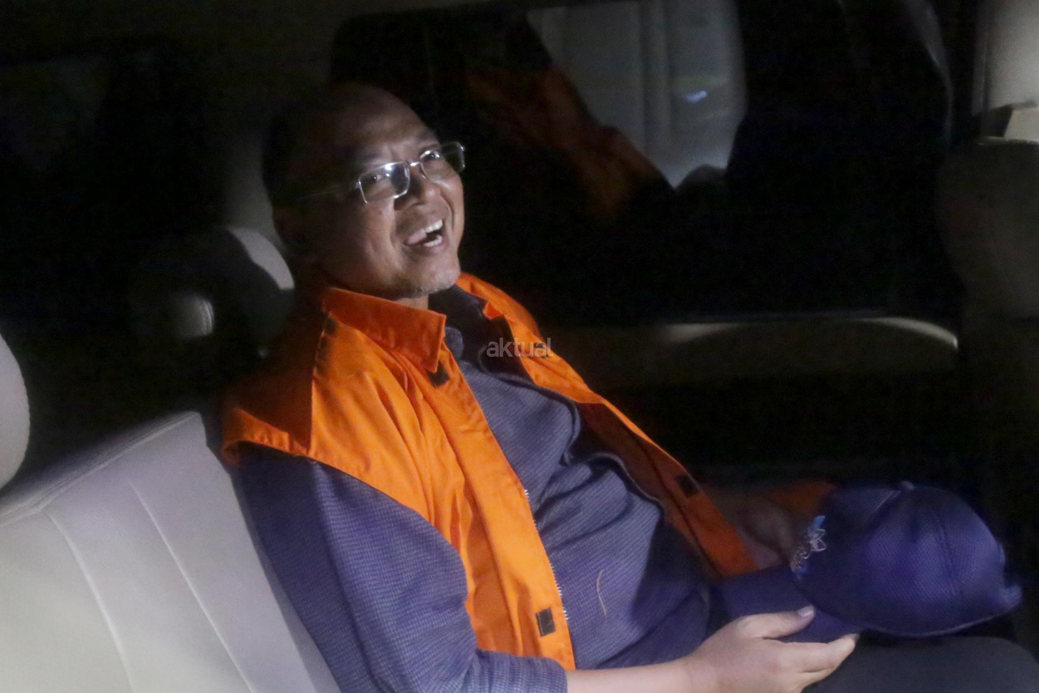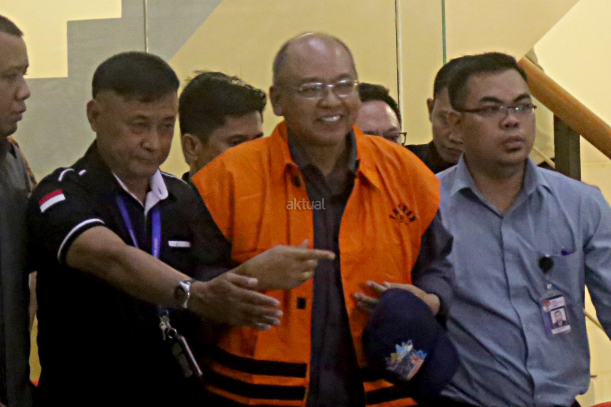 Bupati Malang Rendra Kresna mengenakan rompi oranye dikawal petugas usai diperiksa Komisi Pemberantasan Korupsi (KPK), Jakarta, Senin (15/10/2018). Rendra ditahan setelah diduga menerima suap terkait penyediaan sarana Dinas Pendidikan Pemerintah Kabupaten Malang sebesar Rp 3,45 miliar. AKTUAL/Tino Oktaviano