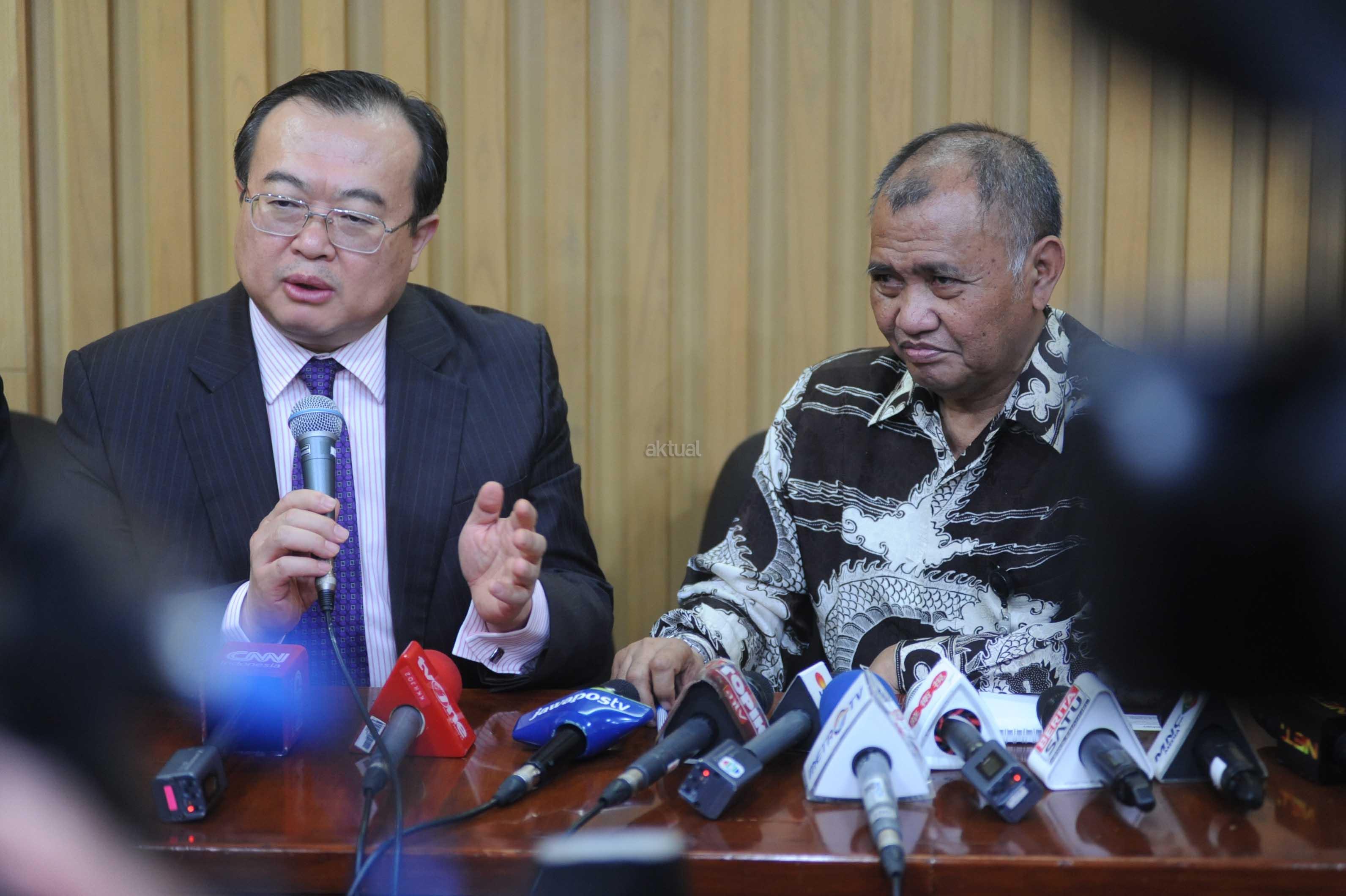 Ketua KPK Agus Rahardjo (kanan) bersama Wakil Ketua National Bureau of Corruption Prevention (NBCP) Liu Jianchao memberikan keterangan pers usai melakukan pertemuan di Gedung KPK, Jakarta, Senin (19/6/2016). Pertemuan tersebut membahas rencana kerjasama anti korupsi antar kedua negara terutama kerjasama mengembalikan koruptor Indonesia yang ada China berserta aset nya yang ada di China begitu juga sebaliknya Koruptor yang China yang ada di Indonesia. Aktual/Tino Oktaviano