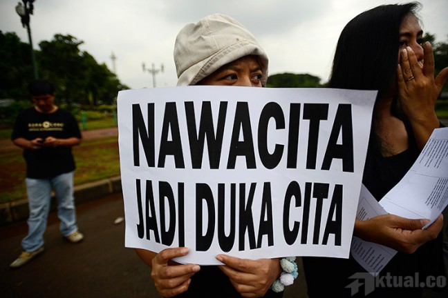 “Buruh mendesak Jokowi untuk membatalkan semua rencana pinjaman lunak maupun pinjaman dalam bentuk proyek dari IMF, ADB dan Bank Dunia sesuai pidatonya pada konfrensi Asia Afrika yang mengatakan bahwa persoalan ekonomi dunia hanya bisa diselesaikan Bank Dunia, IMF dan ADB adalah pandangan yang usang yang perlu dibuang,” paparnya.