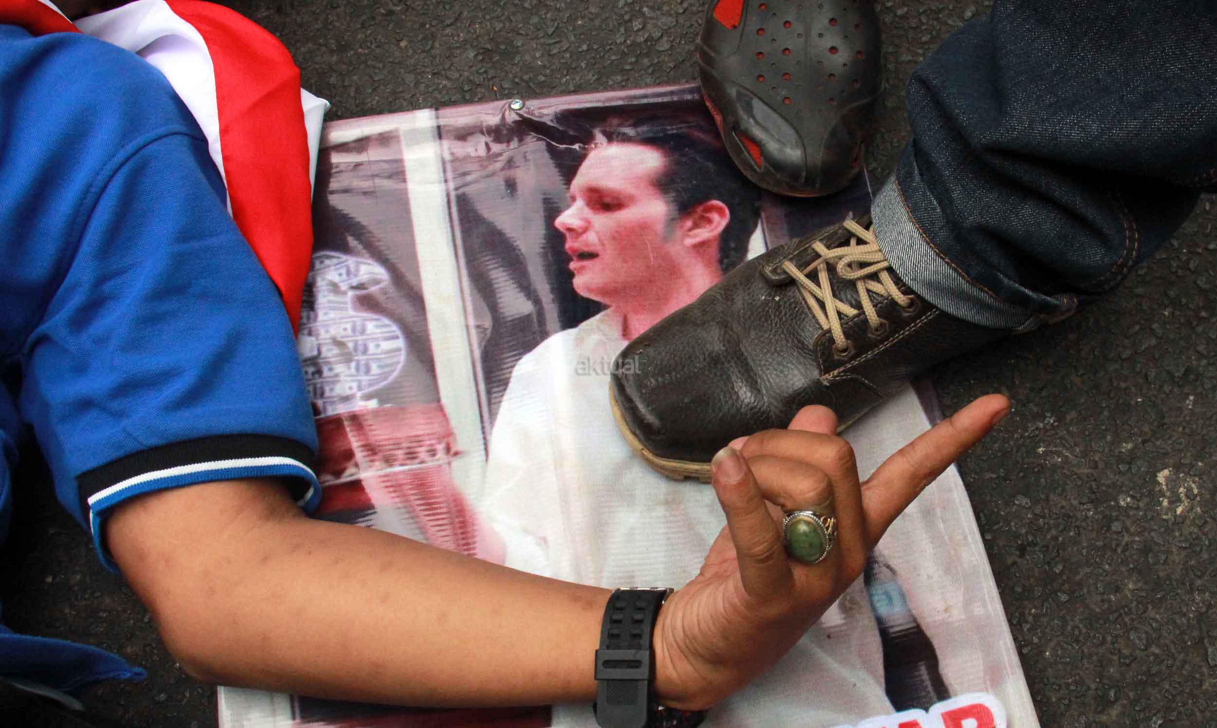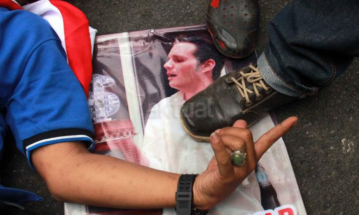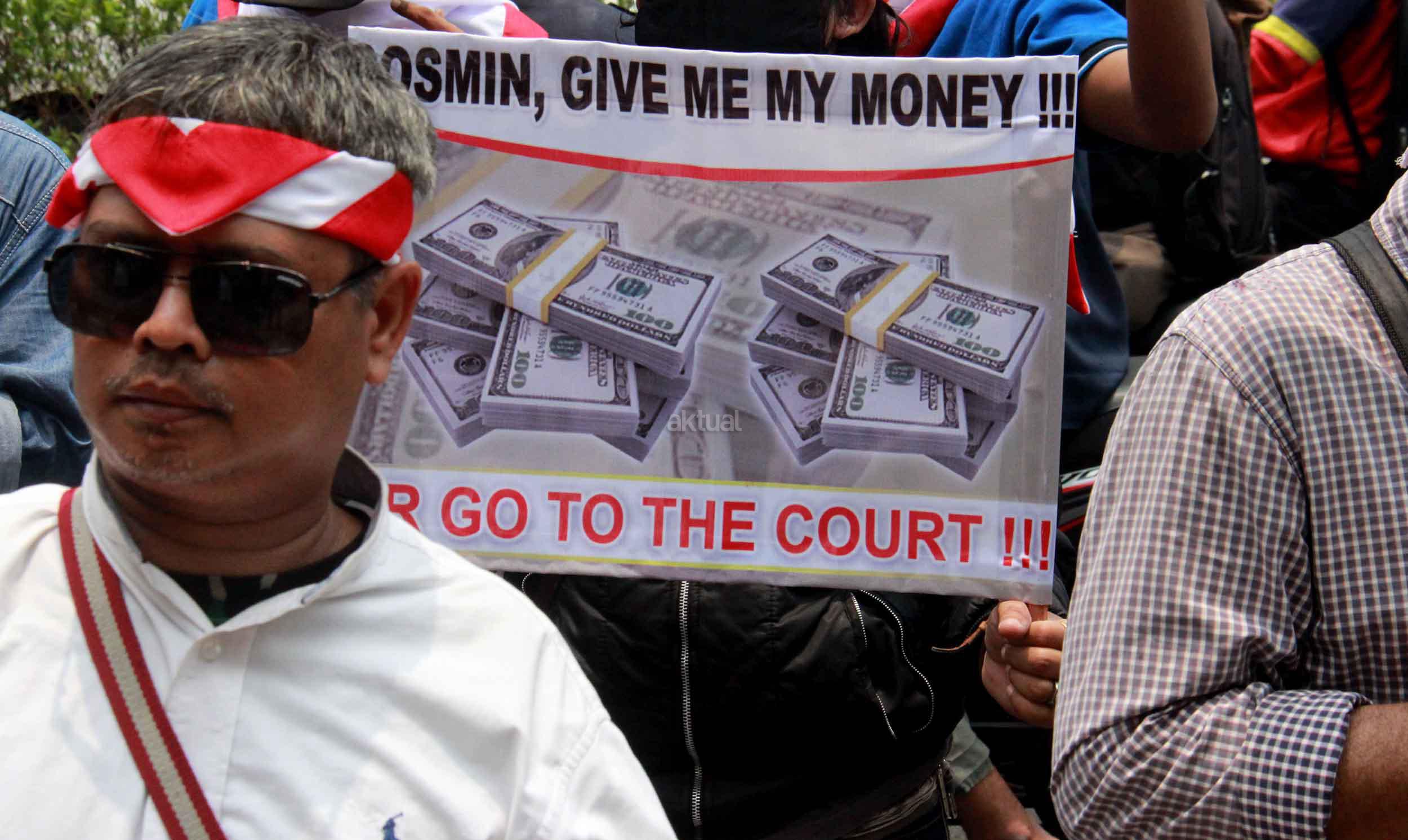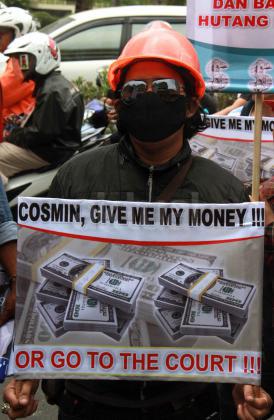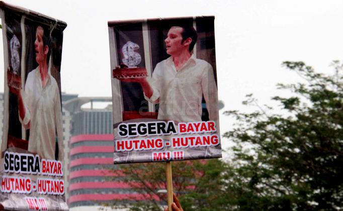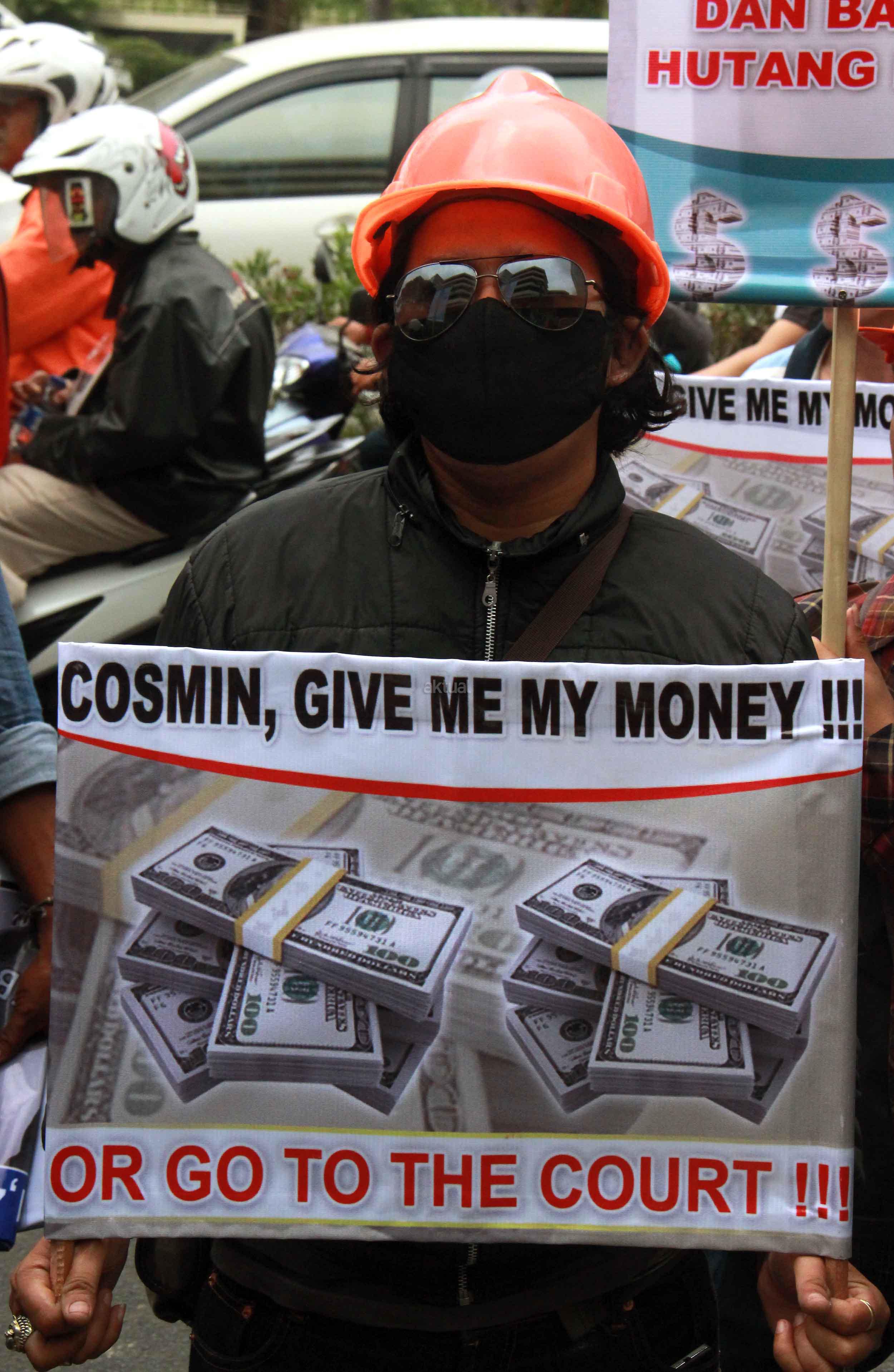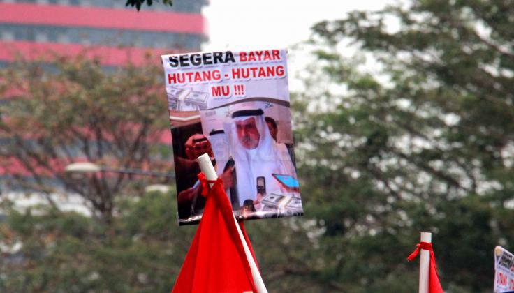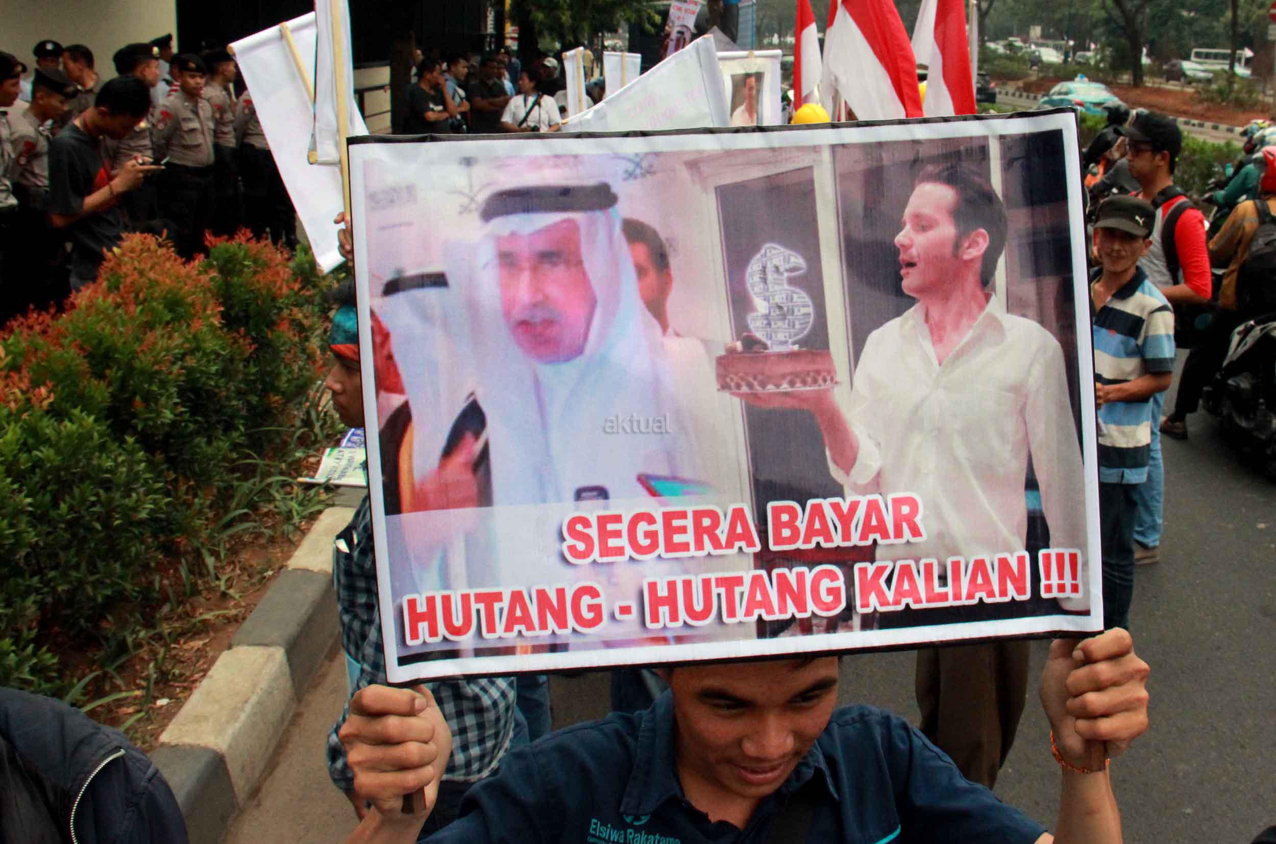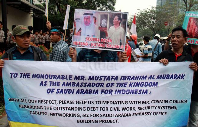 Dalam aksinya para pengunjuk rasa menuntut pihak Kedubes Arab Saudi membayarkan sisa pengerjaan bangunan Kedubes yang hingga kini belum dibayarkan.