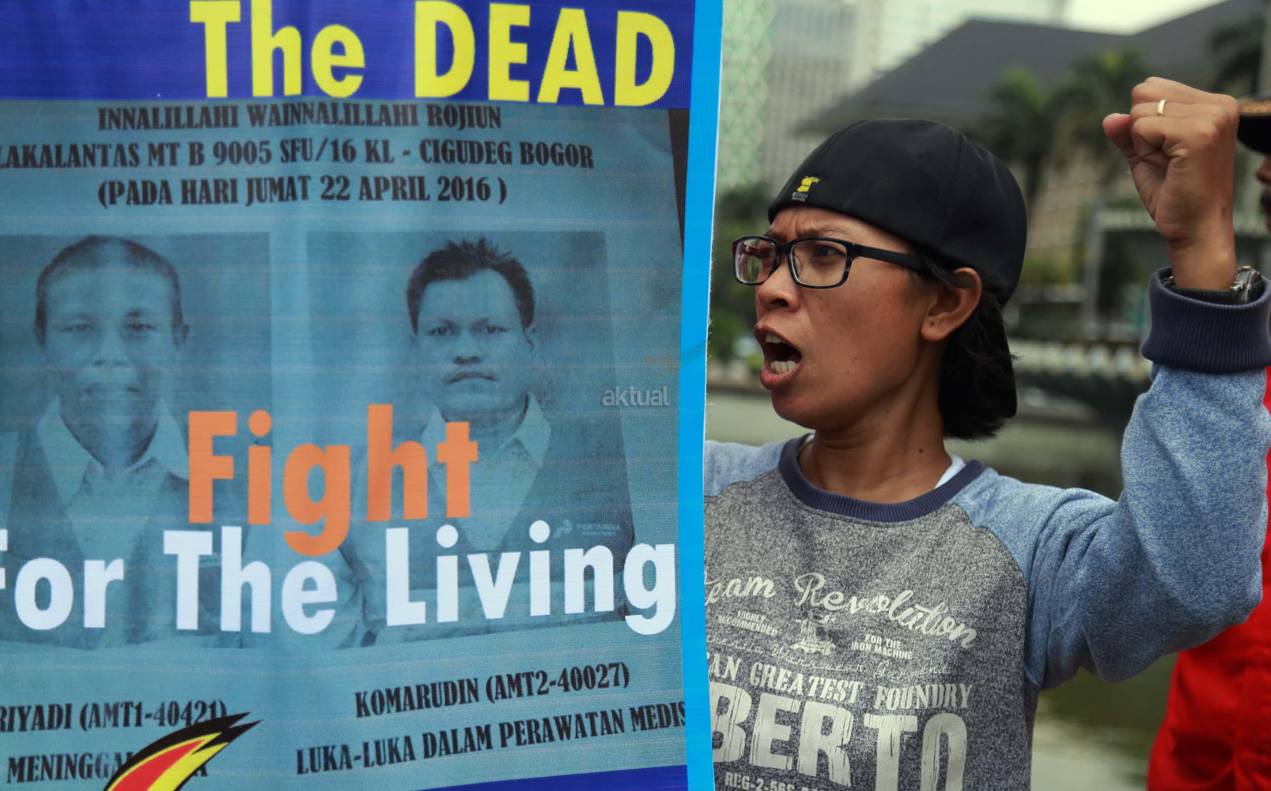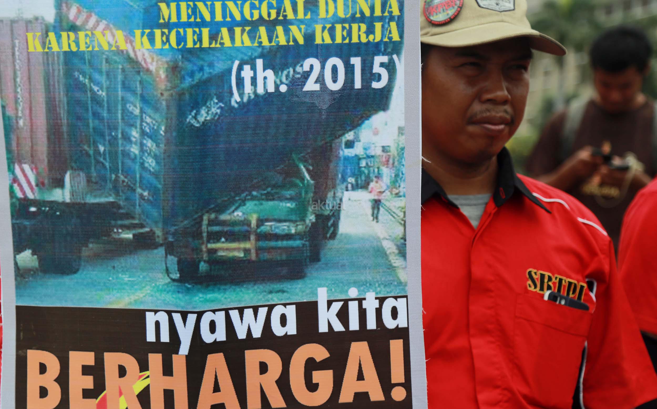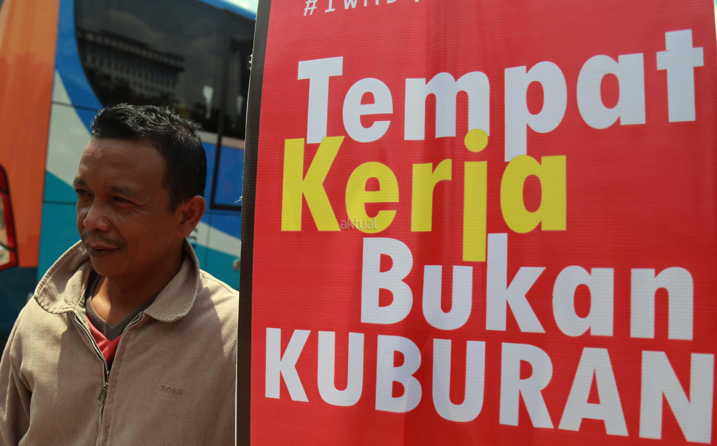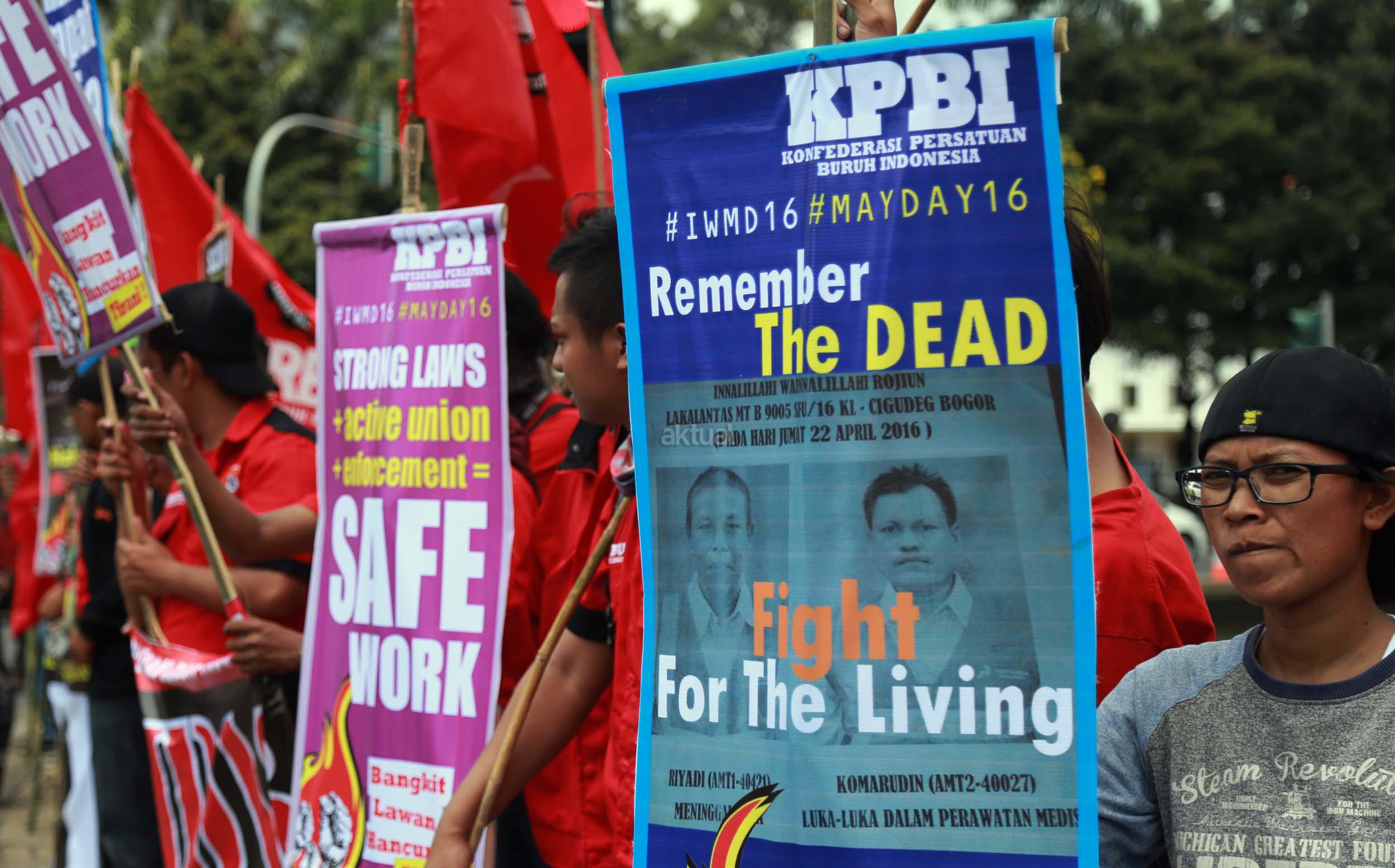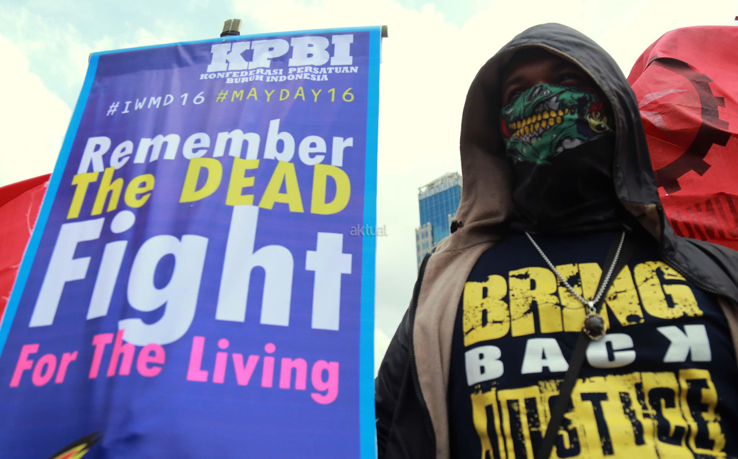 Dalam aksinya para buruh memperingati International Workers' Memorial Day (Peringatan Terhadap Kematian Pekerja) yang jatuh pada tanggal 28 April.