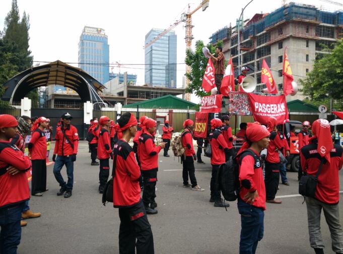 Jakarta, Aktual.com — Konfederasi Serikat Nasional (KSN) menyampaikan 10 tuntutan dalam aksinya di depan Kedutaan Besar Amerika Serikat, Jakarta, Minggu (1/5). Kedubes AS menjadi titik awal aksi karena KSN menilai dari kantor itulah kapitalisme asing masuk ke Indonesia dan menguras kekayaan sumber daya alam di Indonesia.