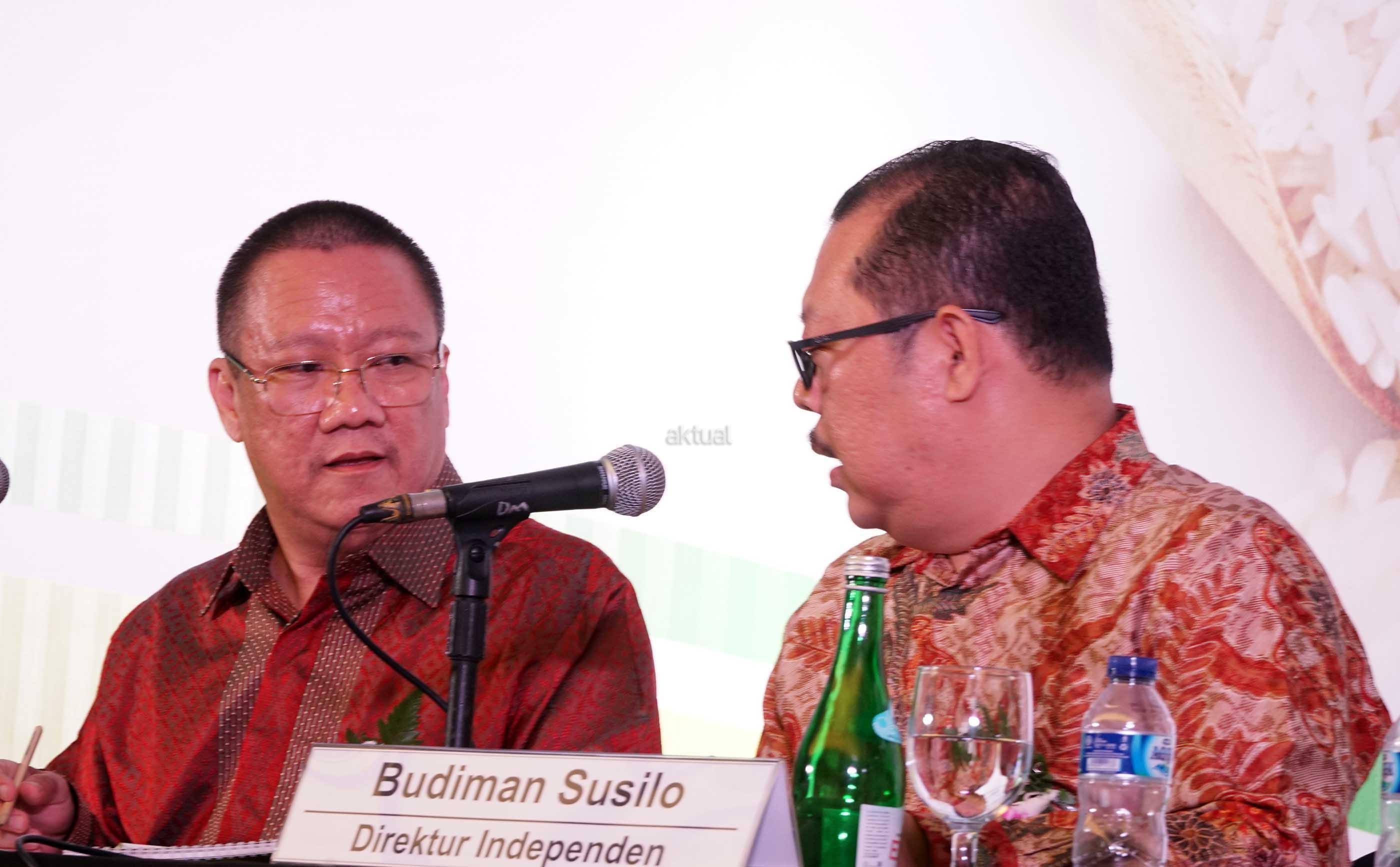Direktur Utama PT Buyung Poetra Sembada (BPS), Sukarto Bujung (kiri) berbincang dengan Direktur Independen, Budiman Susilo saat memberikan keterangan pers seusai penawaran umum perdana saham ke publik di Jakarta, Jumat (26/5). Perusahaan yang memproduksi dan mendistribusi beras dengan merek utama Topi Koki akan mencatatatkan sahamnya pada Juni 2017 mendatang. BPS telah membuktikan pencapaian kinerja fundamental yang baik dengan pencapaian penjualan per 31 Desember 2016 sebesar Rp 1,147 triliun, atau meningkat 74% dari Rp 658 miliar apada akhir tahun 2015. Jumlah saham yang akan ditawarkan sebanyak 700 juta lemvar saham baru yang merupakan saham biasa atas nama, atau sebesar 29,79% dari modal ditempatkan dan disetor setelah penawaran umum saham dengan nilai nominal Rp 100 per saham.Bersamaan dengan itu juga BPS menawarkan sebanyak banyaknya 70 juta Waran Seri I yang menyertai Saham Biasa Atas nama atau sekitar 3% dari Modal ditempatkan dan disetor penuh sehingga akan menambah nilai tambah bagi para investor di masa mendatang. AKTUAL/Eko S Hilman