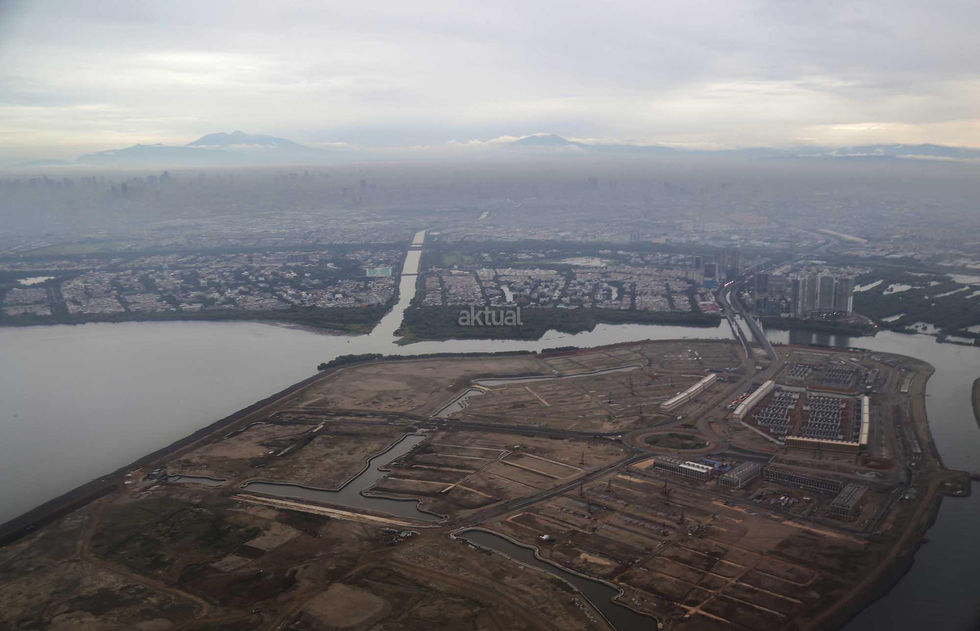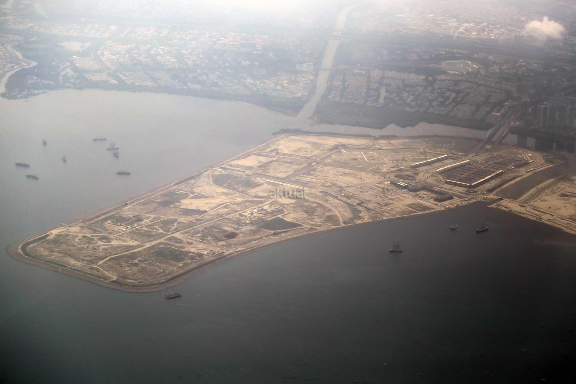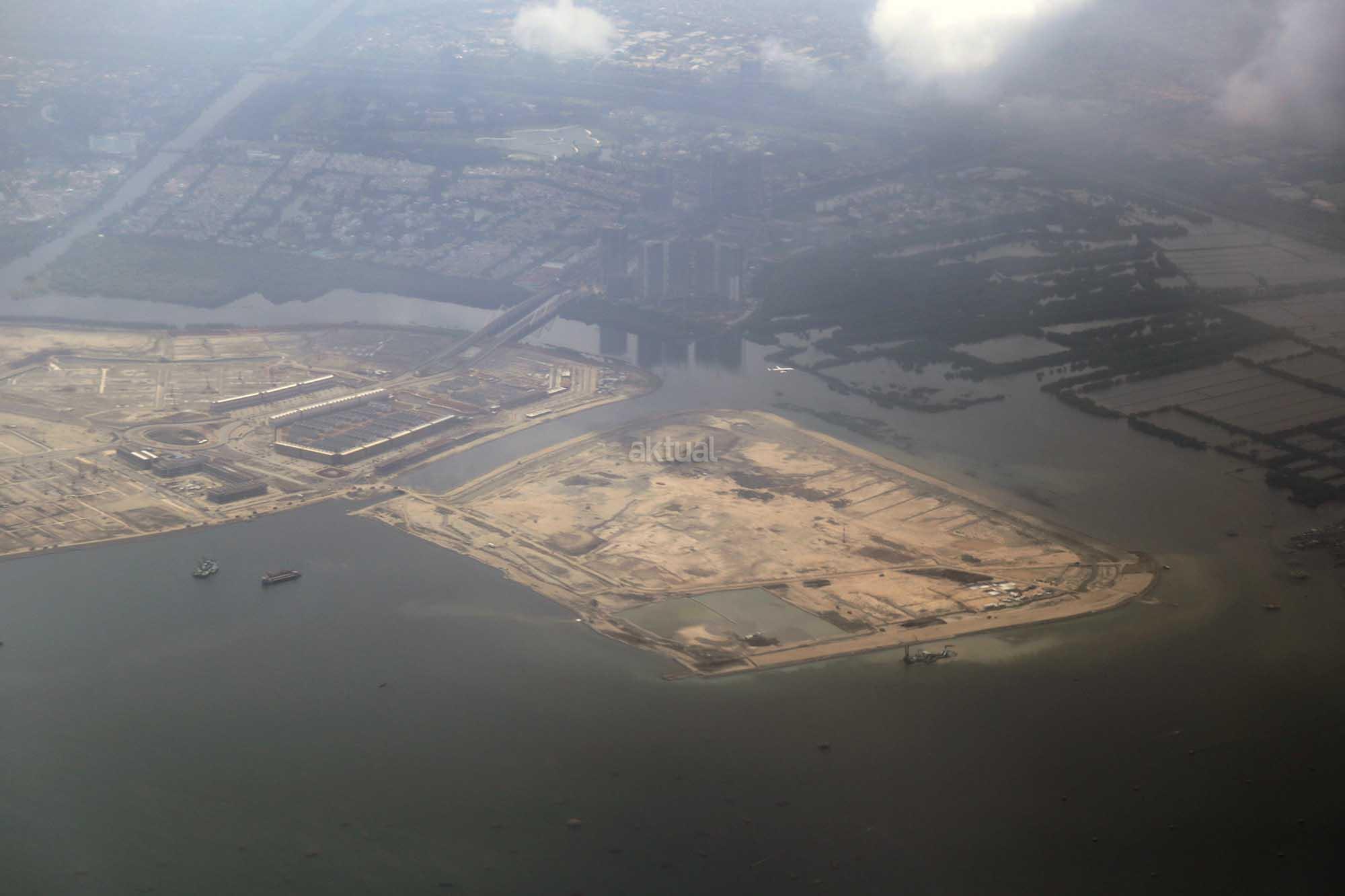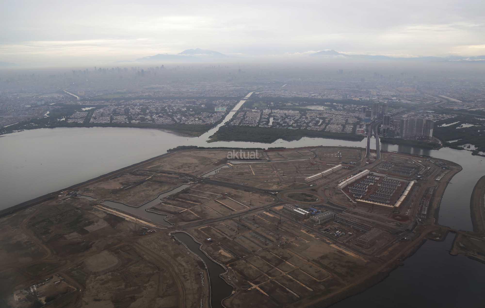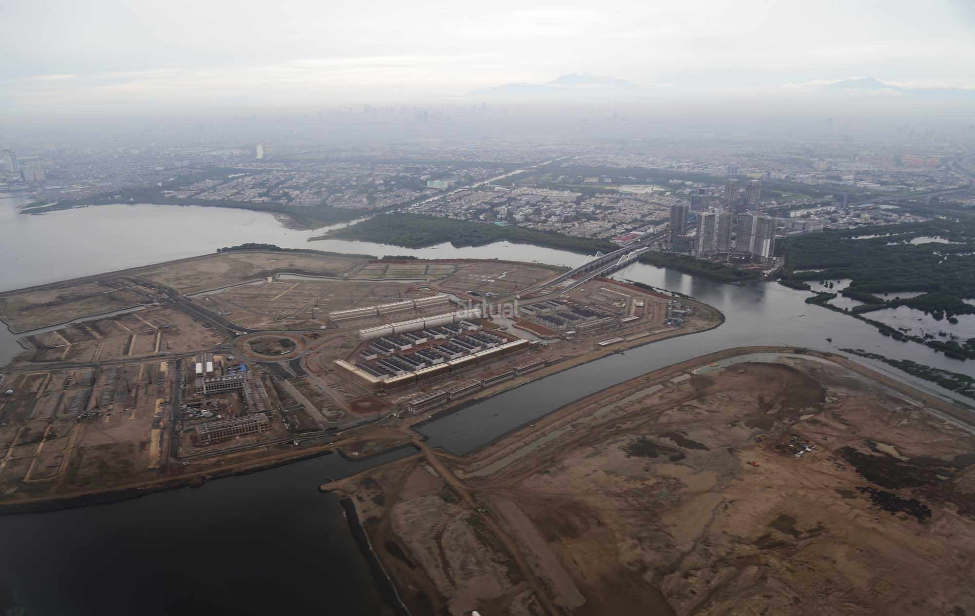 Foto udara kawasan proyek Reklamasi Teluk Jakarta di Pantai Utara, Jakarta, Jumat (8/12/2017). Gubernur DKI Anies Baswedan telah mencabut rancangan peraturan daerah (raperda) tentang Rencana Tata Ruang Kawasan Strategis Pantai Utara Jakarta dari program legislasi daerah (prolegda). Raperda terkait reklamasi Teluk Jakarta ini dinilai sudah tidak relevan dengan perkembangan Ibu Kota di masa mendatang. Raperda terkait reklamasi itu harus memperhatikan banyak aspek, di antaranya faktor sosial ekonomi, geopolitik dan lingkungan hidup. AKTUAL/Tino Oktaviano