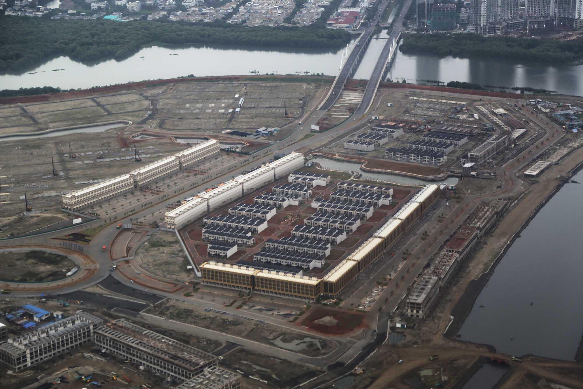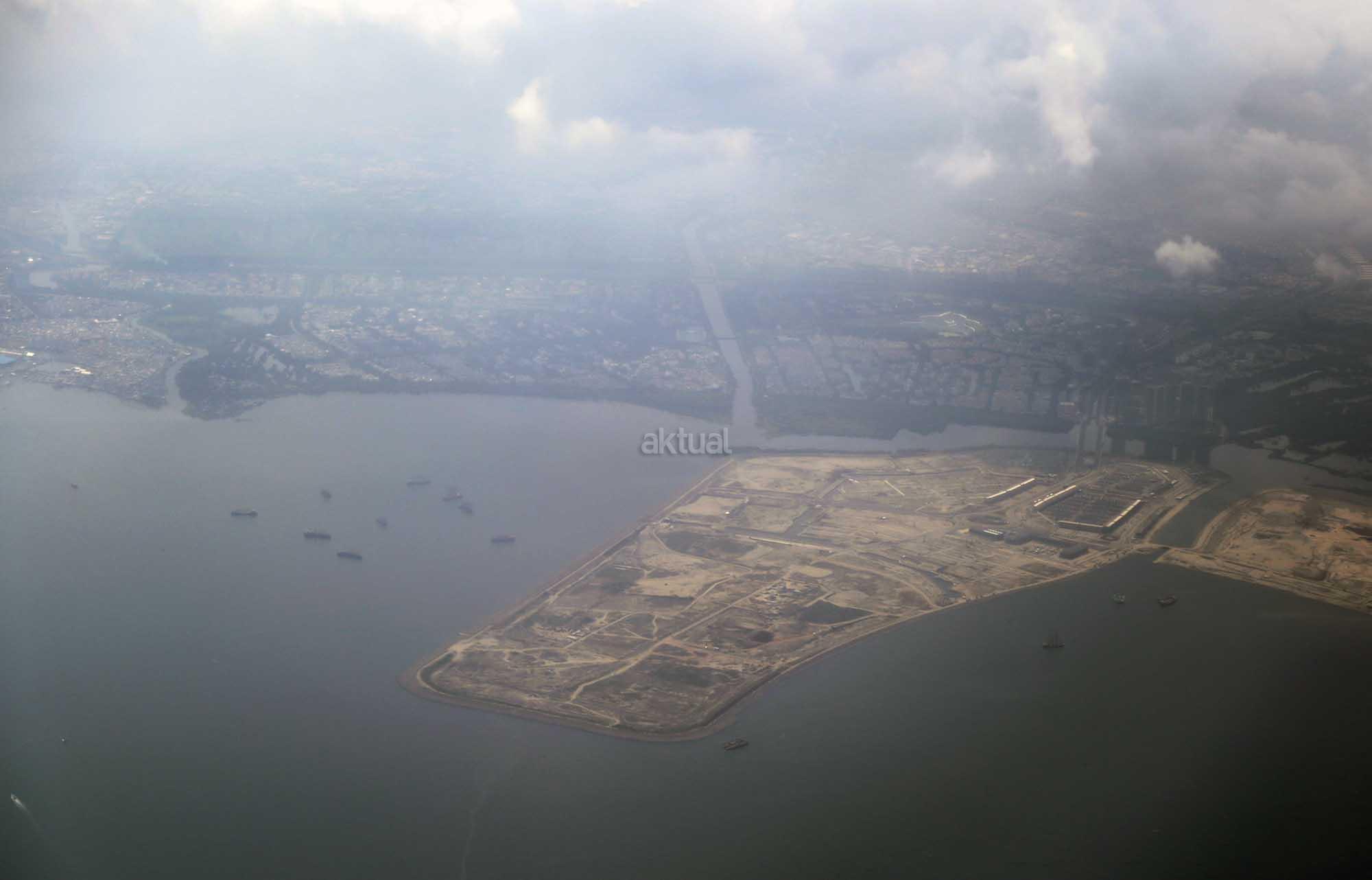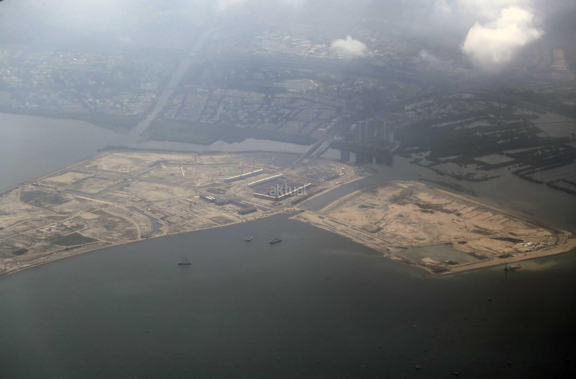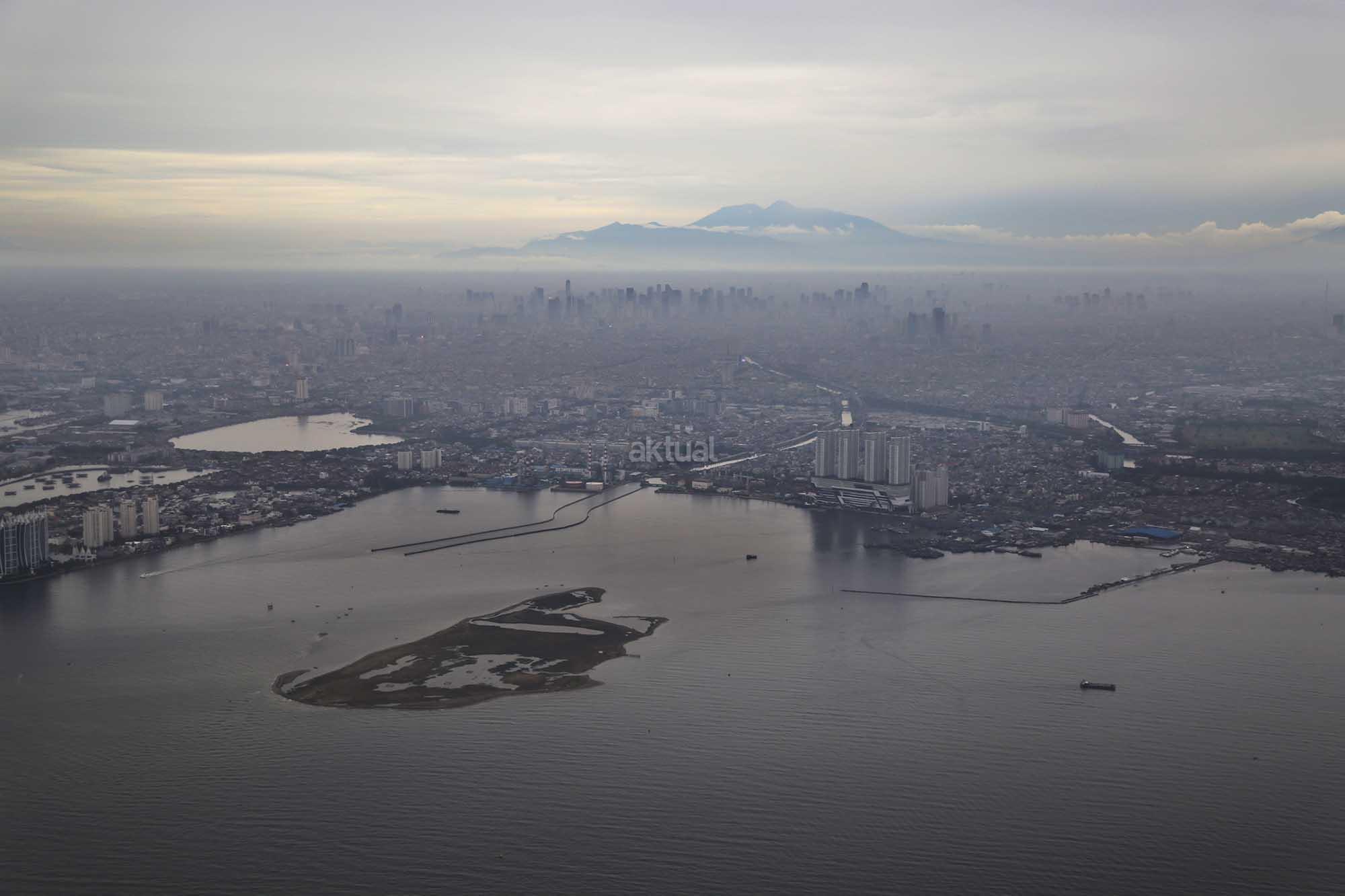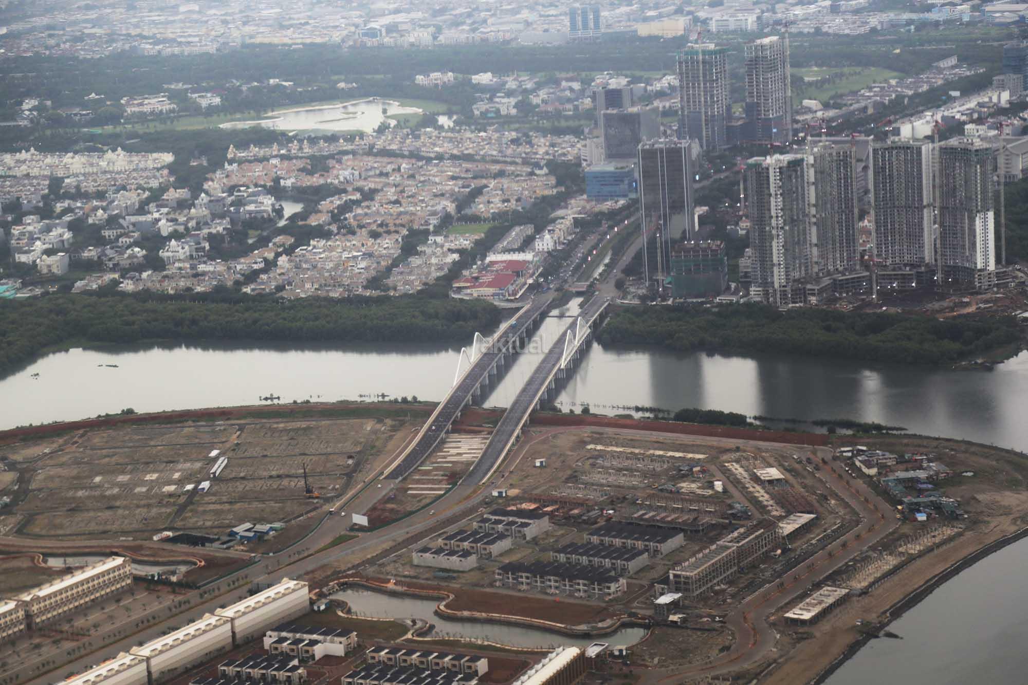 Foto udara kawasan proyek Reklamasi Teluk Jakarta di Pantai Utara, Jakarta, Jumat (8/12/2017). Gubernur DKI Anies Baswedan telah mencabut rancangan peraturan daerah (raperda) tentang Rencana Tata Ruang Kawasan Strategis Pantai Utara Jakarta dari program legislasi daerah (prolegda). Raperda terkait reklamasi Teluk Jakarta ini dinilai sudah tidak relevan dengan perkembangan Ibu Kota di masa mendatang. Raperda terkait reklamasi itu harus memperhatikan banyak aspek, di antaranya faktor sosial ekonomi, geopolitik dan lingkungan hidup. AKTUAL/Tino Oktaviano