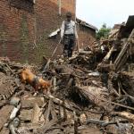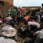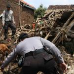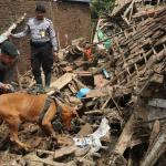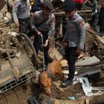 Anjing pelacak K-9 dari Polda Jawa Barat di kerahkan untuk menyisir reruntuhan bangunan rumah akibat banjir bandang di Kampung Bojong Sudika, Cimacan, Garut, Jawa Barat, Jumat (23/9). Hingga saat ini tercatat 23 warga yang hilang akibat kejadian banjir bandang yang menimpa Kota Garut Jawa Barat. Aktual/Tino Oktaviano