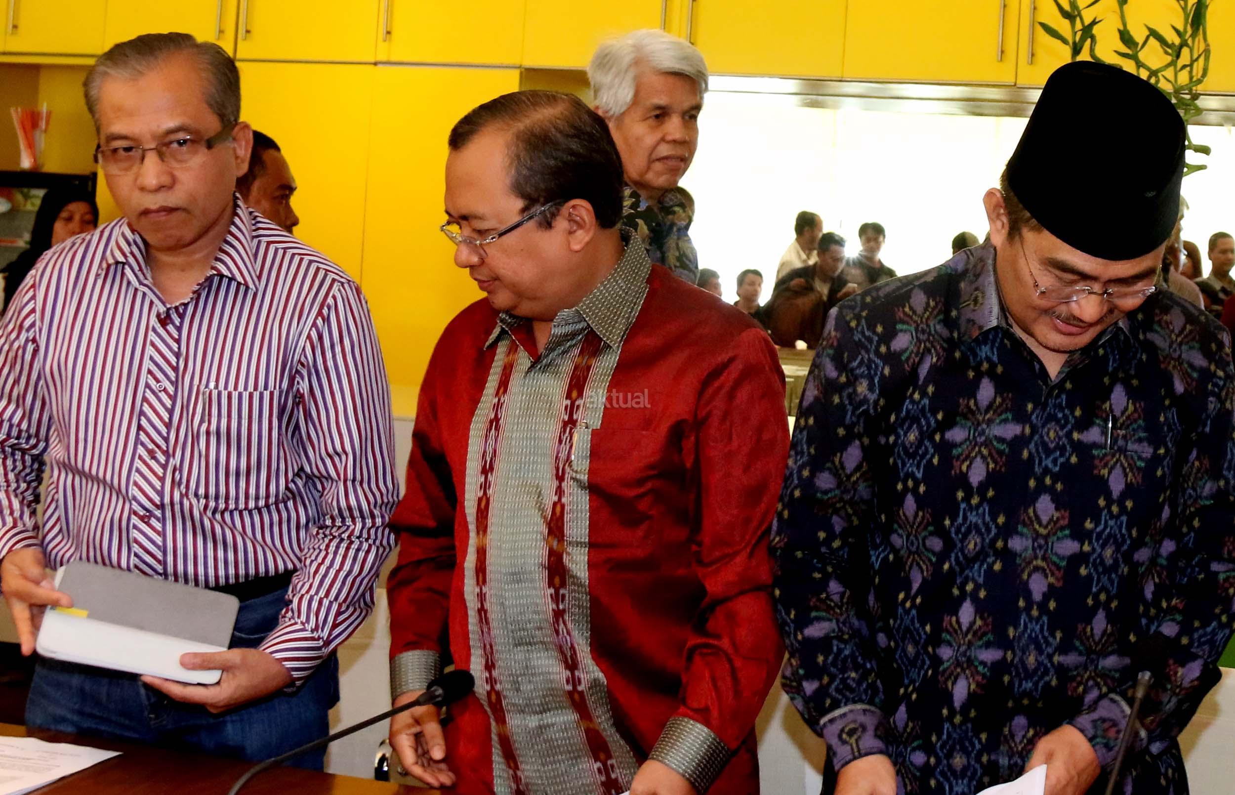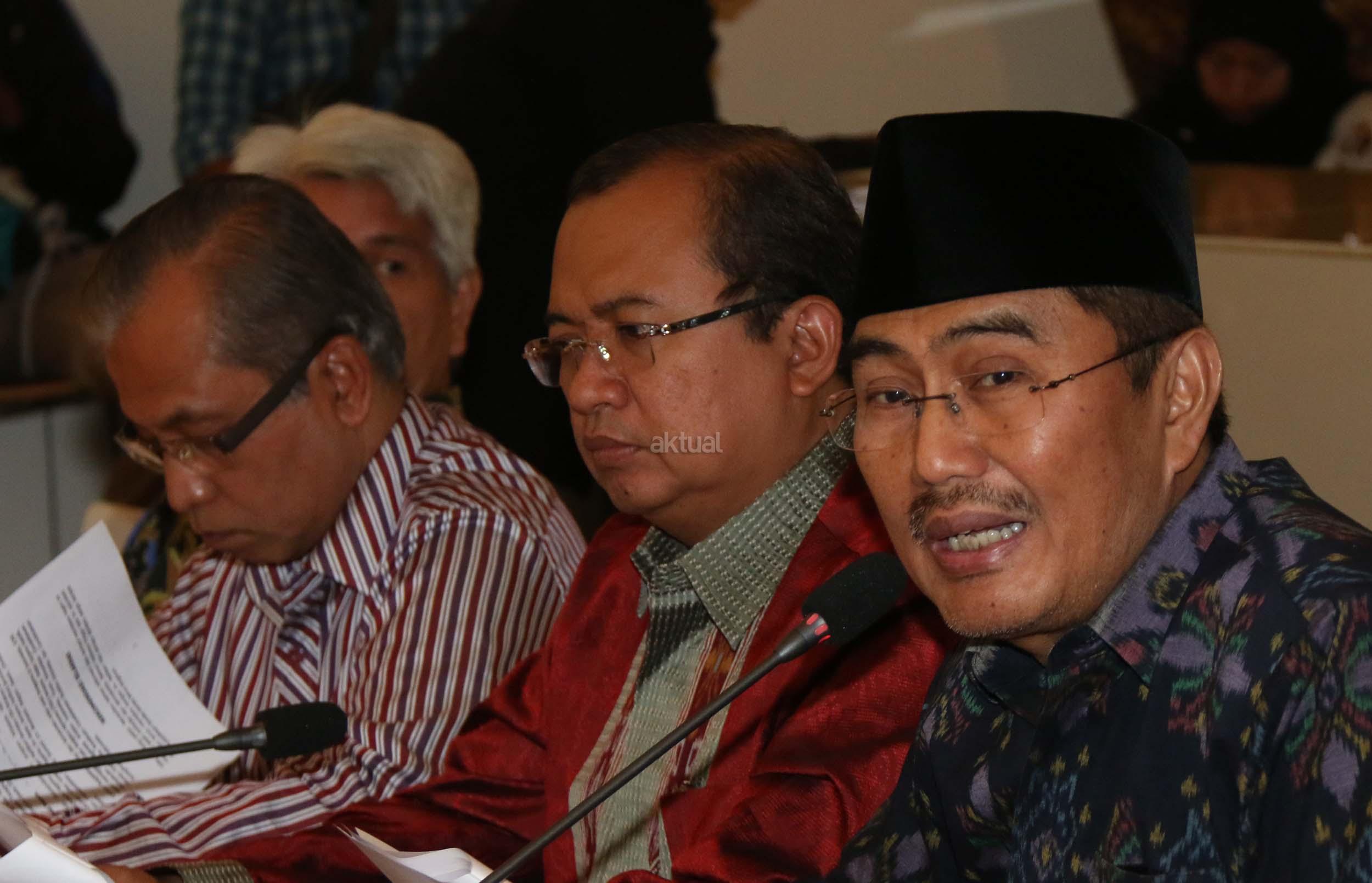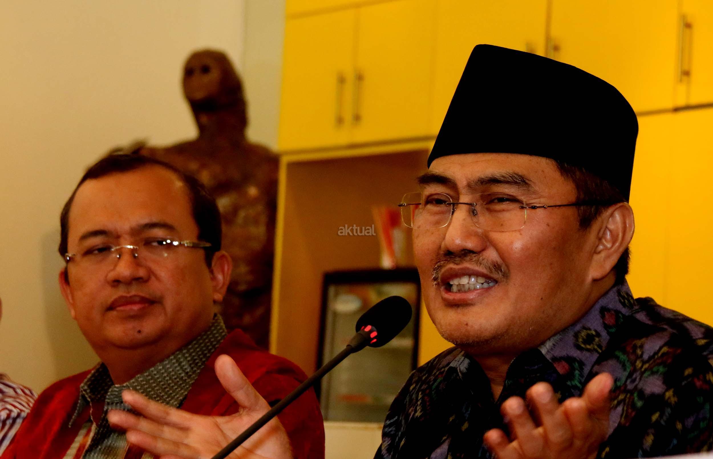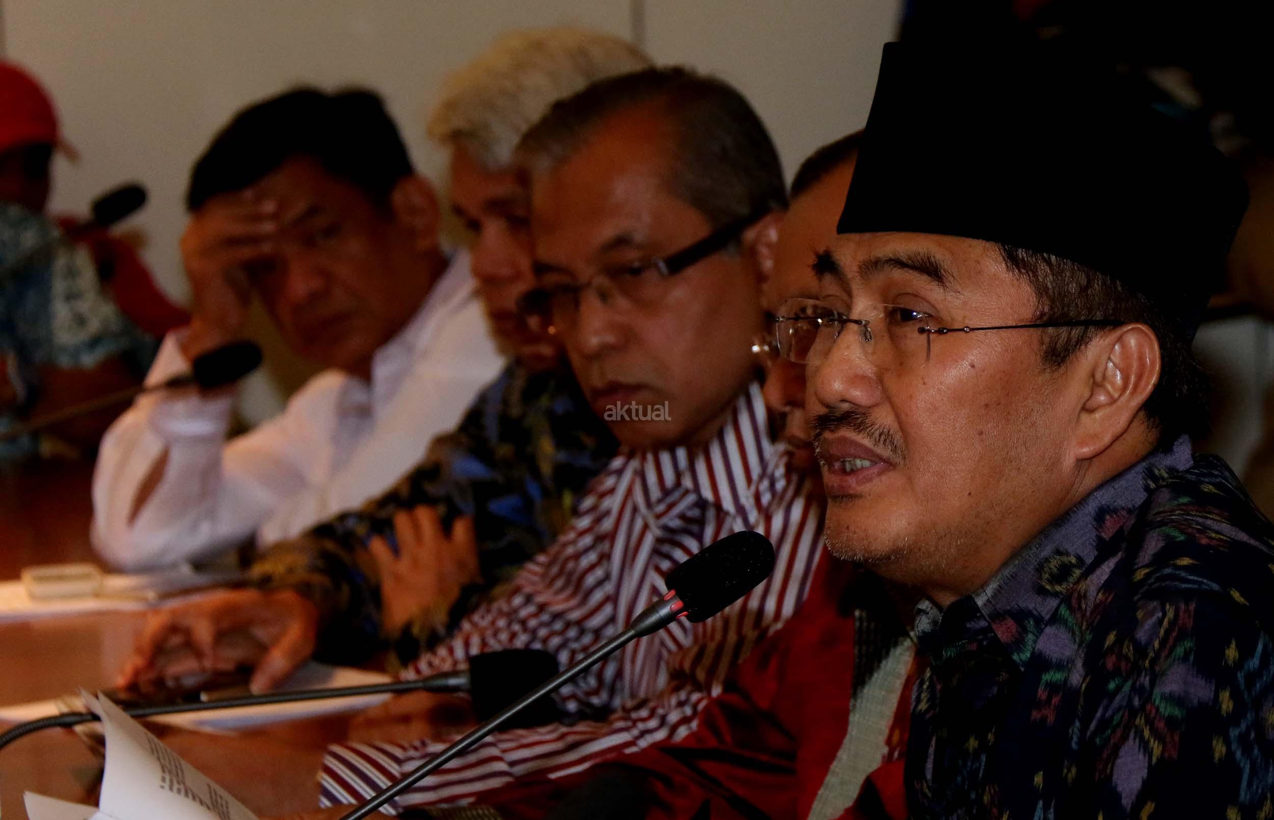 Ketua Umum Ikatan Cendekiawan Muslim se-Indonesia (ICMI) Jimly Asshiddiqie (kanan) saat memberikan keterangan persnya terkait reflesi ICMI yang terjadi di Indonesia pada tahun 2016 di kantor ICMI, Jakarta, Selasa (3/1/2017). Dalam jumpa persnya ICMI menyikapi beberapa hal yang terjadi di Indonesia selama tahun 2016 dan dalam rangka menyongsong program ICMI di tahun 2017. AKTUAL/Munzir