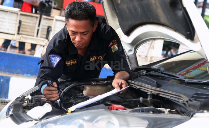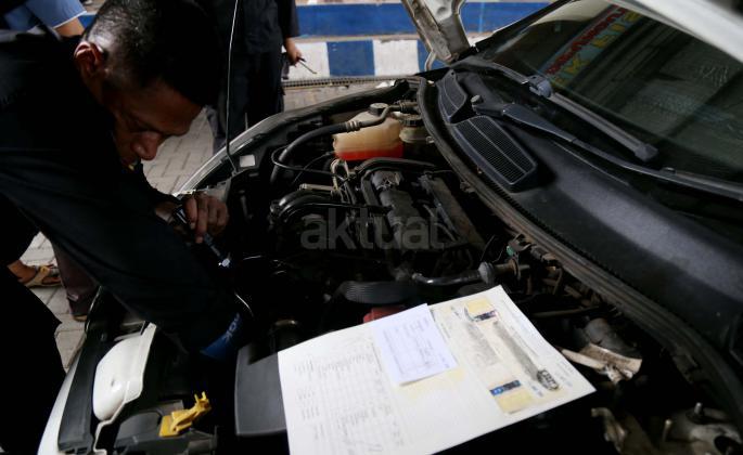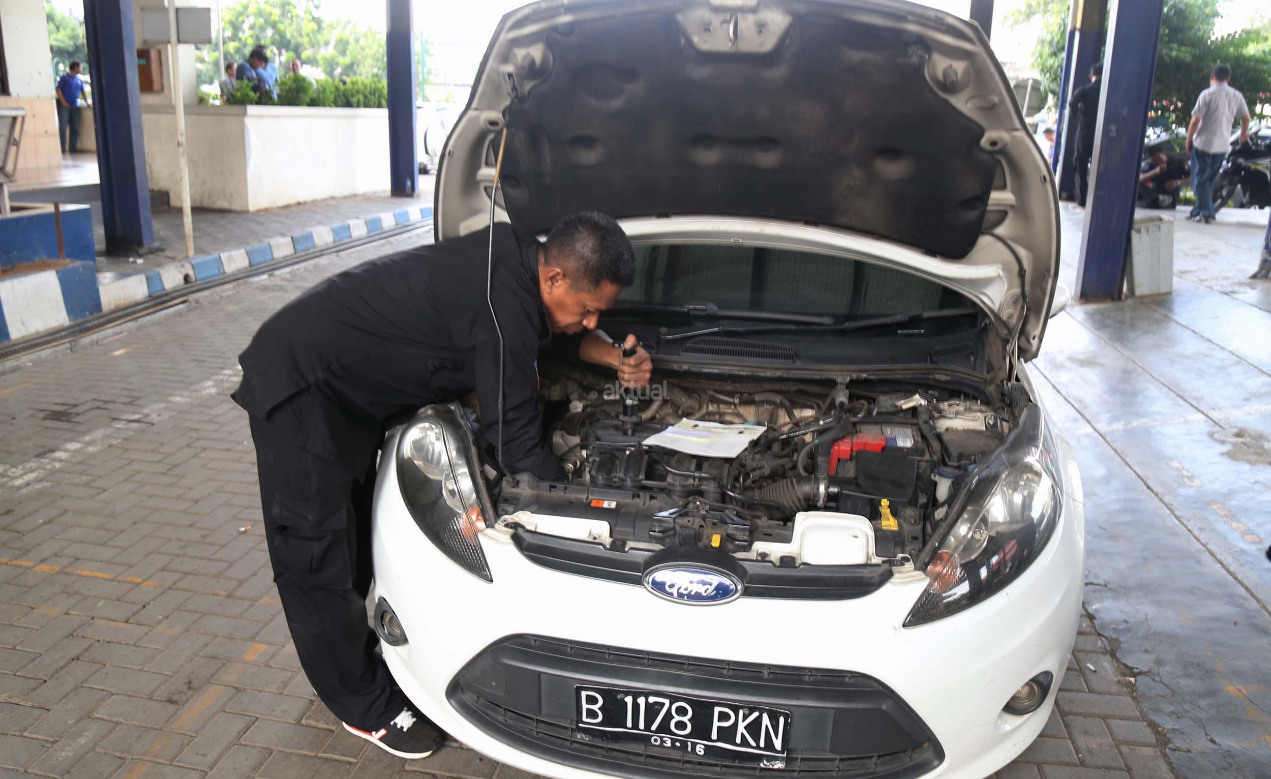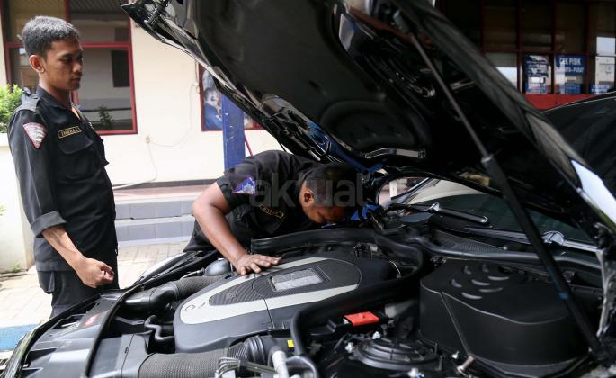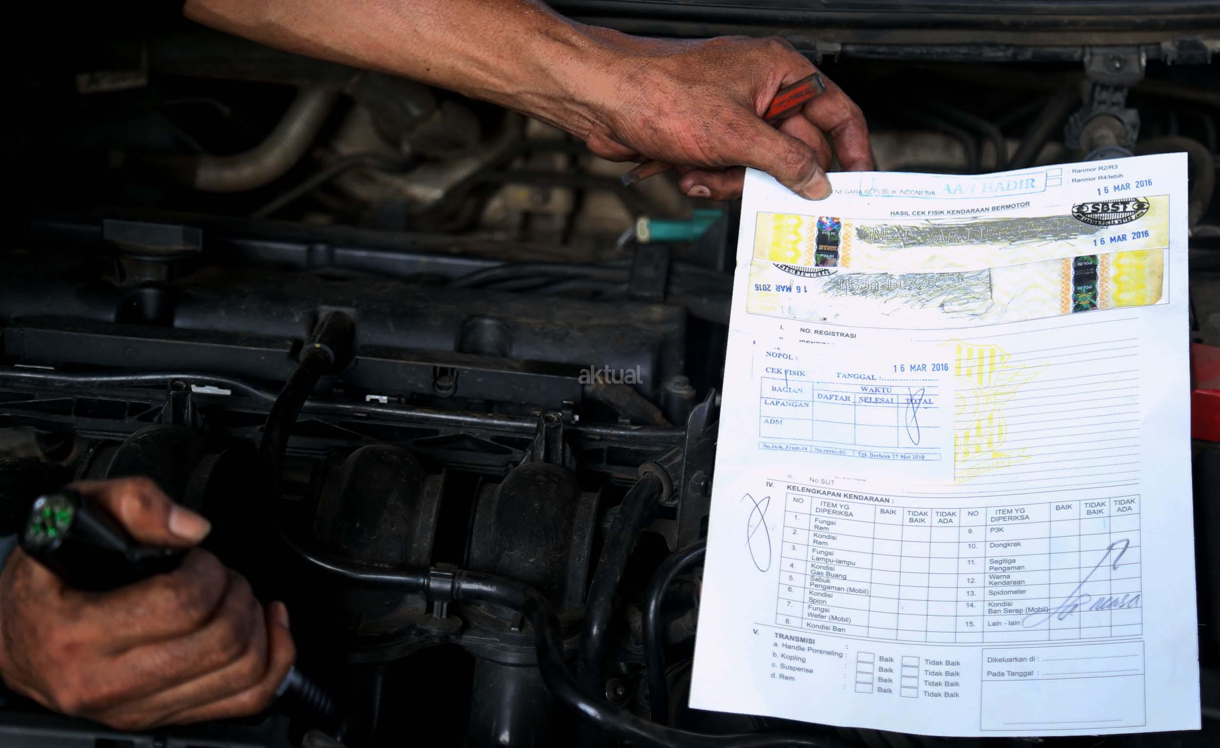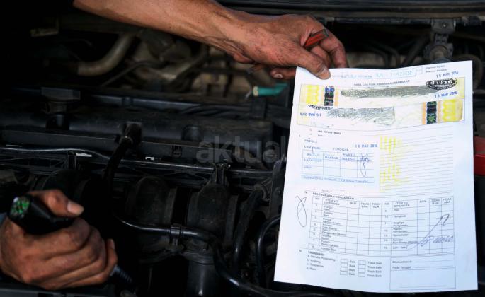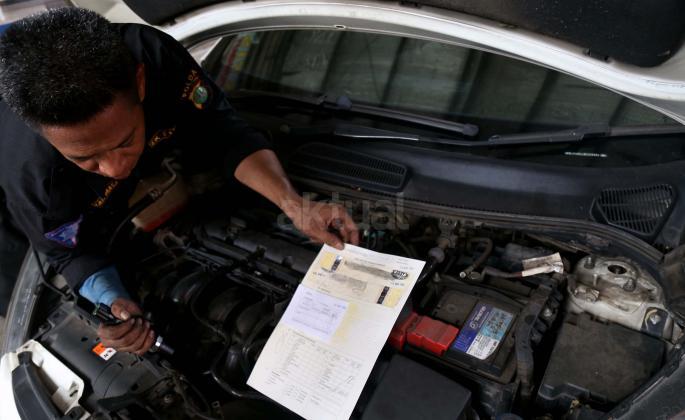 Petugas melakukan pengecekan fisik kendaraan bermotor di Samsat Jakarta Pusat, Jalan Gunung Sahari, Pademangan, Jakarta Utara, Rabu (16/3/2016). Pengecekan fisik nomor rangka dan mesin kendaraan dilakukan ketika pemilik kendaraan bermotor akan memperpanjang Surat Tanda Kendaraan Bermotor (STNK), cek fisik kendaraan bermotor merupakan langkah pembuktian kecocokan antara fisik kendaraan dengan surat-surat kendaraan.