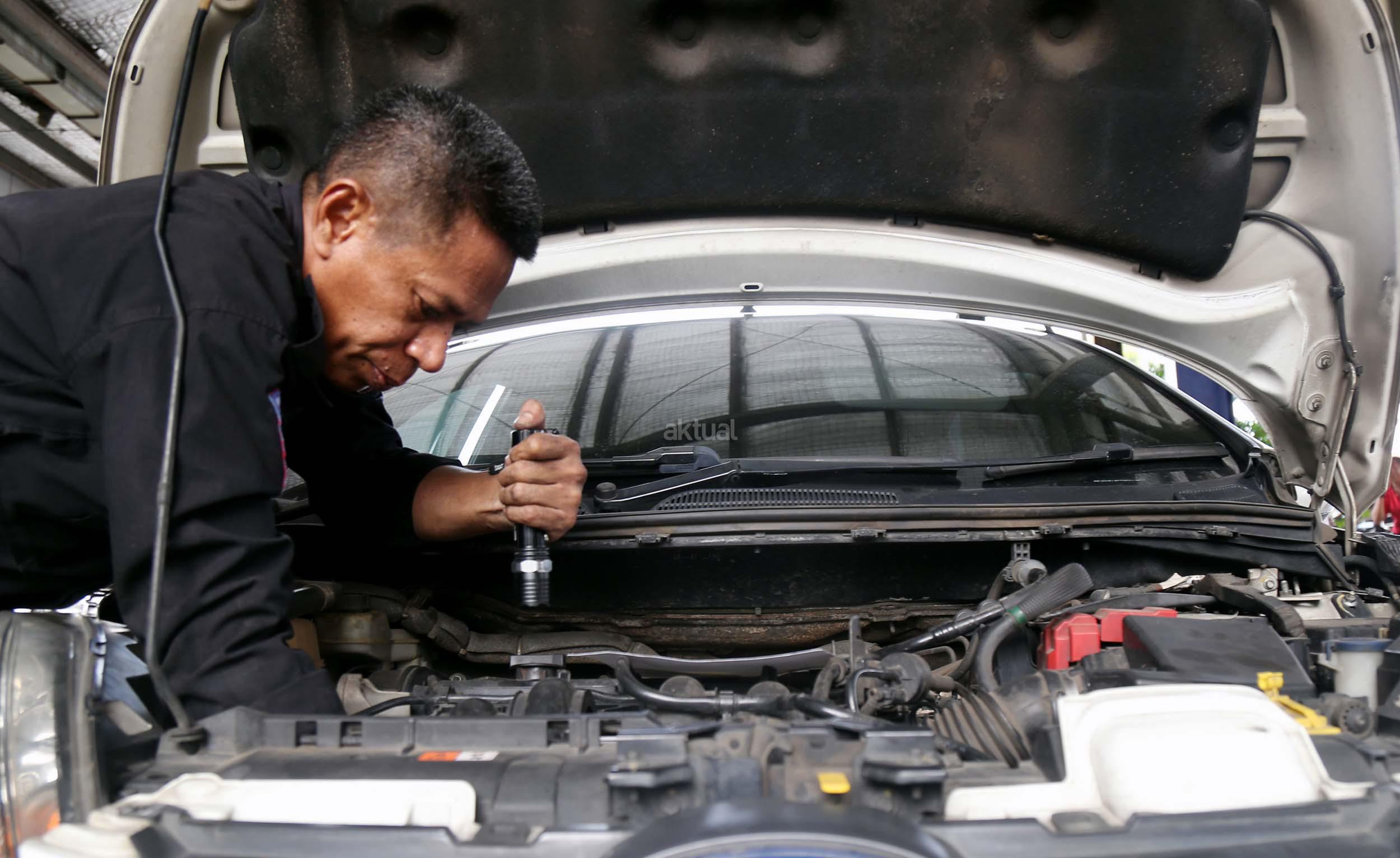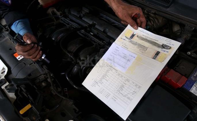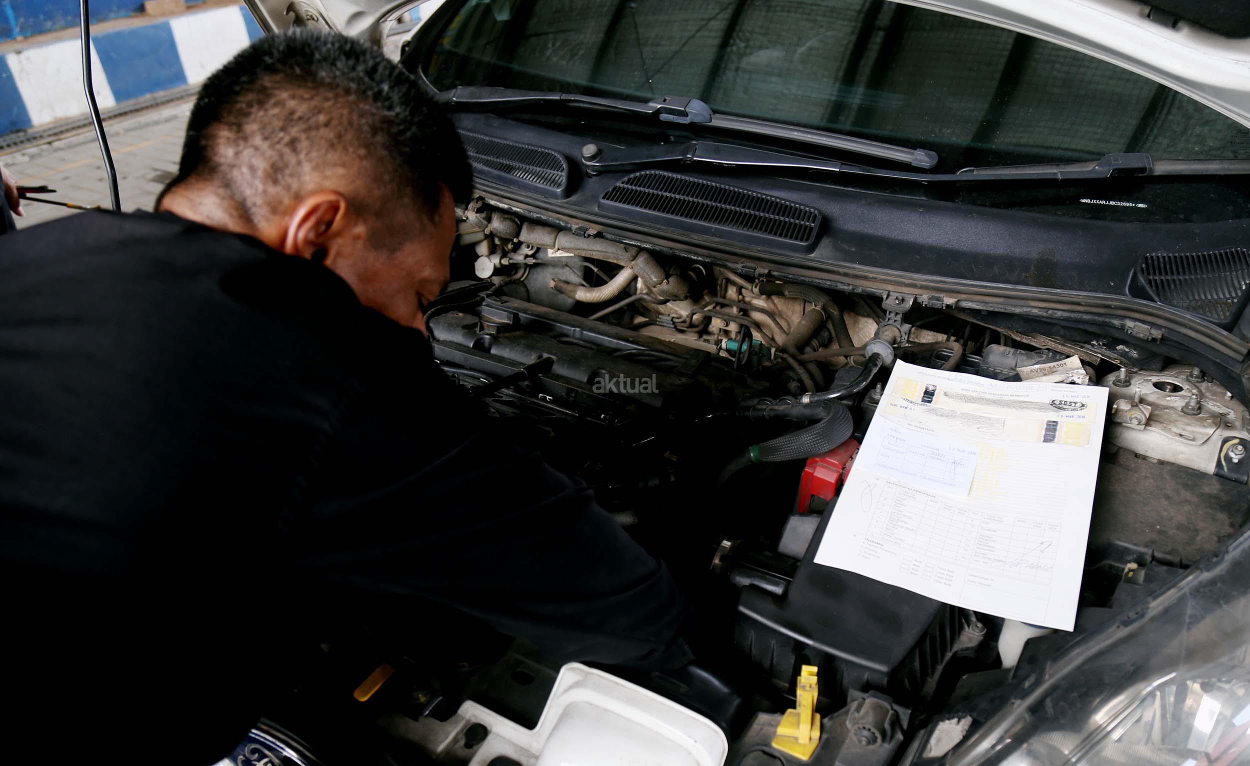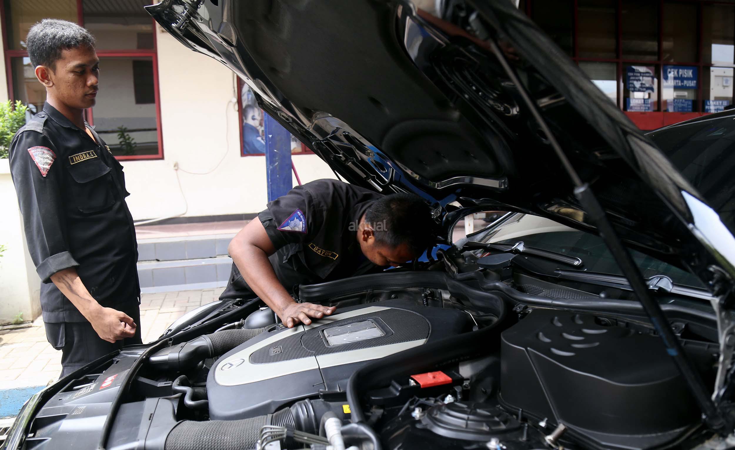 Petugas melakukan pengecekan fisik kendaraan bermotor di Samsat Jakarta Pusat, Jalan Gunung Sahari, Pademangan, Jakarta Utara, Rabu (16/3/2016). Pengecekan fisik nomor rangka dan mesin kendaraan dilakukan ketika pemilik kendaraan bermotor akan memperpanjang Surat Tanda Kendaraan Bermotor (STNK), cek fisik kendaraan bermotor merupakan langkah pembuktian kecocokan antara fisik kendaraan dengan surat-surat kendaraan.