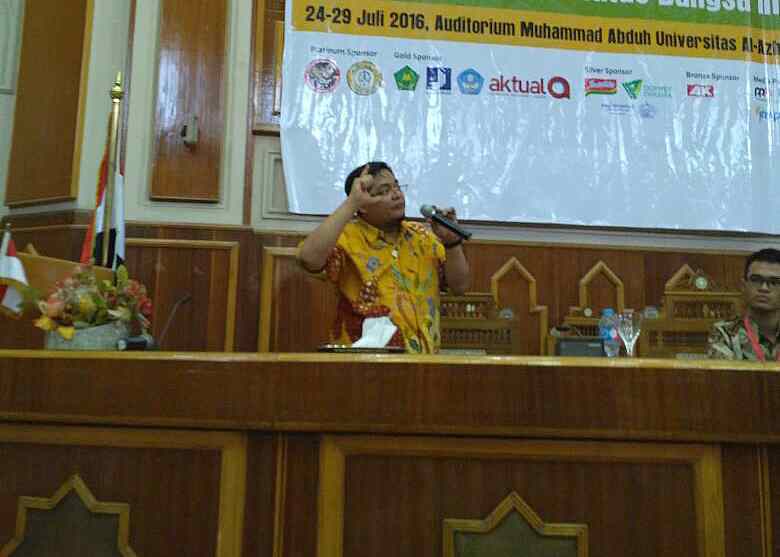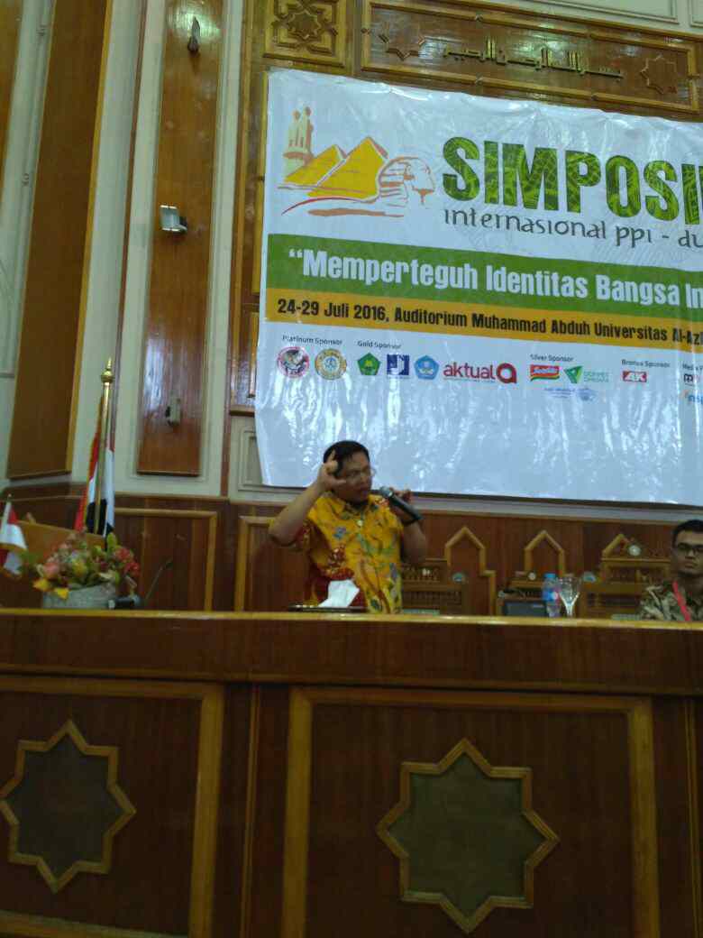 CEO Aktual Media, M Danial Nafis saat menjadi pembicara di “Simposium Internasional Perhimpunan Pelajar Indonesia (PPI) Sedunia” dengan tema Pendidikan Karakter Bangsa Lewat Peran Media di Auditorium Muhammad Abduh Universitas Al Azhar Kairo Mesir, Minggu (24/7). Simposium yang berlangsung 24-29 Juli ini akan mengeluarkan beberapa rekomendasi penting kepada pemerintah dan juga rumusan langkah strategis yang perlu diupayakan oleh segenap elemen bangsa, termasuk di dalamnya para pelajar Indonesia yang tersebar di seluruh dunia. Simposium ini juga menampilkan pembicara diantaranya Yudi Latif, Mahfud MD dan J Kristiadi. AKTUAL/IST